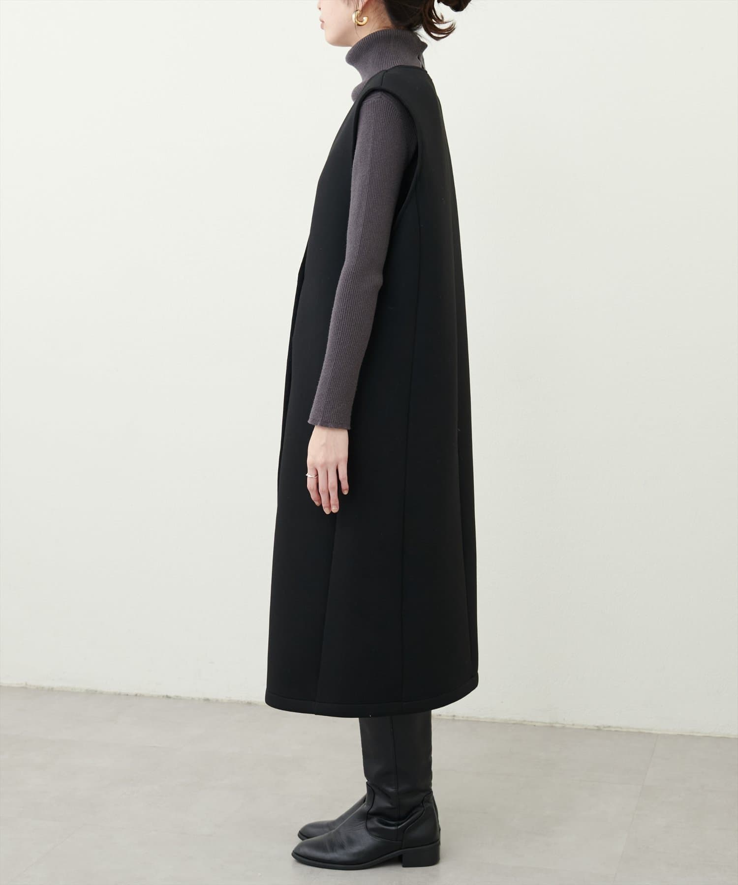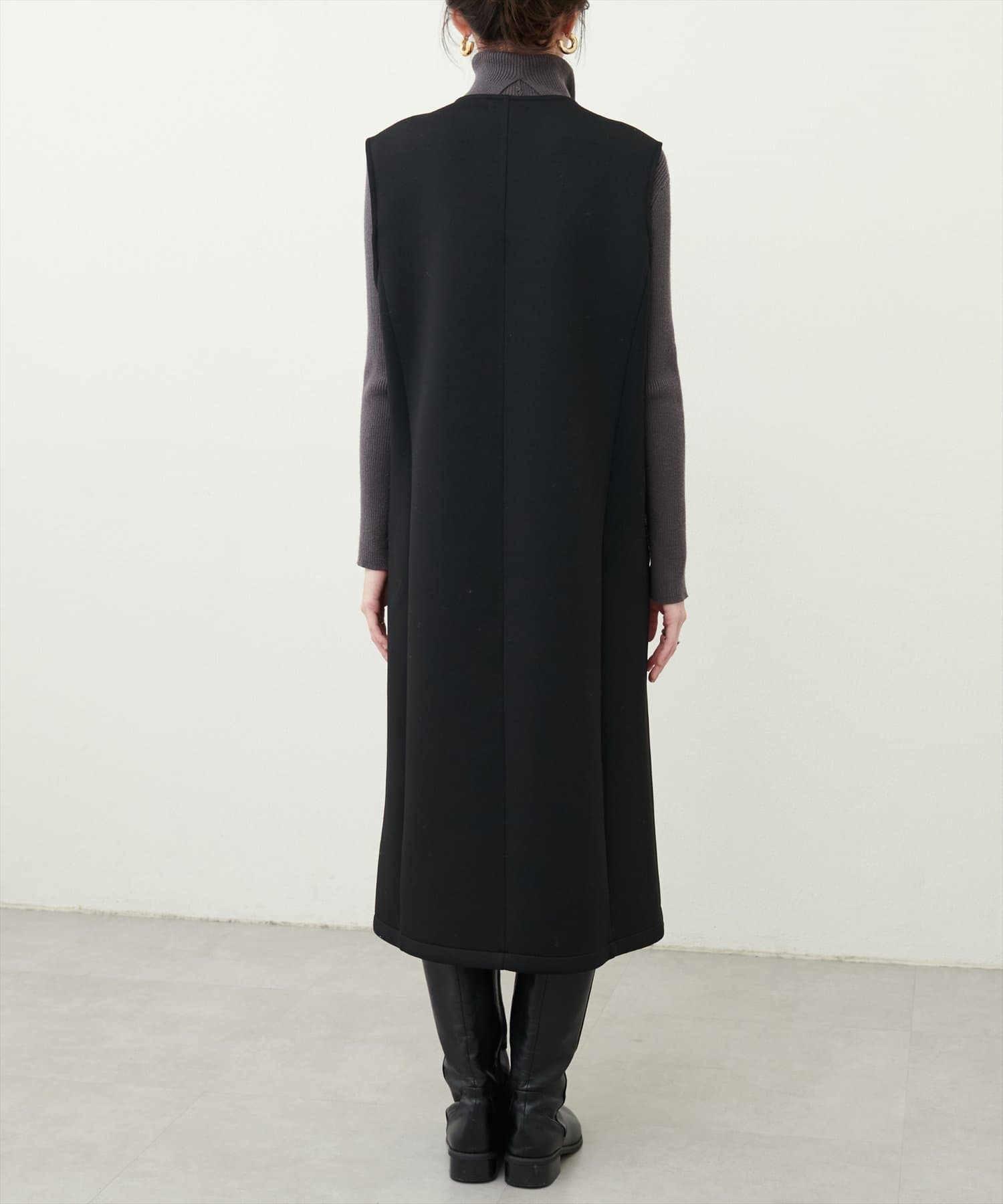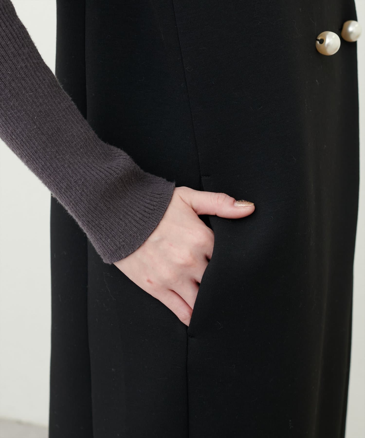 ノーカラーで、すっきり見えし、しっかりした素材感で盾ラインのきれいなシルエット。
