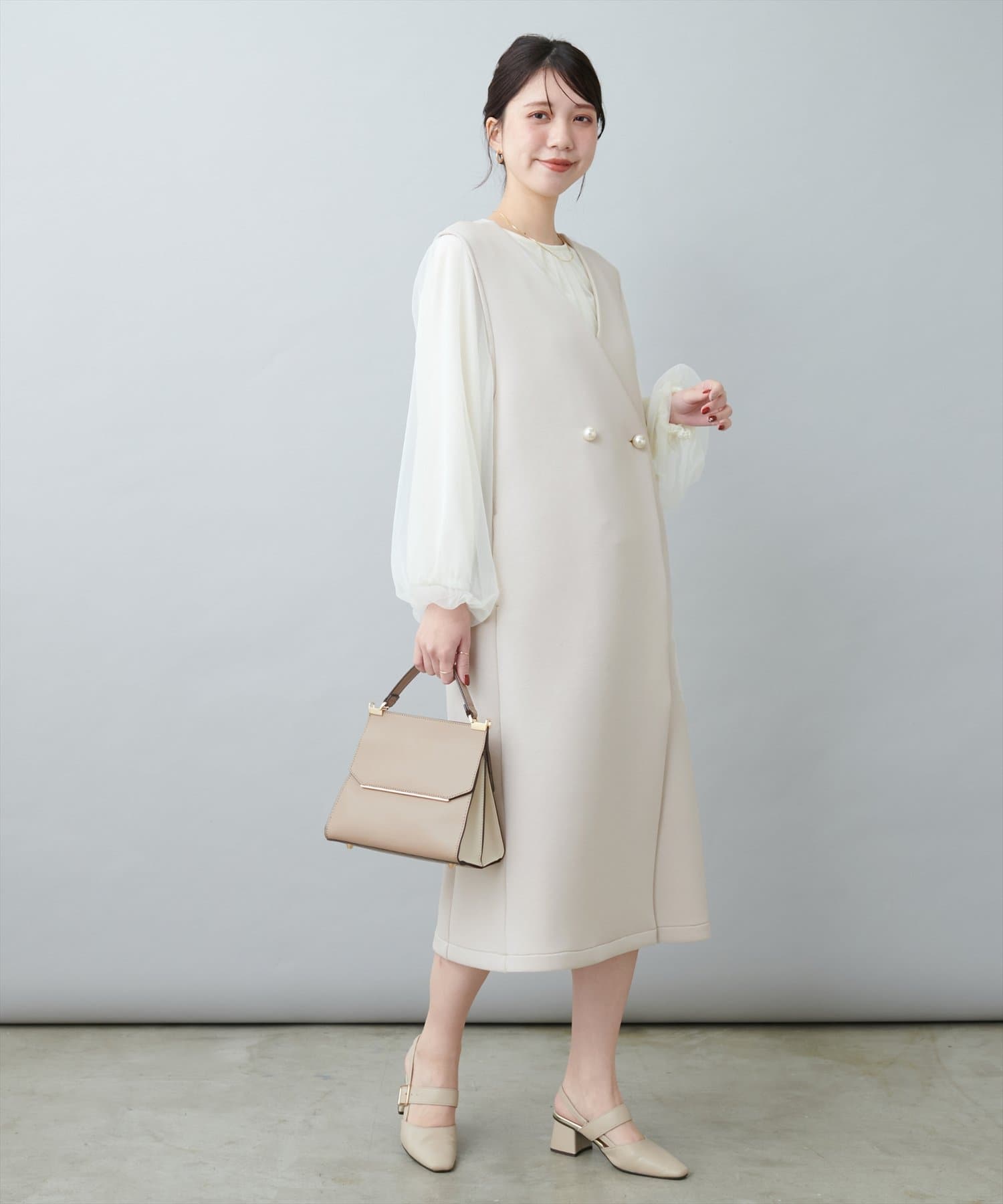 ブラウスやきれいめワンピースと合わせるとセレモニー、オケージョンでも対応可能です。
