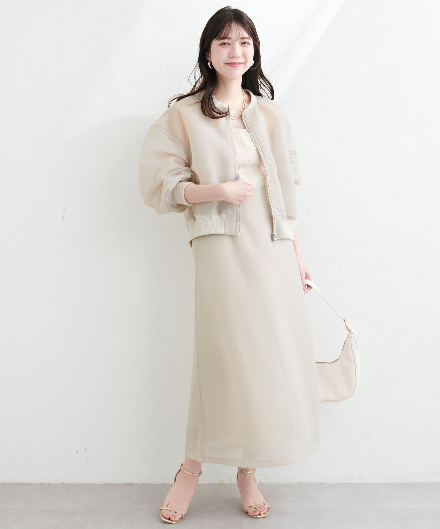 ノースリーブワンピースにさっと羽織るだけで決まり、
