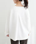 ラグランスリーブで肩幅が目立ちにくく、ボディラインを拾わずすっきりとお召し頂ける1着です。