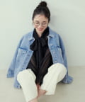 タートルニットやレース素材のトップス、ワンピースと合わせてほんのりカジュアルMIXなコーデに仕上げるのもおすすめ◎