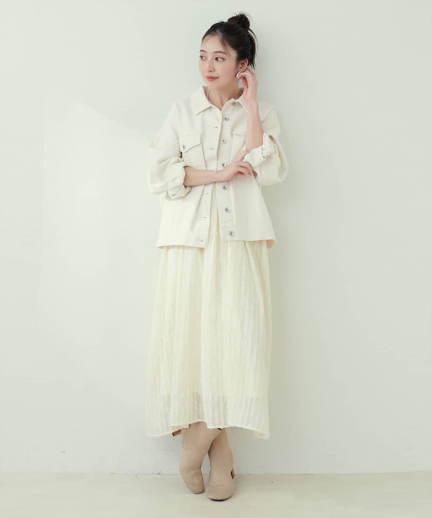 綺麗めアイテムにも合わせやすい1着に仕上げた、デニムジャケット。