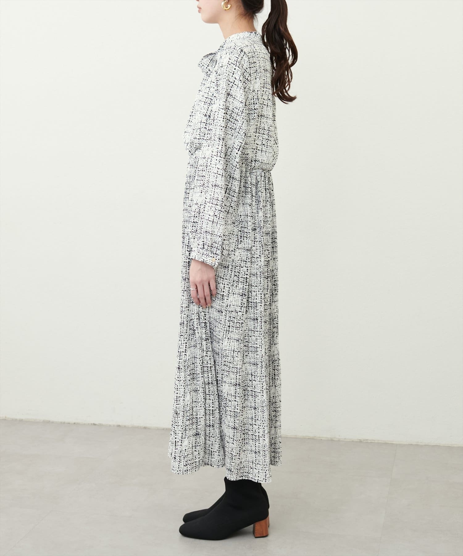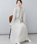 流れるようなプリーツ使いが、お召し頂くだけで女性らしさをぐっと引き立ててくれる1着。