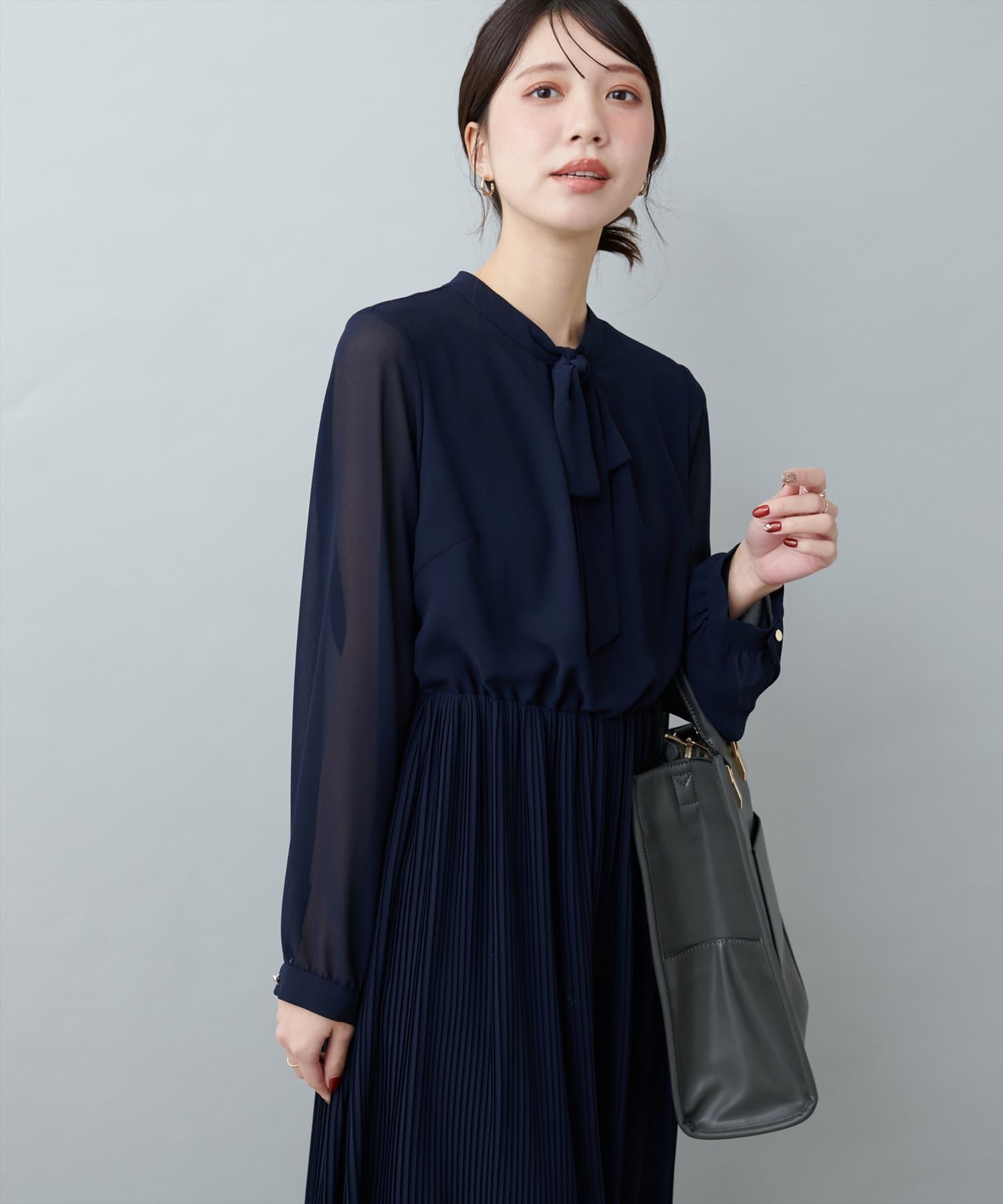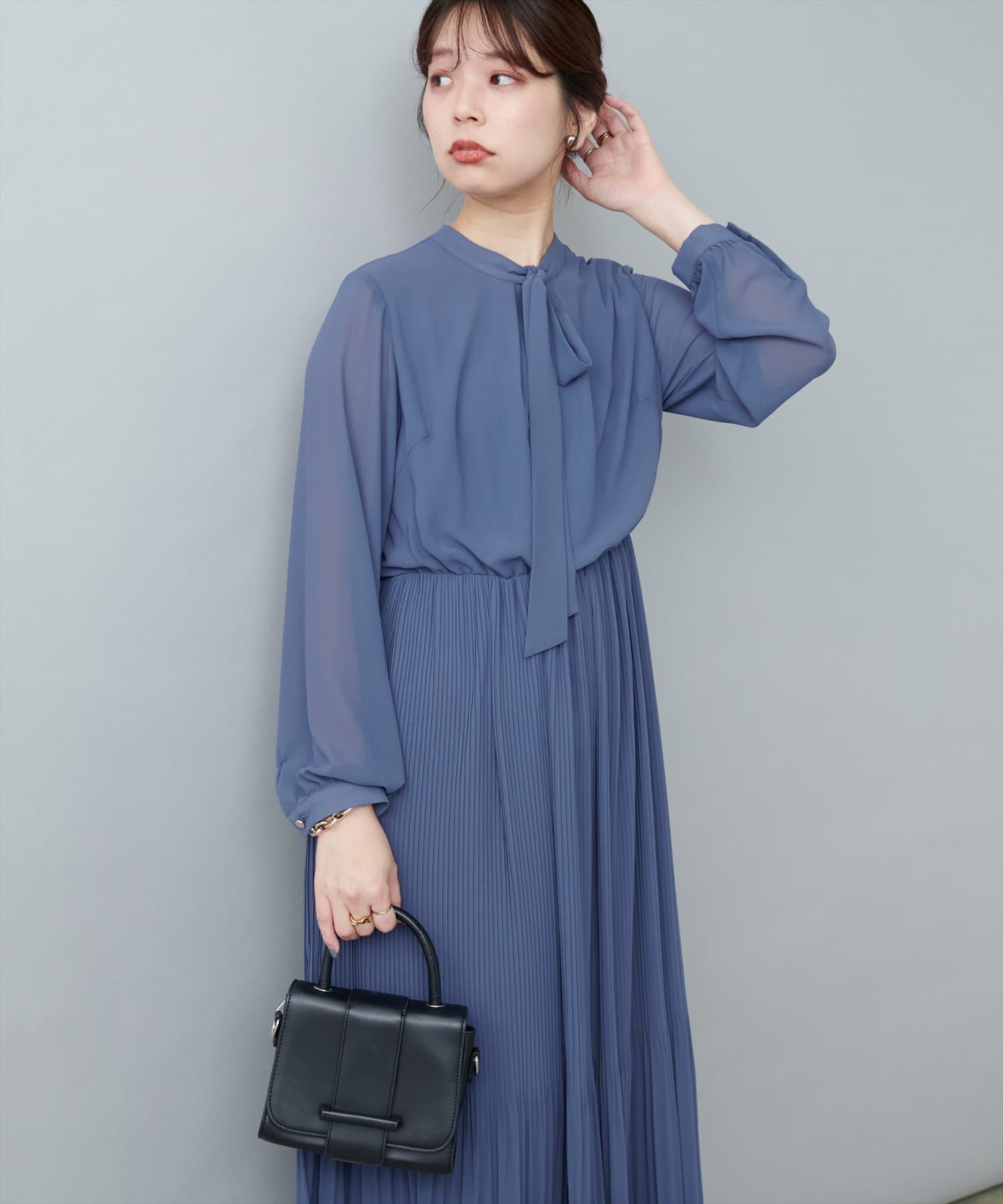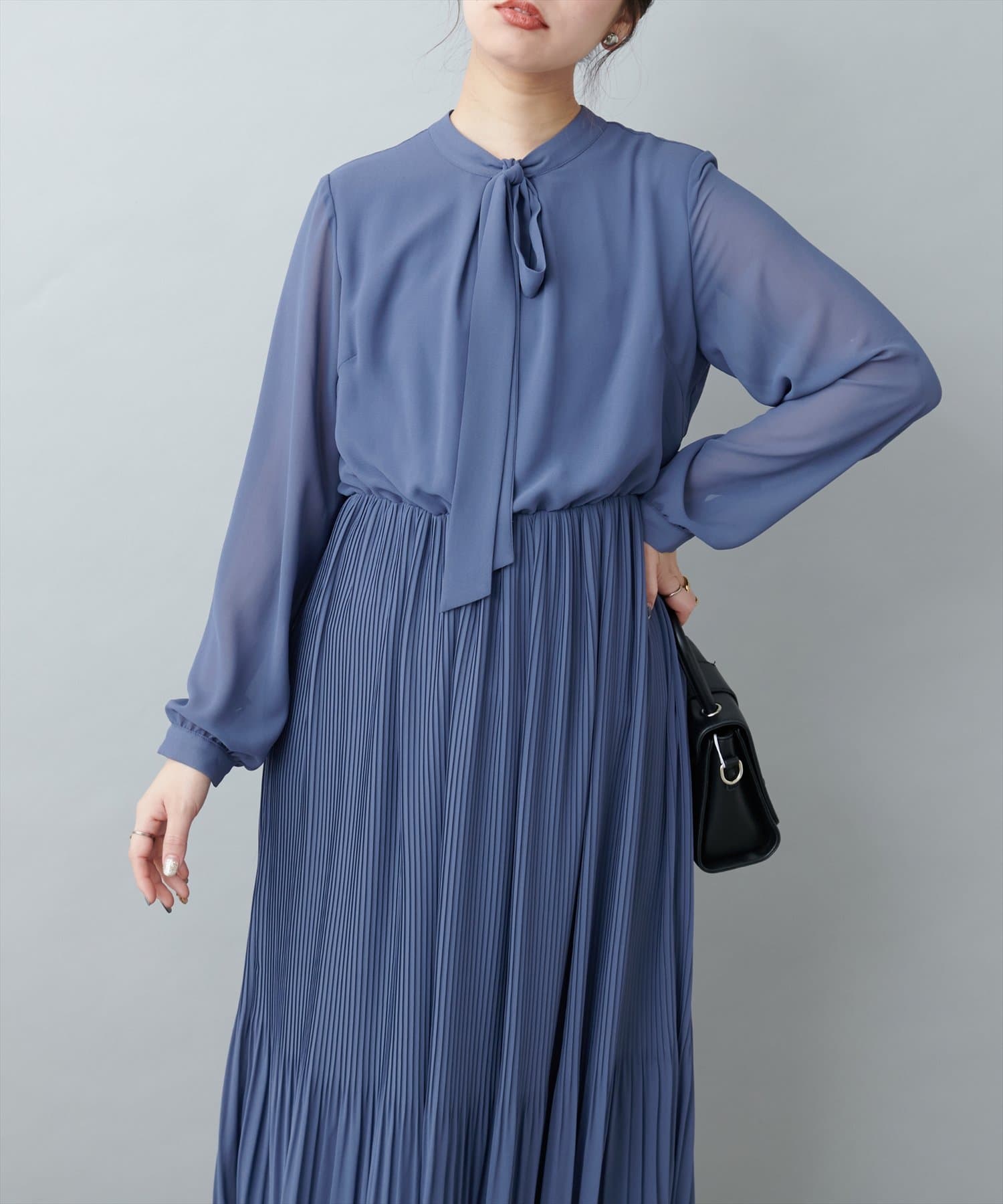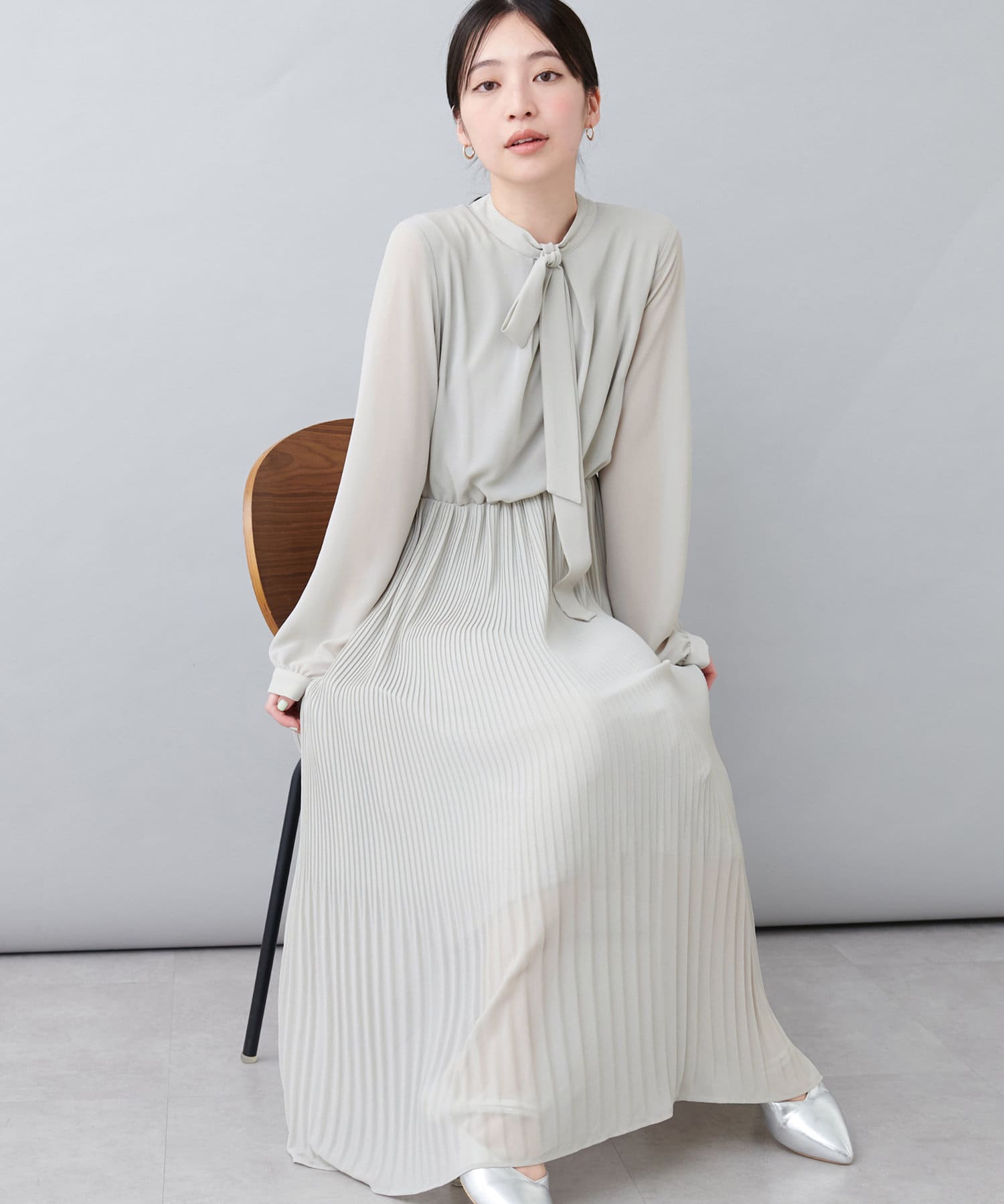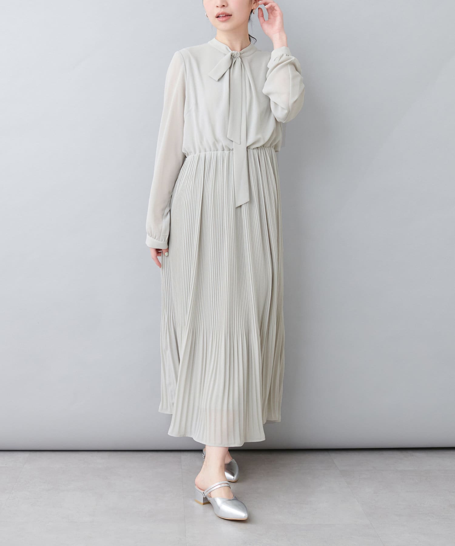 【WEB限定】オケージョン対応可 / ボータイリボンプリーツワンピース