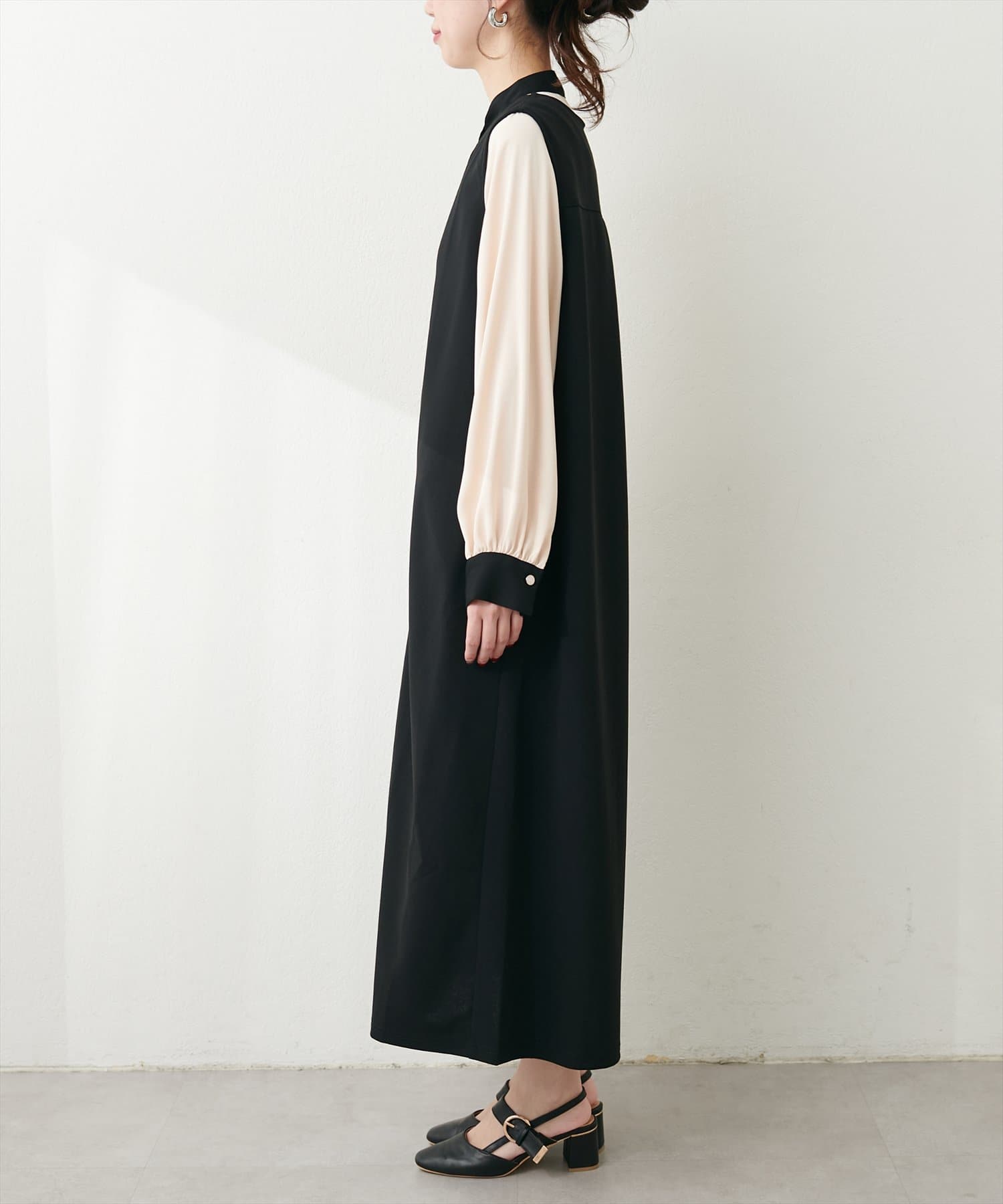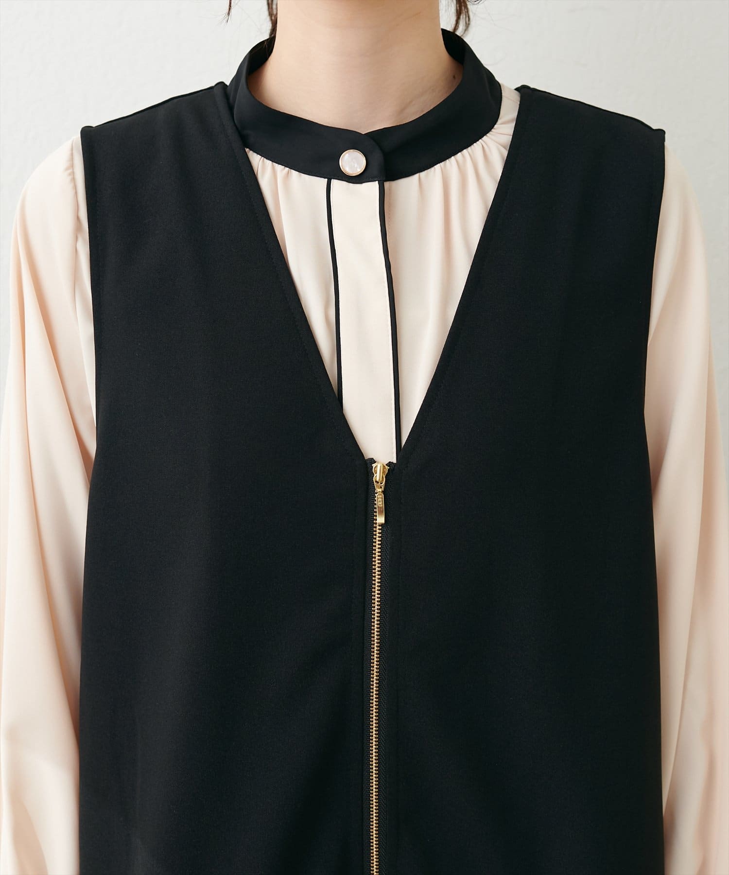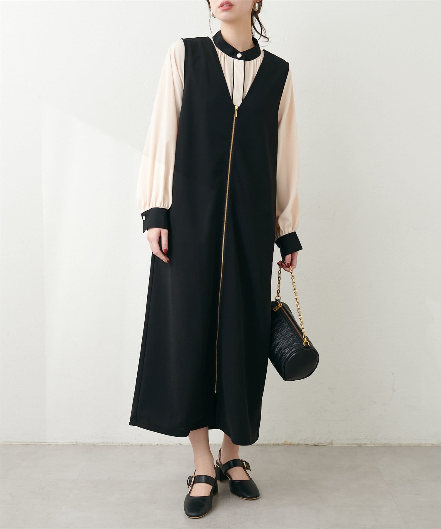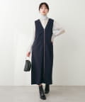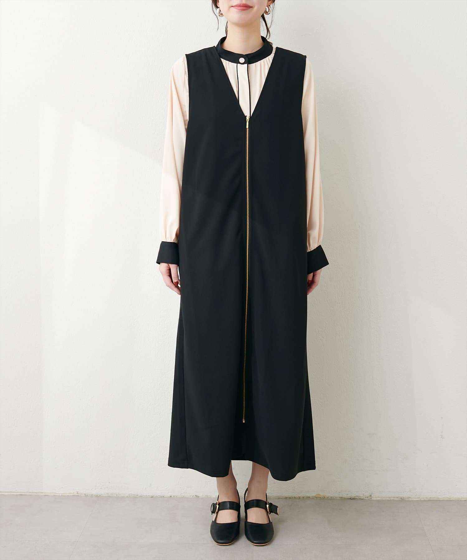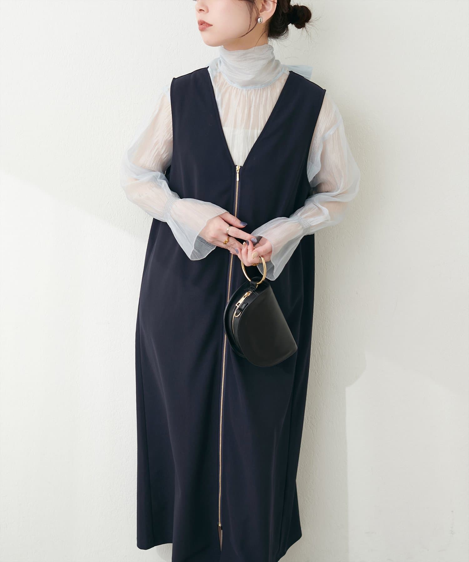 フロントのゴールドジップがコーディネートにアクセントをプラスしてくれるジャンスカ。