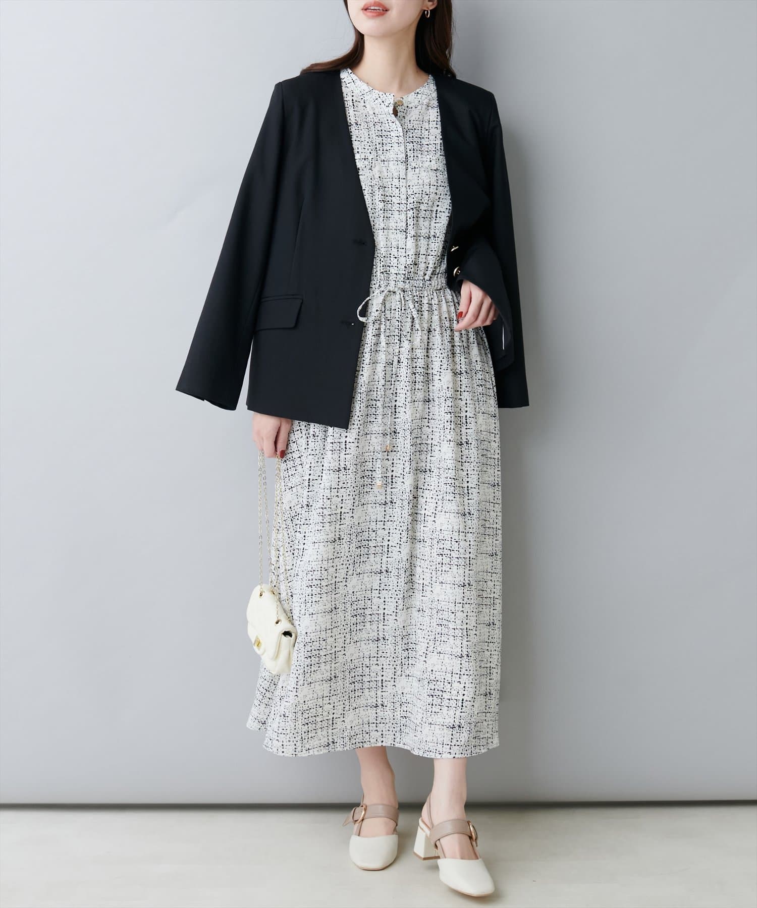 1枚でさまになるワンピースなので、そのまま着用いただくのがおすすめ。