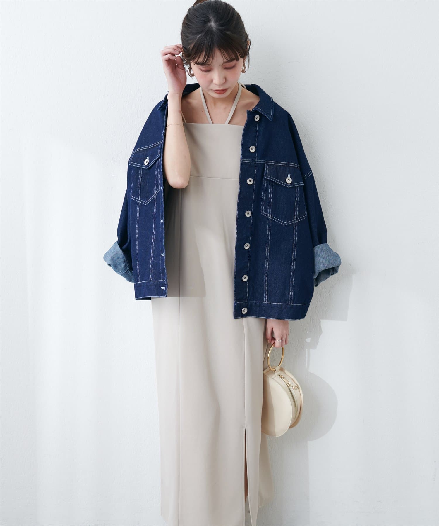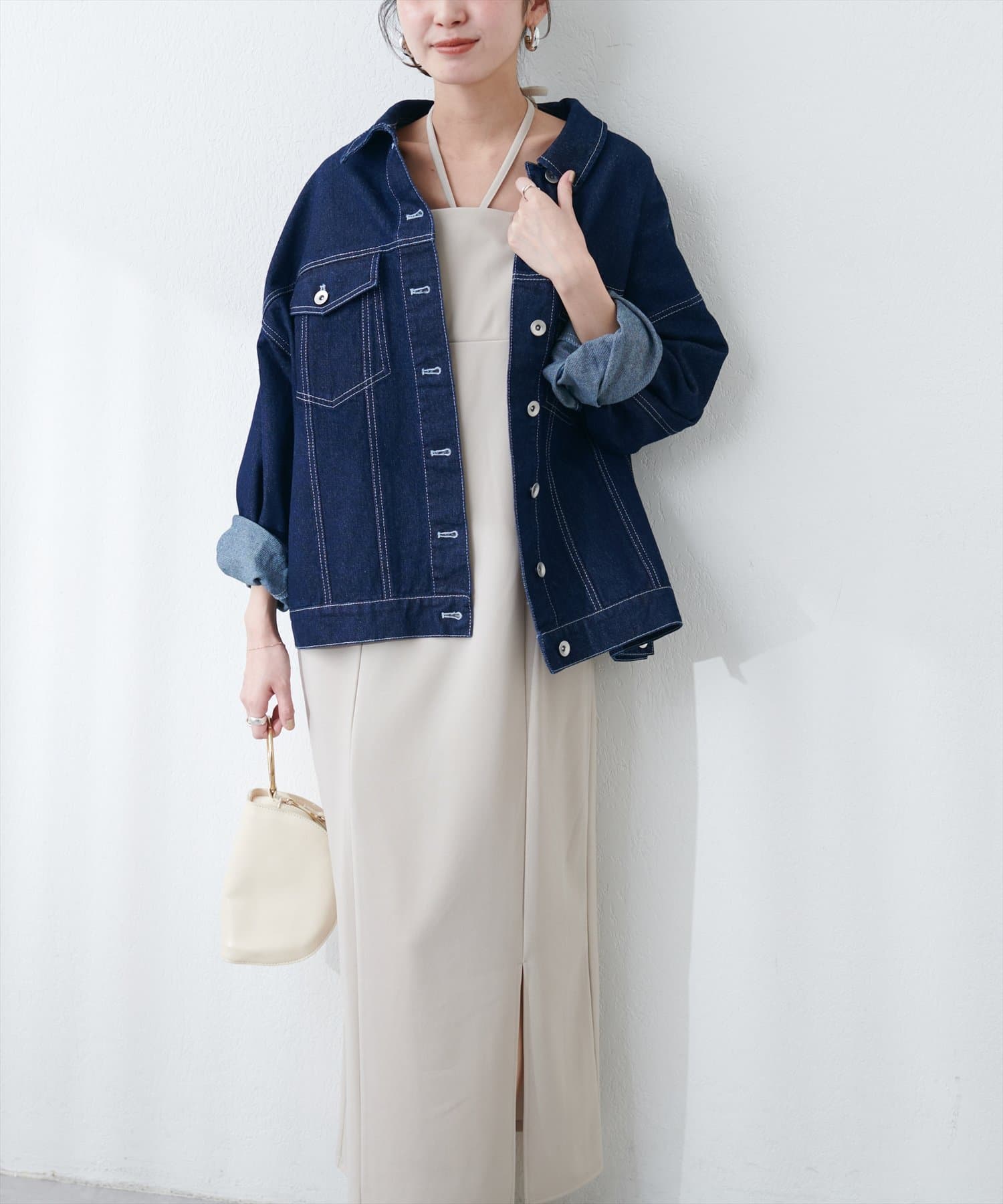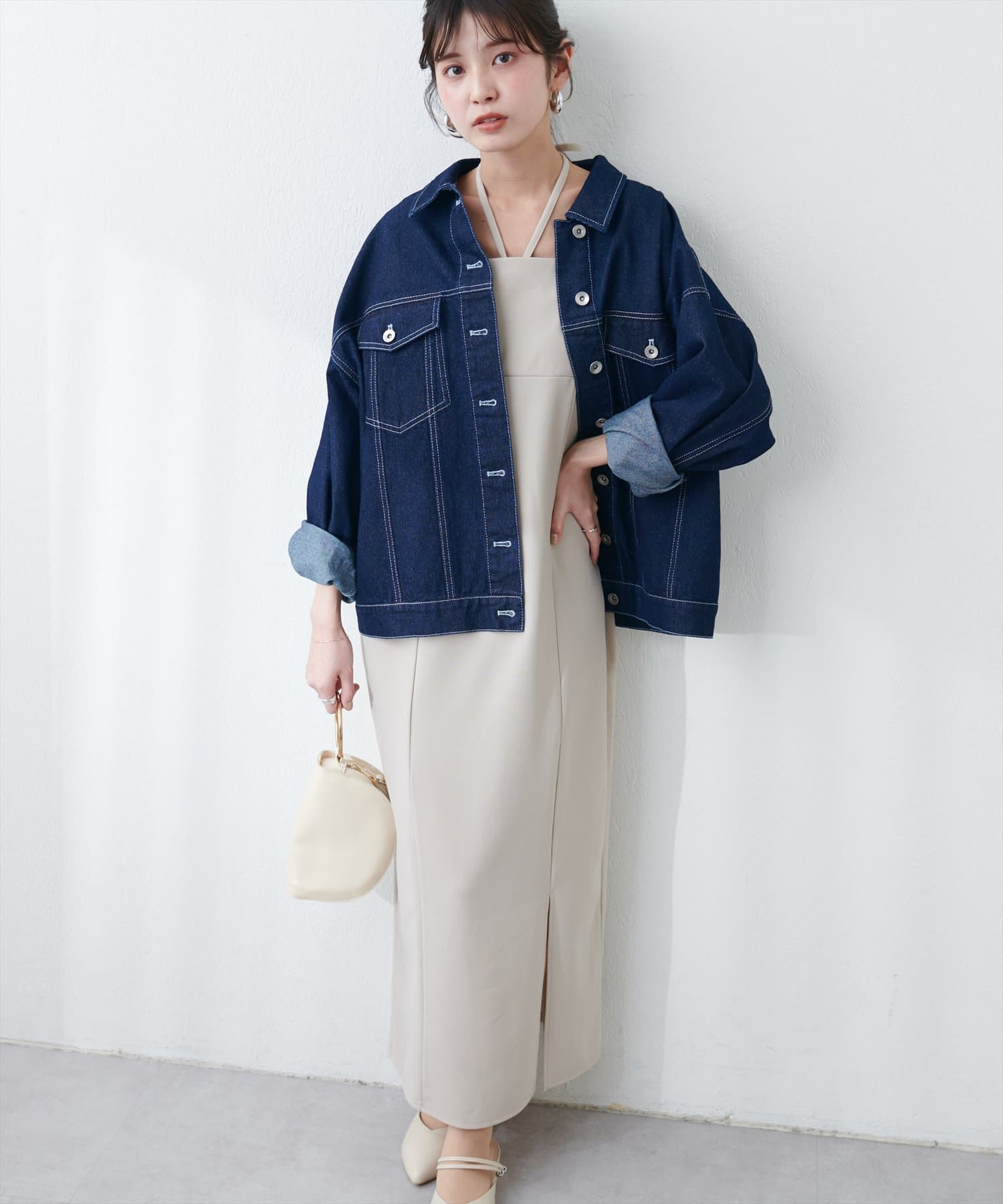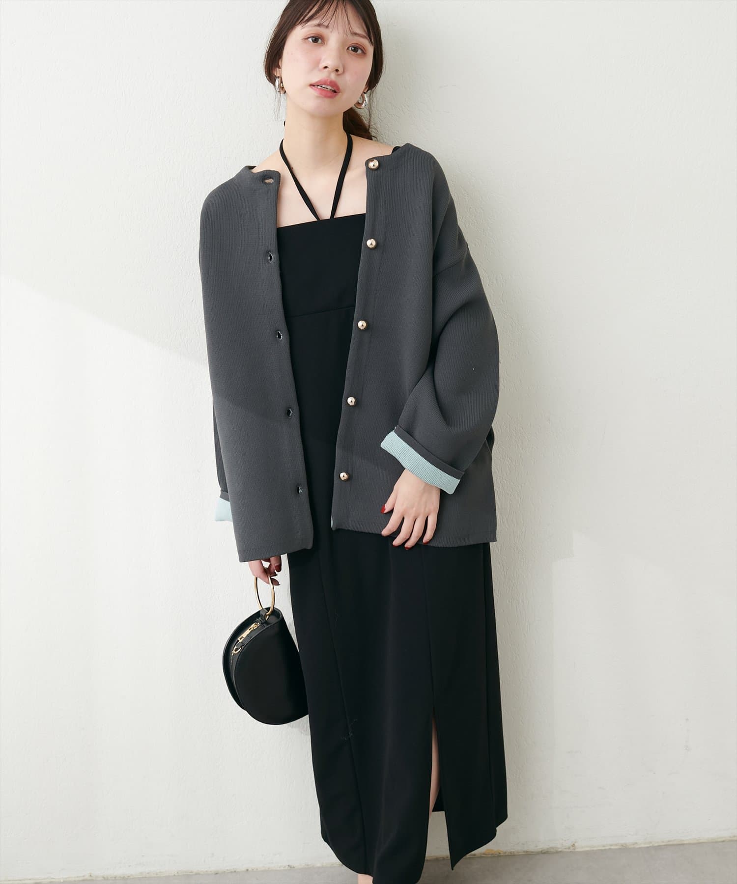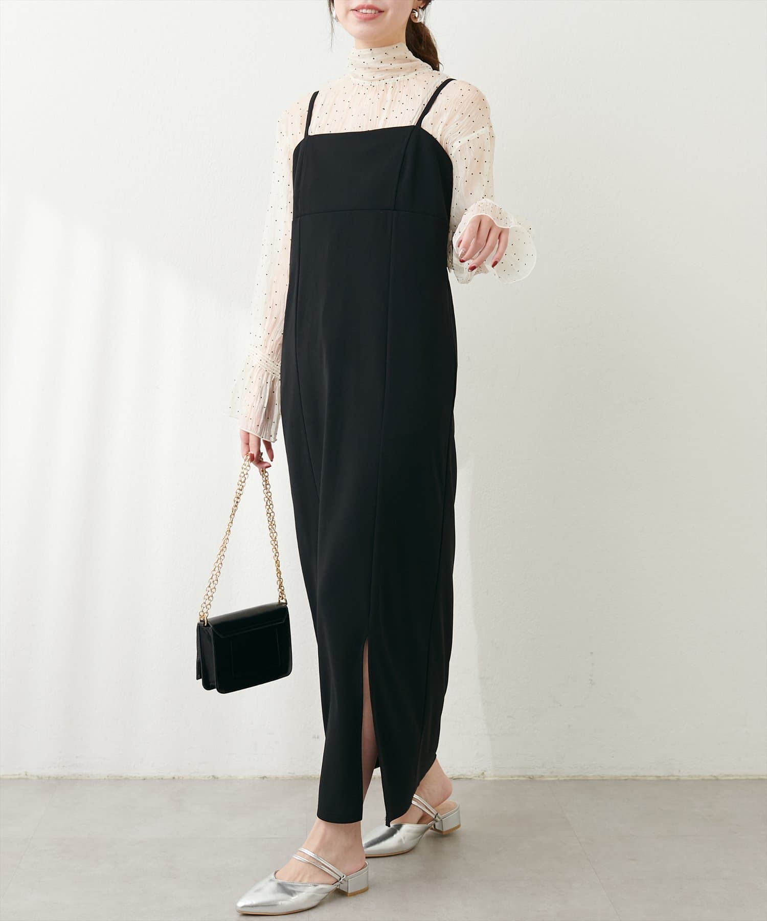 ニットなどをワンピの上に着て、レイヤードスタイルでもきれいに決まります。