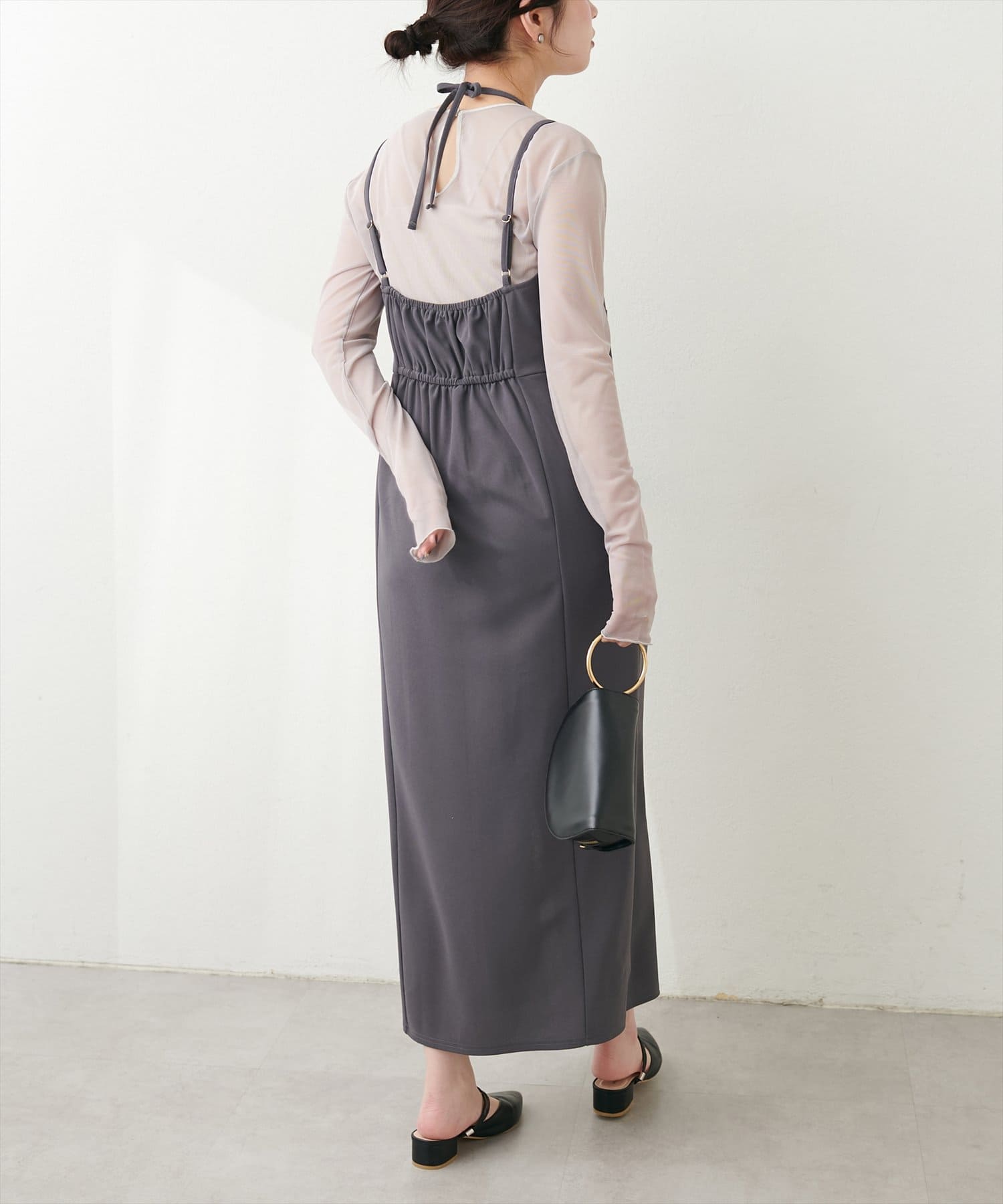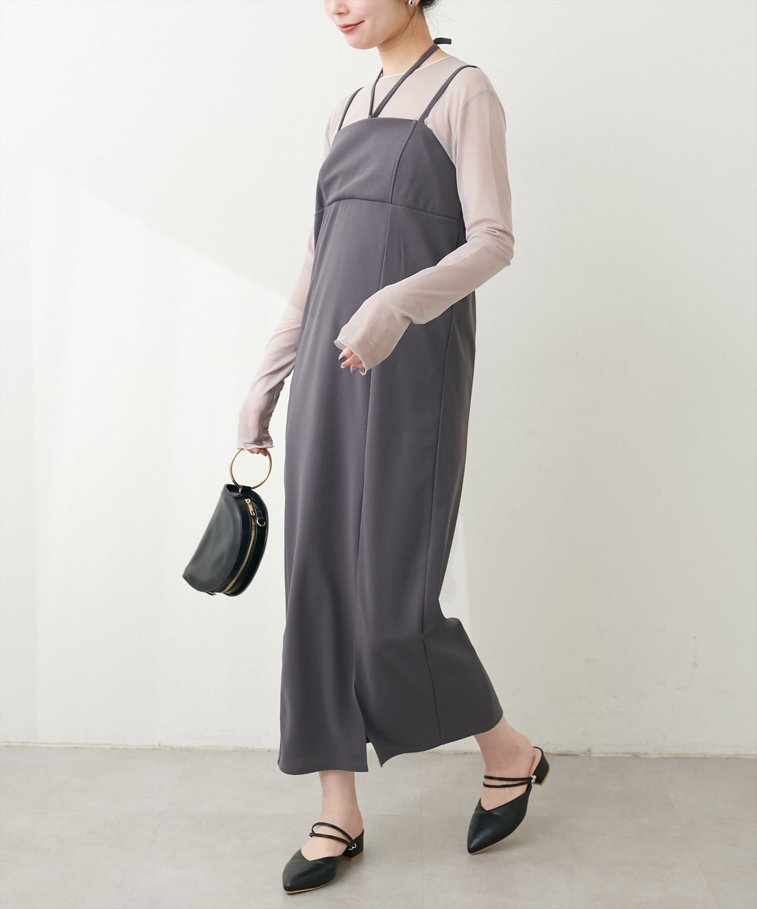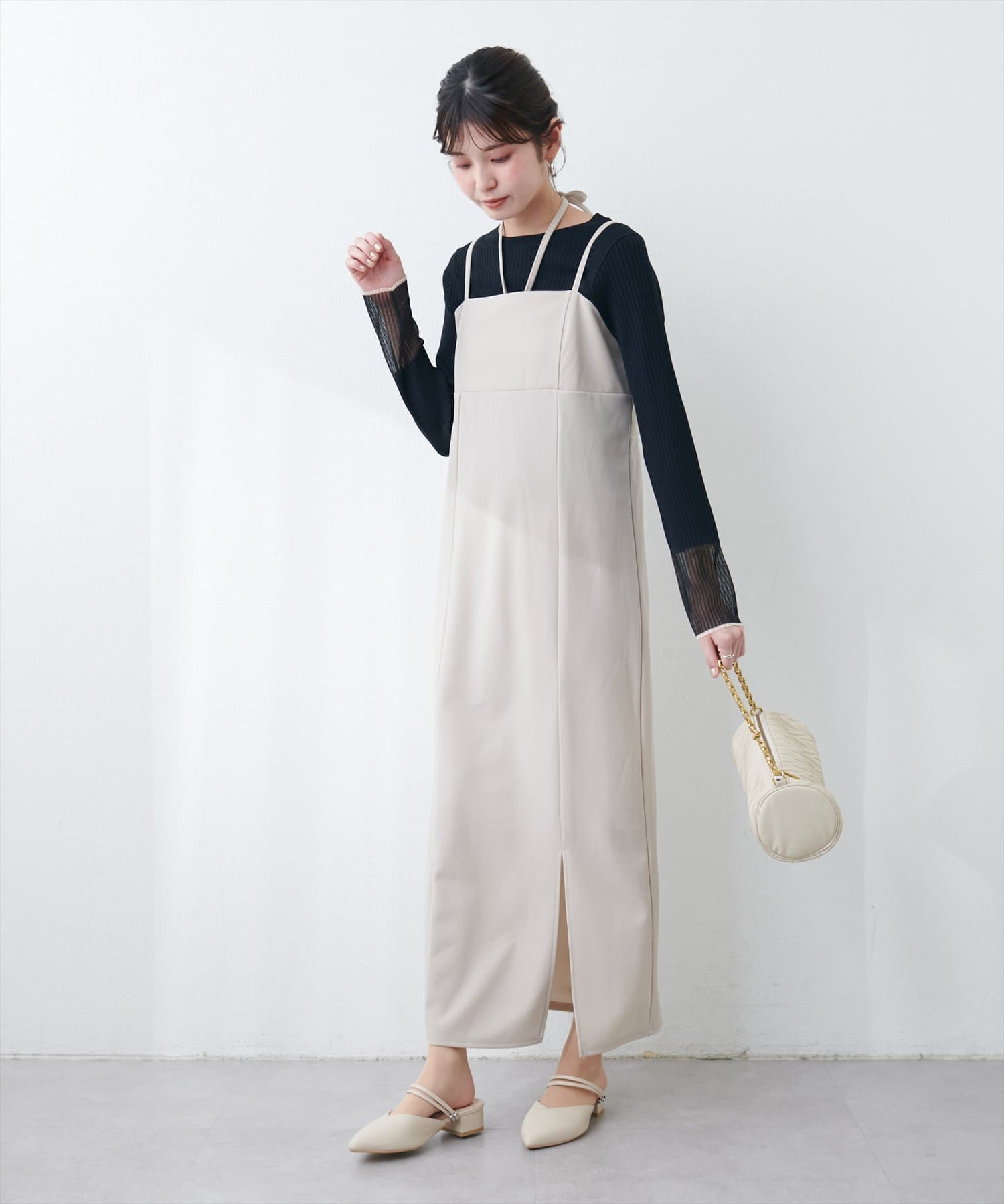 カットソーのような柔らかい素材感と風合いのキャミワンピース。