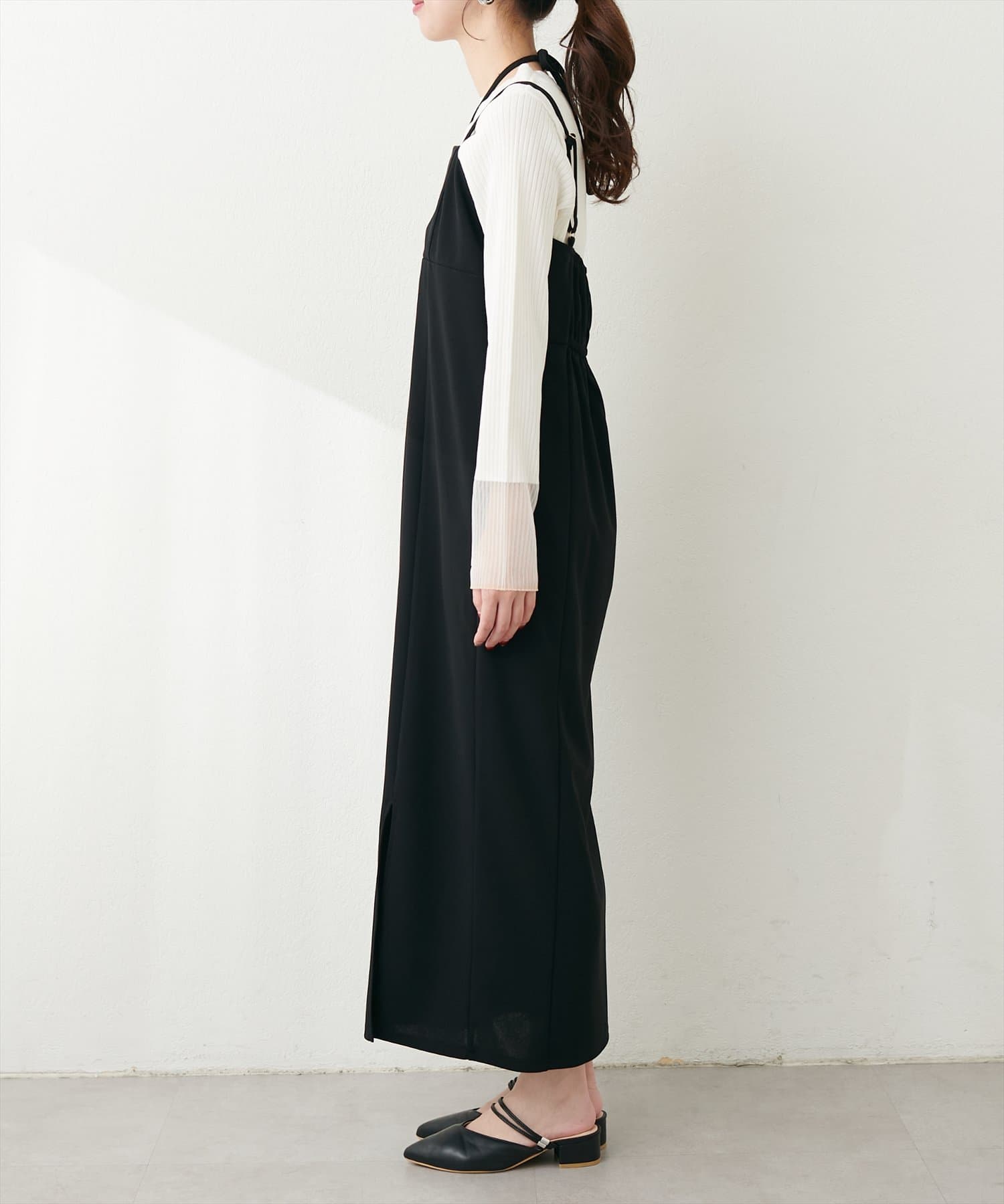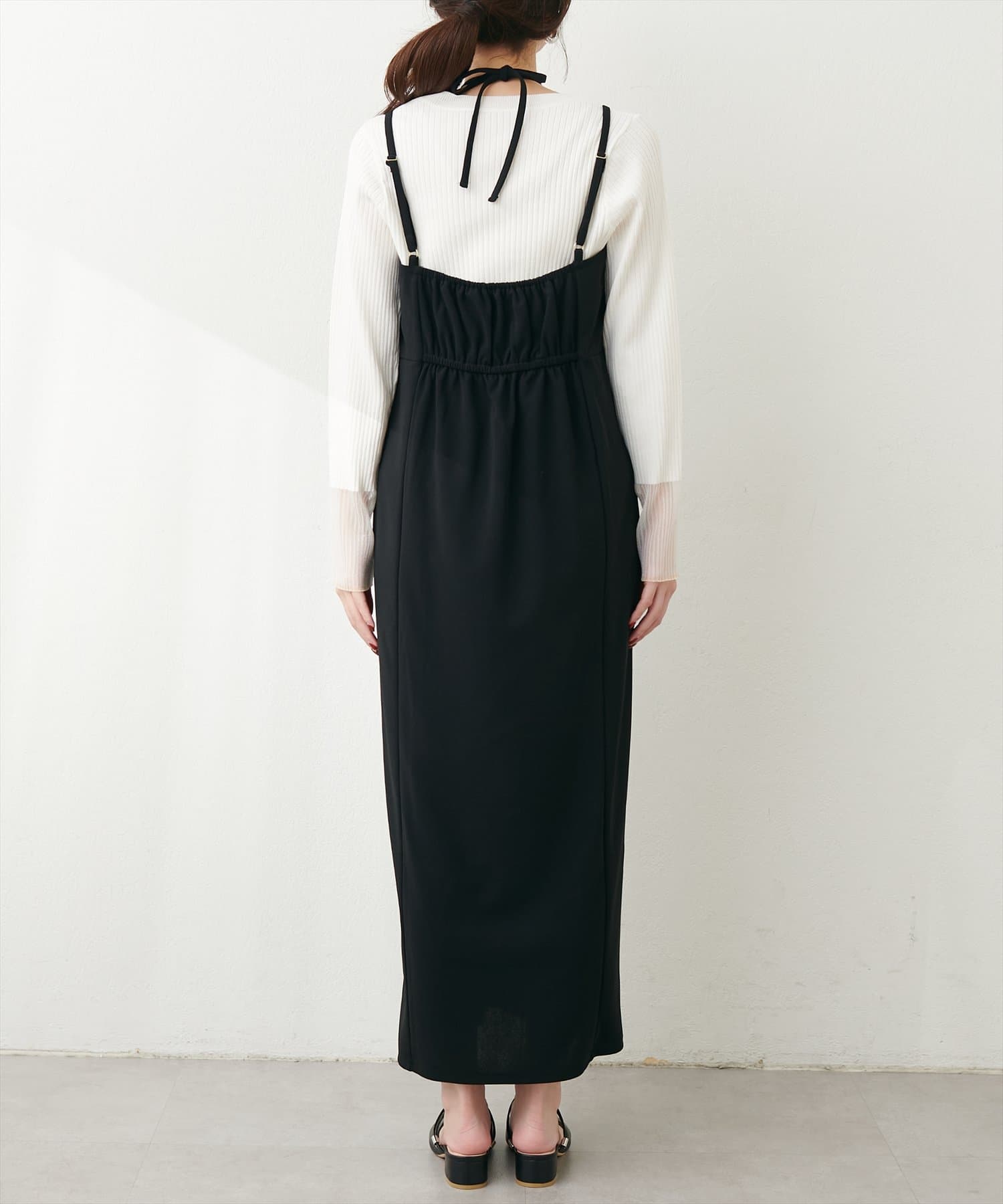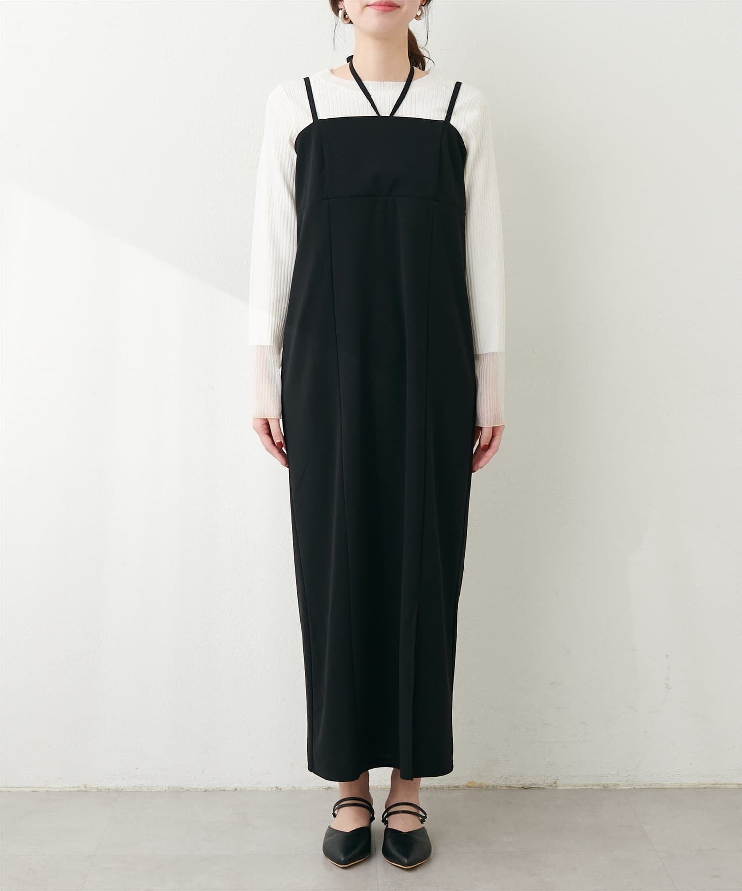 カットソーのような柔らかい素材感と風合いのキャミワンピース。