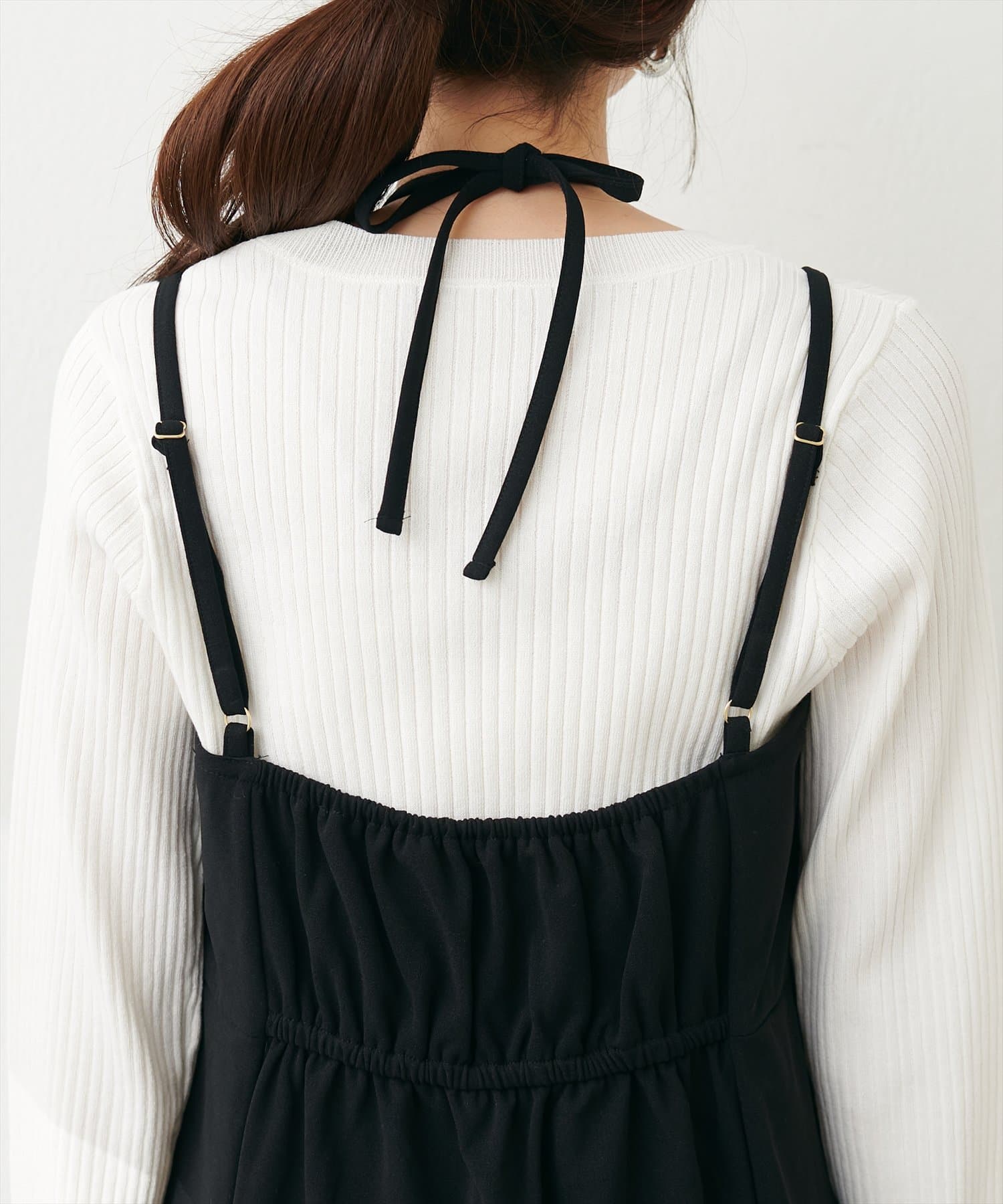 首元のひもは取り外し可能で、首元リボンで上品に決めたり、リボンをはずしてシンプルに決めても◎