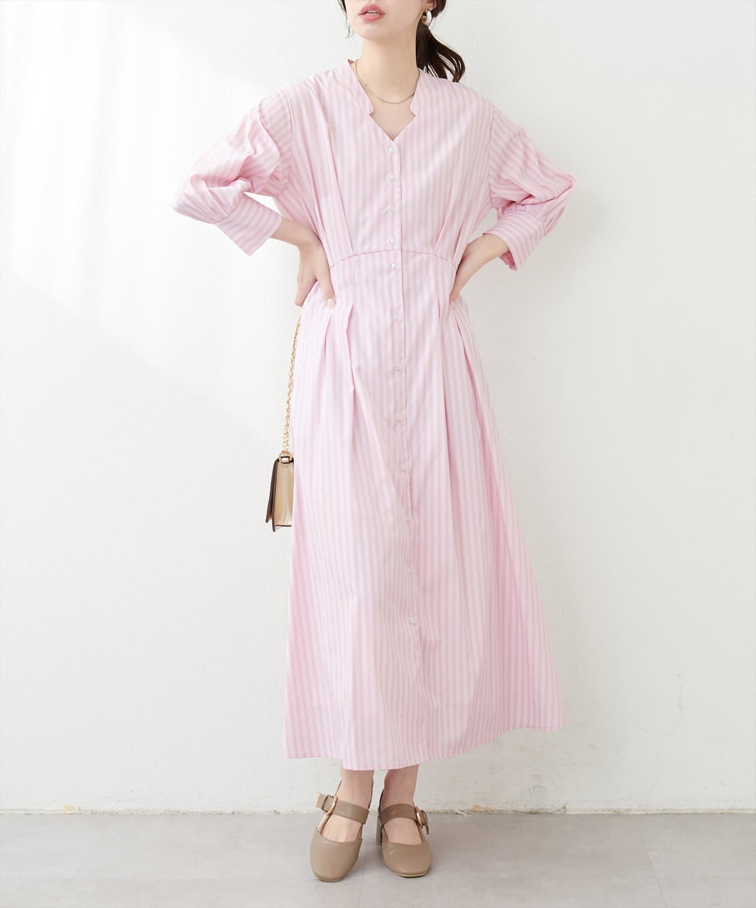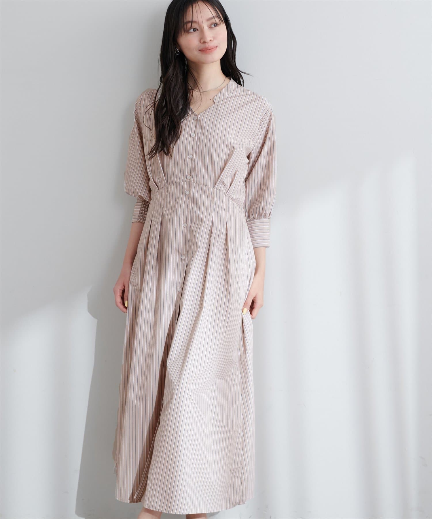 ウエストマークされたタックデザインで自然とスタイルアップ。