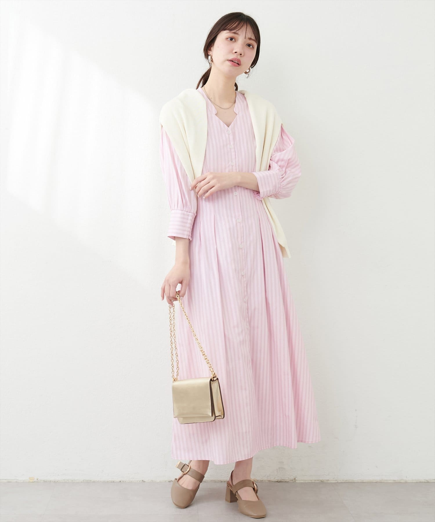 1枚で映えるワンピースなので、お気に入りのアクセサリーと一緒に