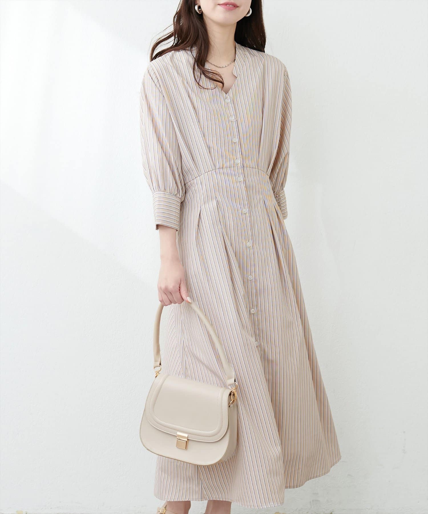 1枚できれいめ上品なスタイルが叶うシャツワンピース。