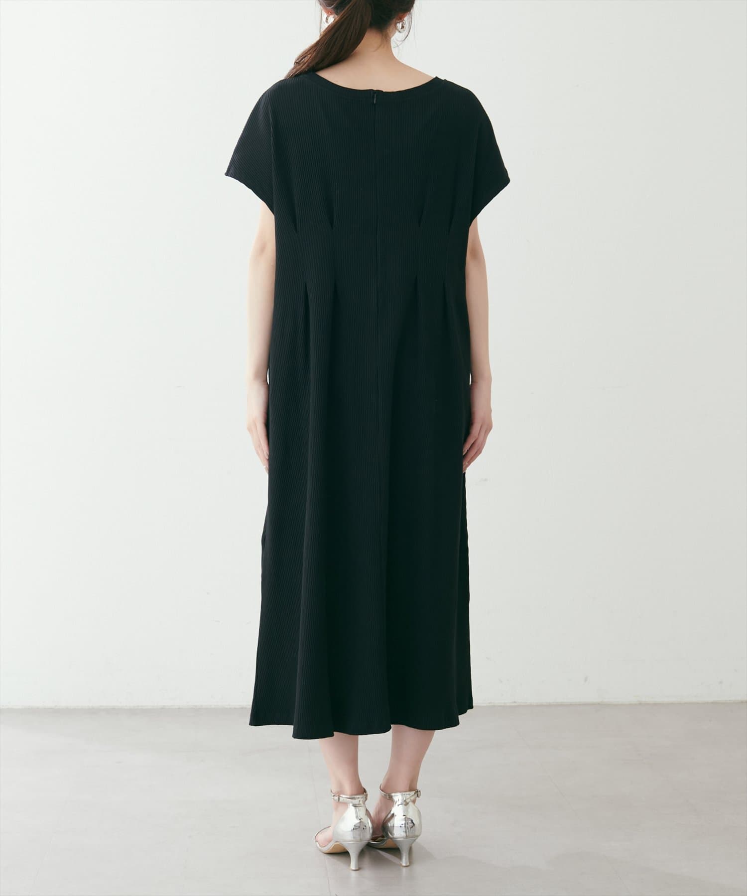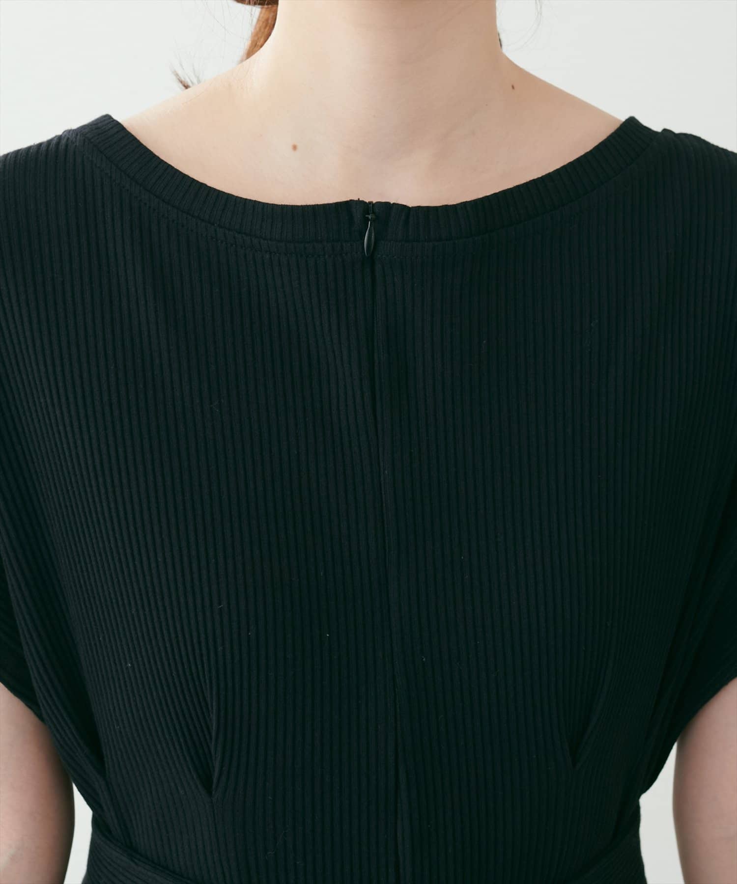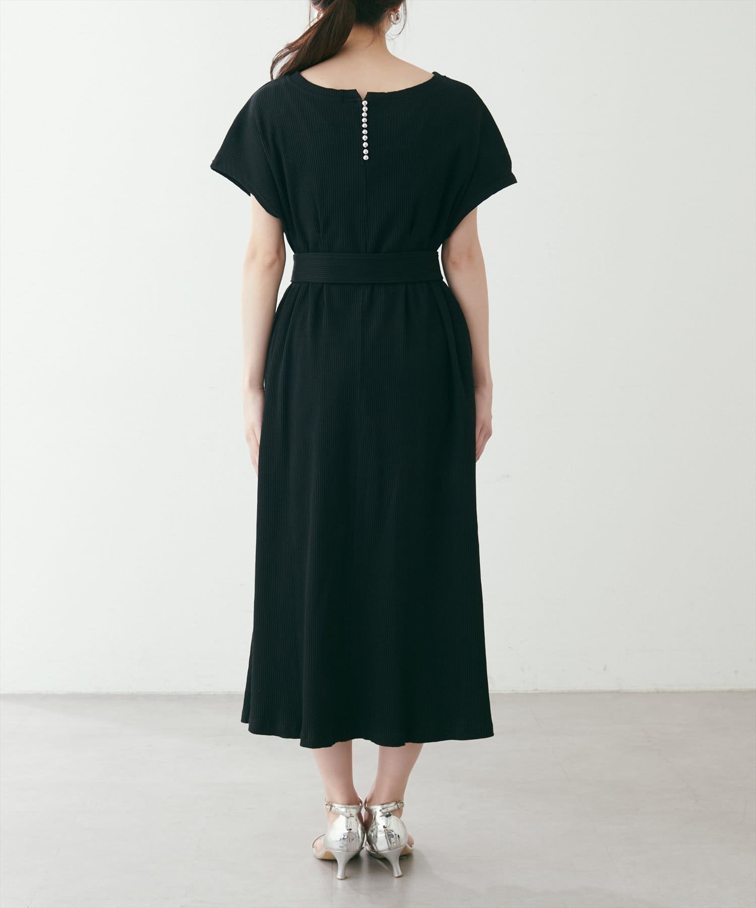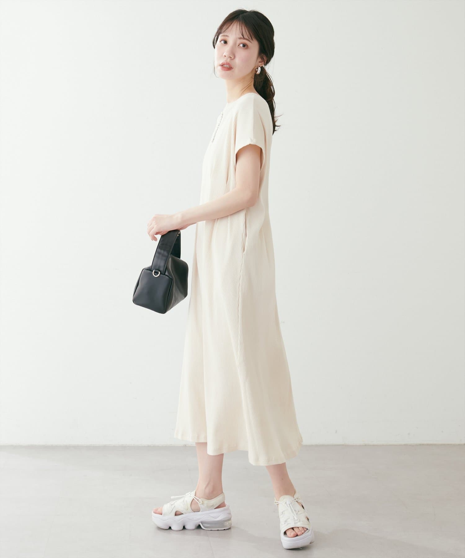 上品なフレンチスリーブが大人レディな雰囲気のテレコリブワンピース。