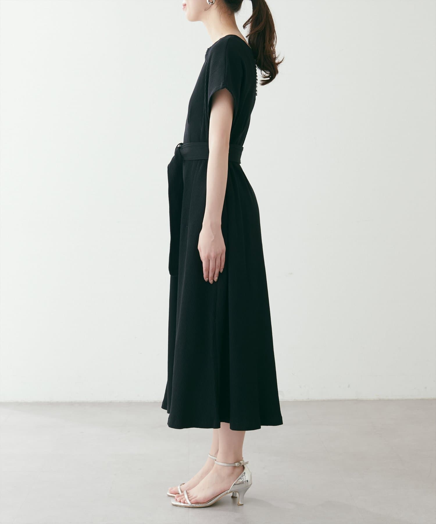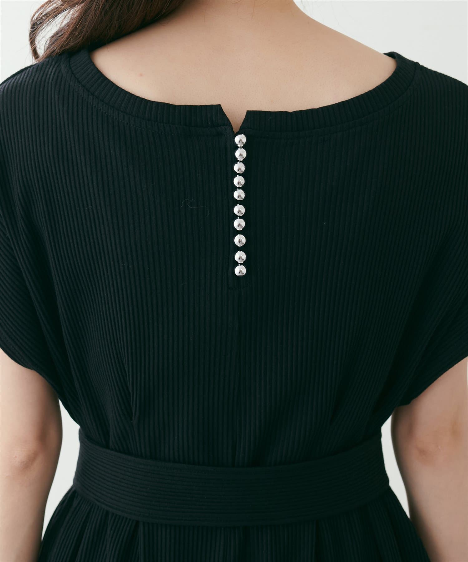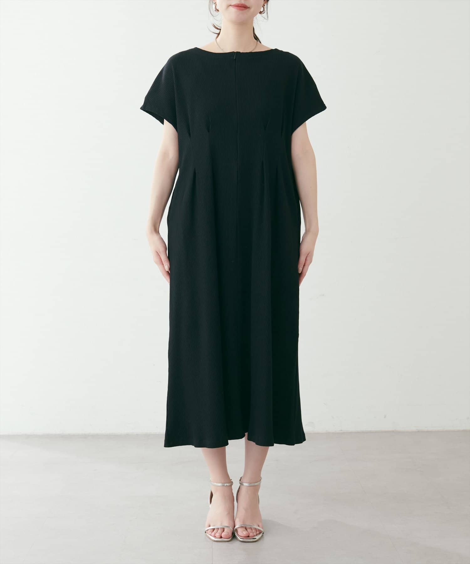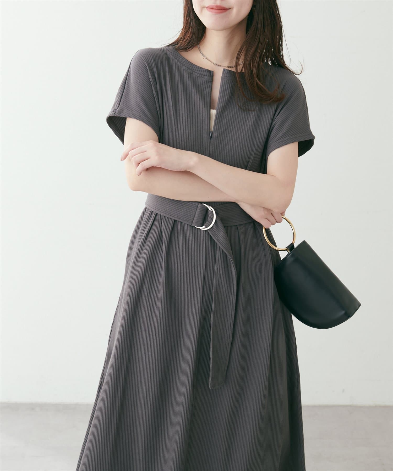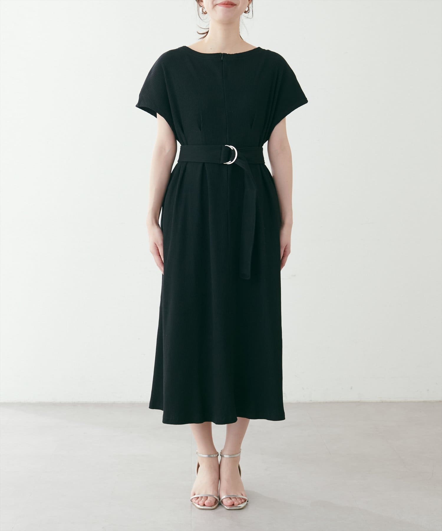 上品なフレンチスリーブが大人レディな雰囲気のテレコリブワンピース。
