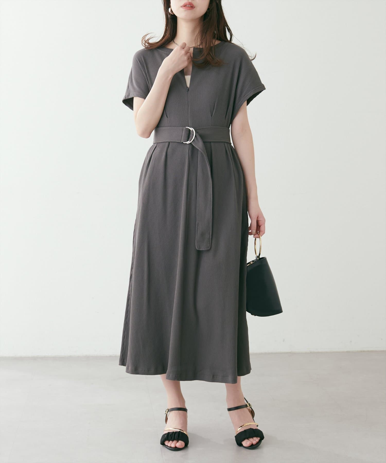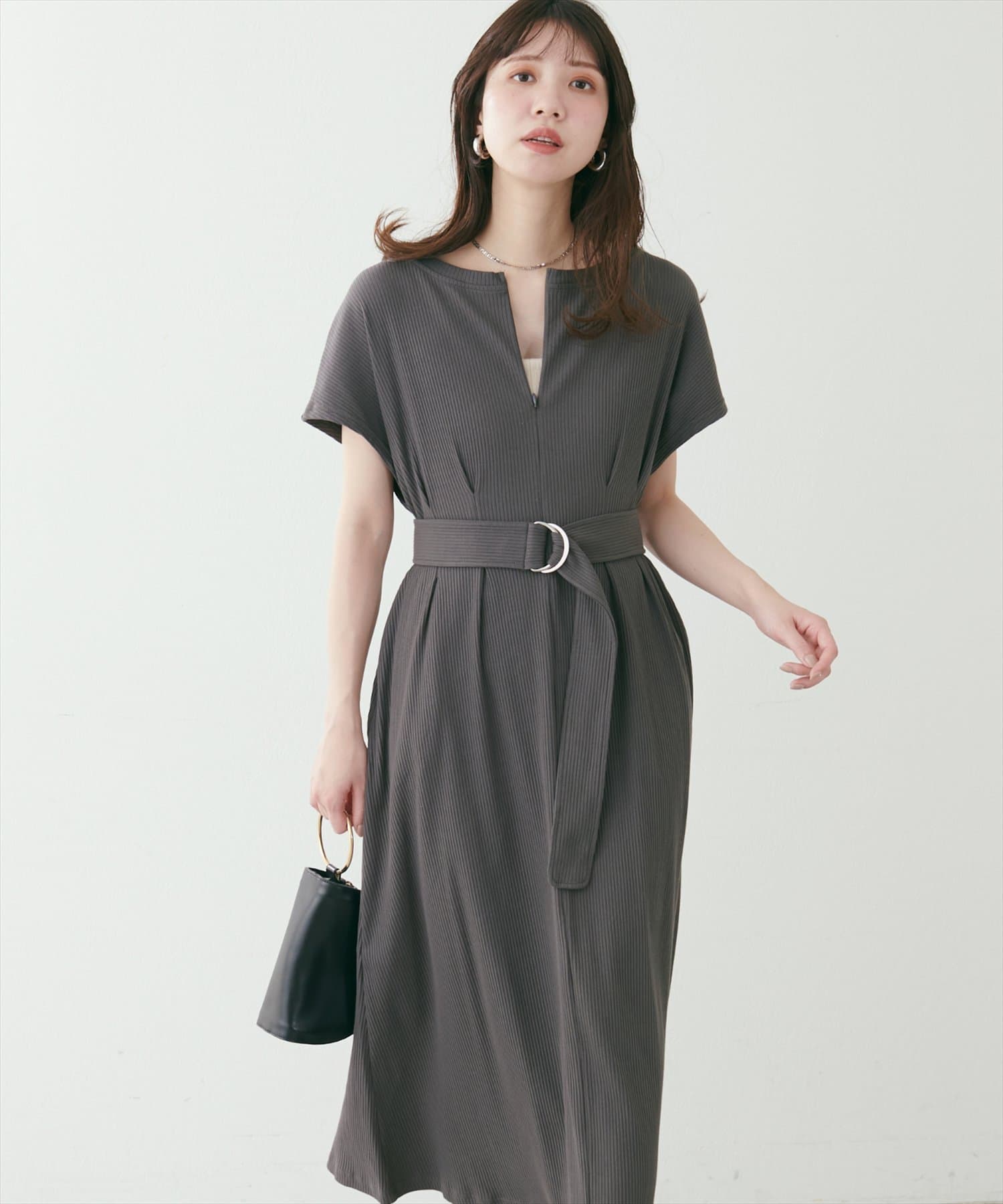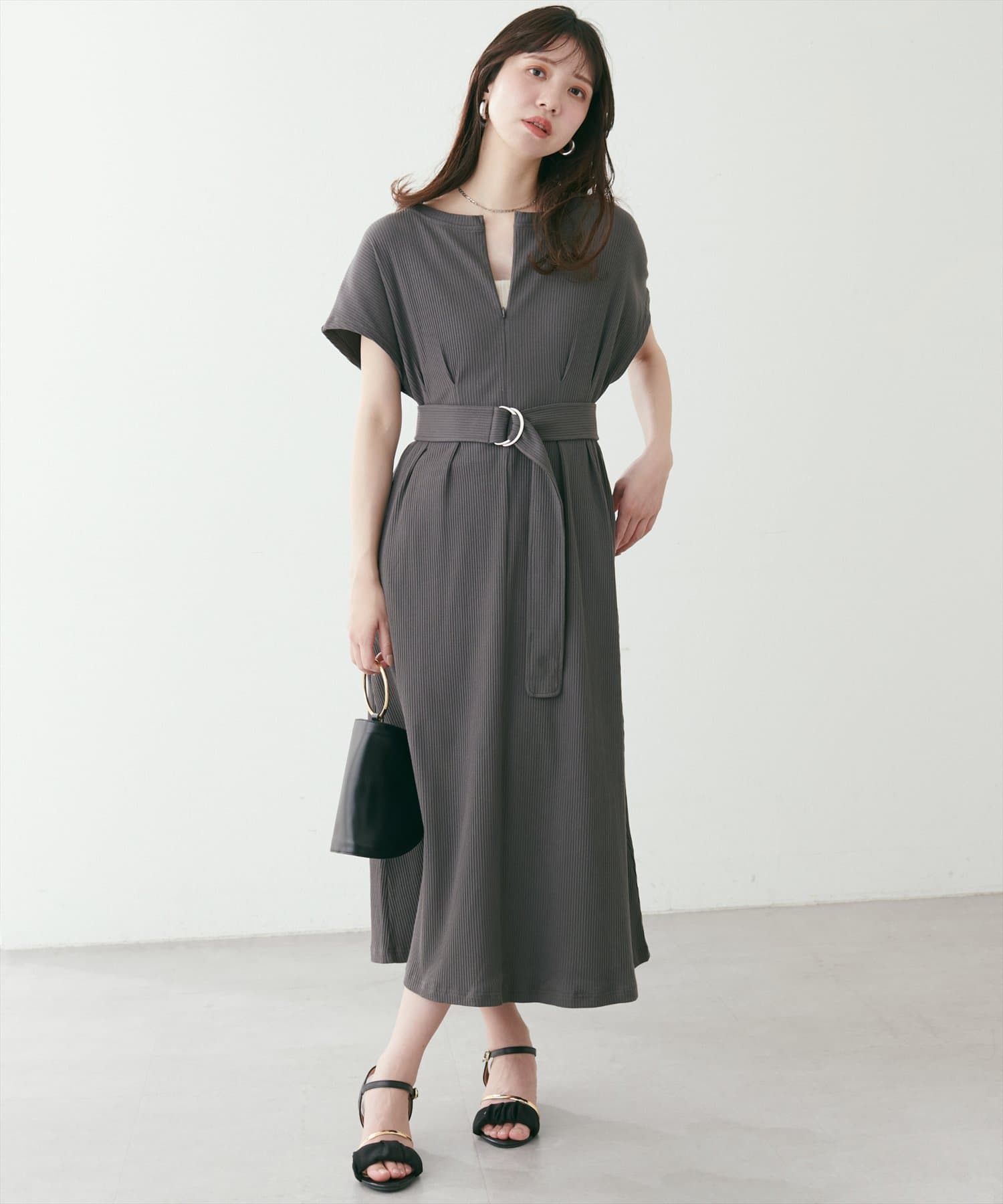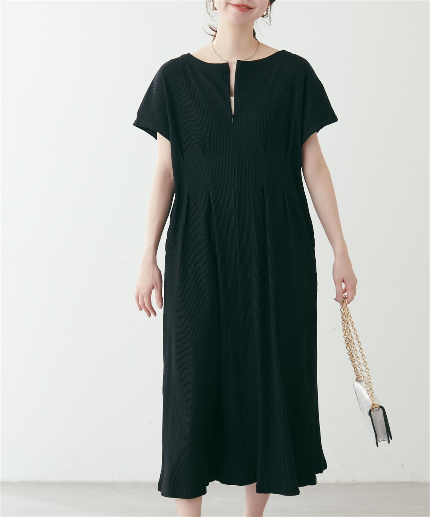 上品なフレンチスリーブが大人レディな雰囲気のテレコリブワンピース。