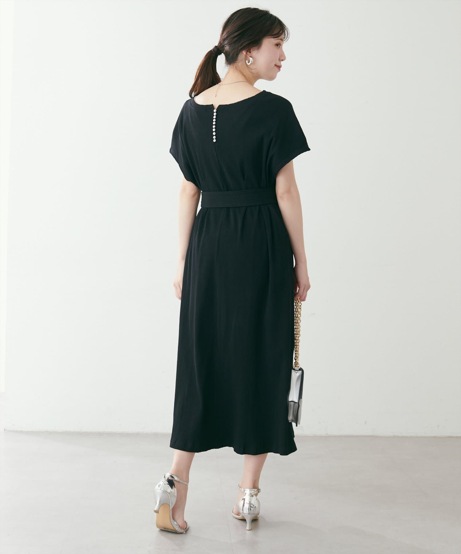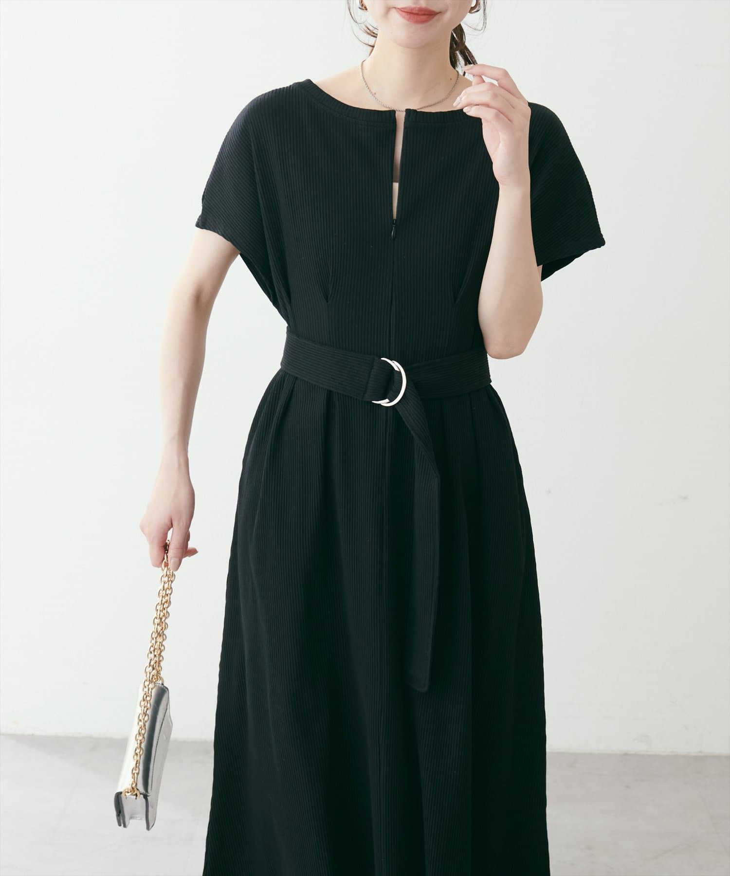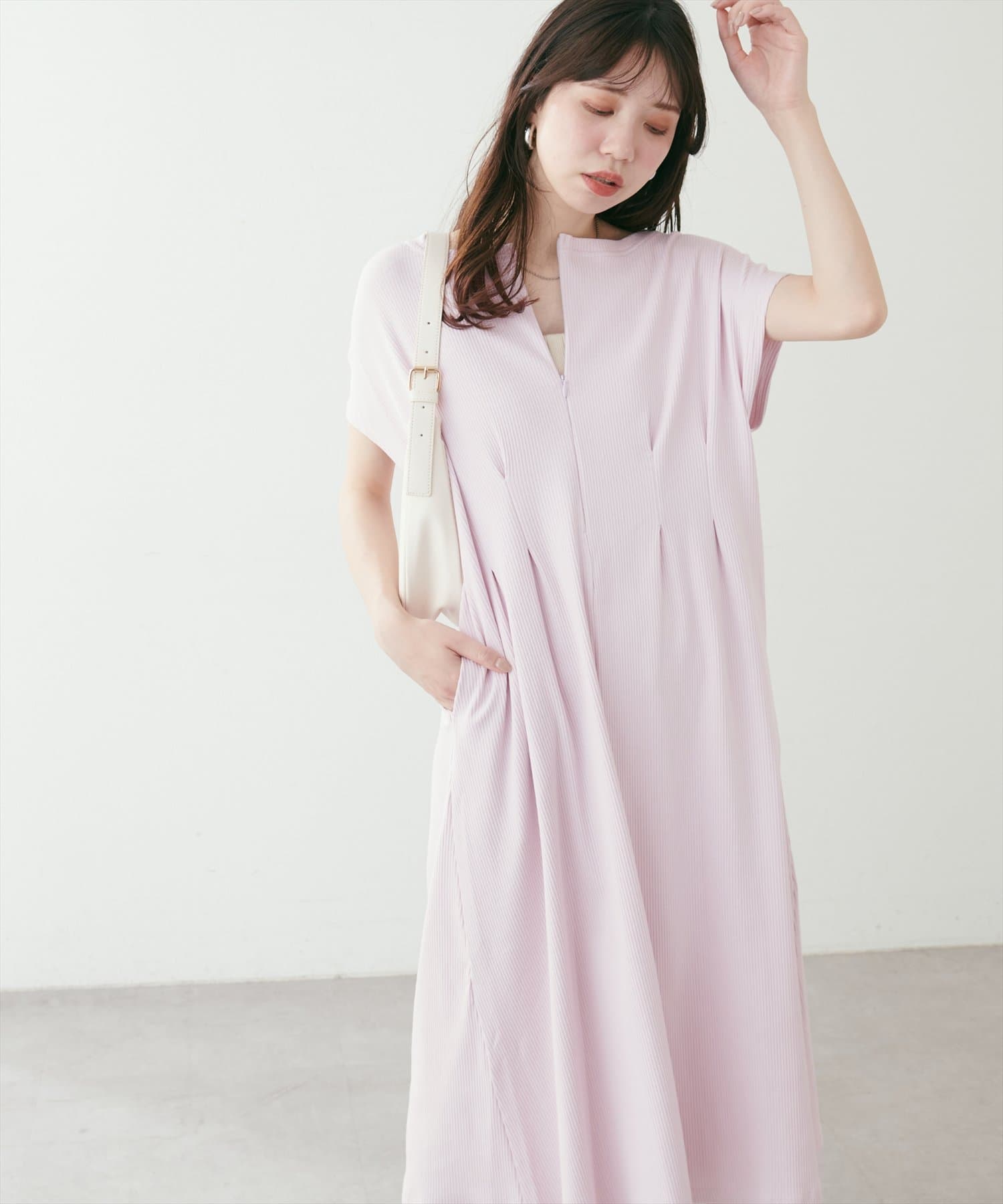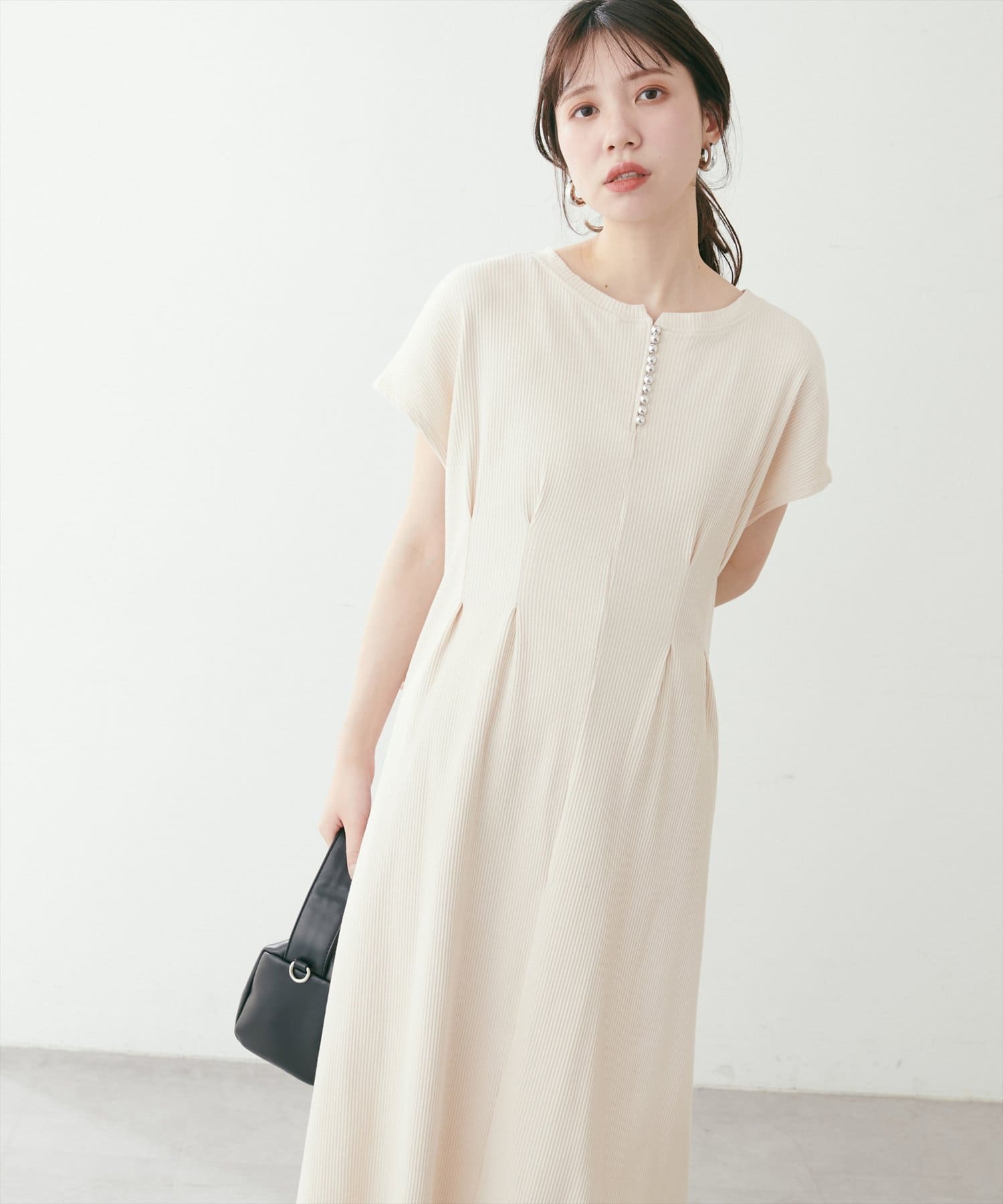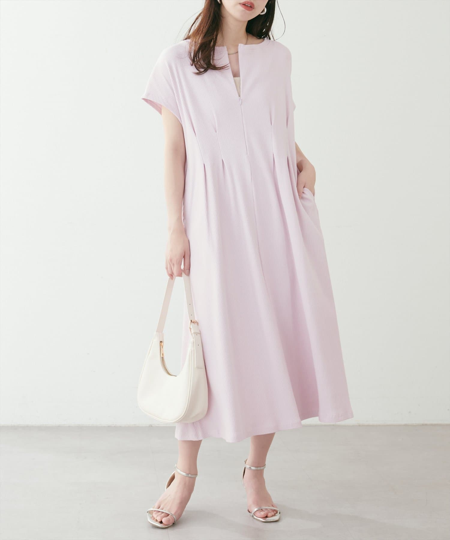 上品なフレンチスリーブが大人レディな雰囲気のテレコリブワンピース。