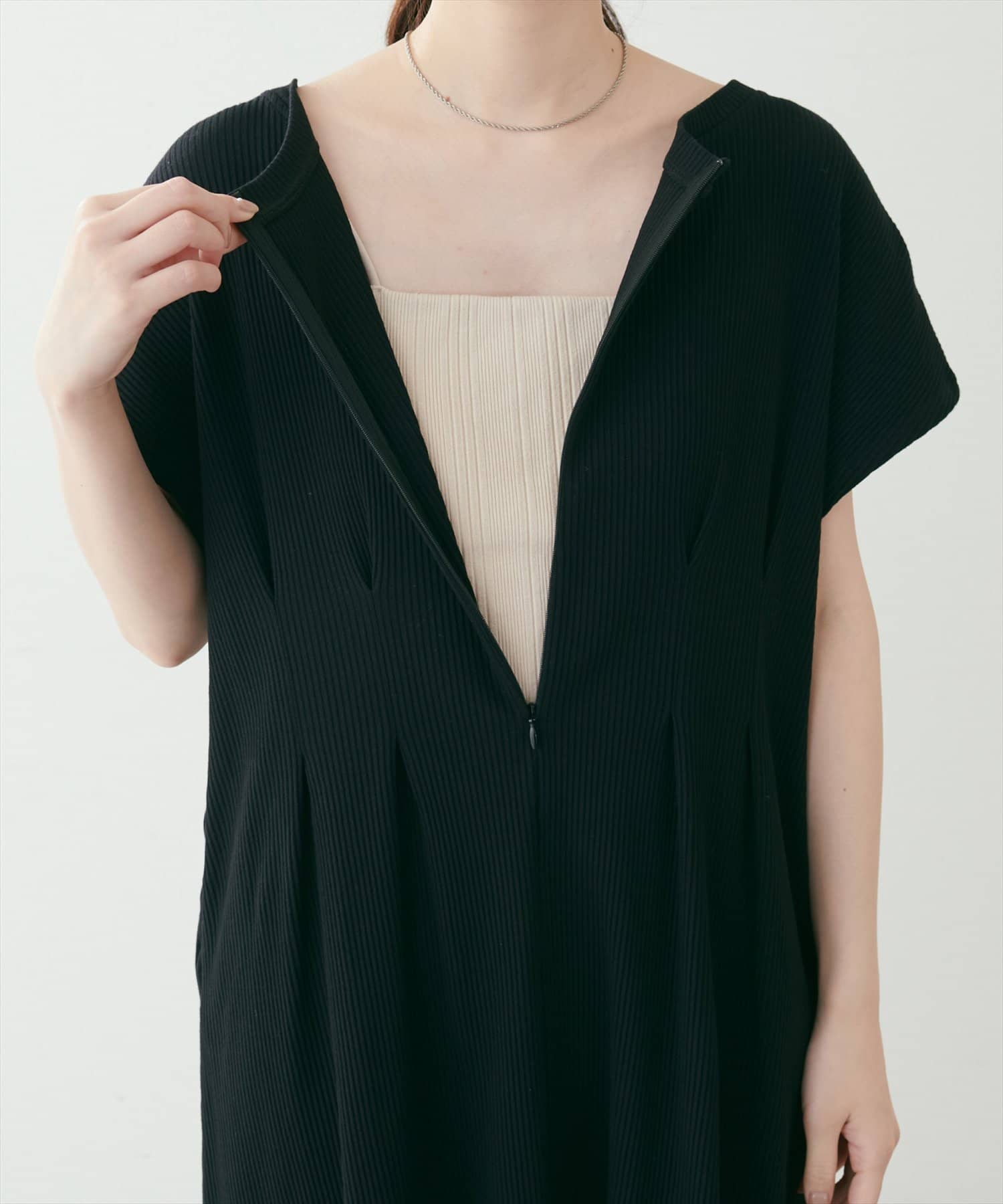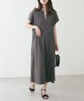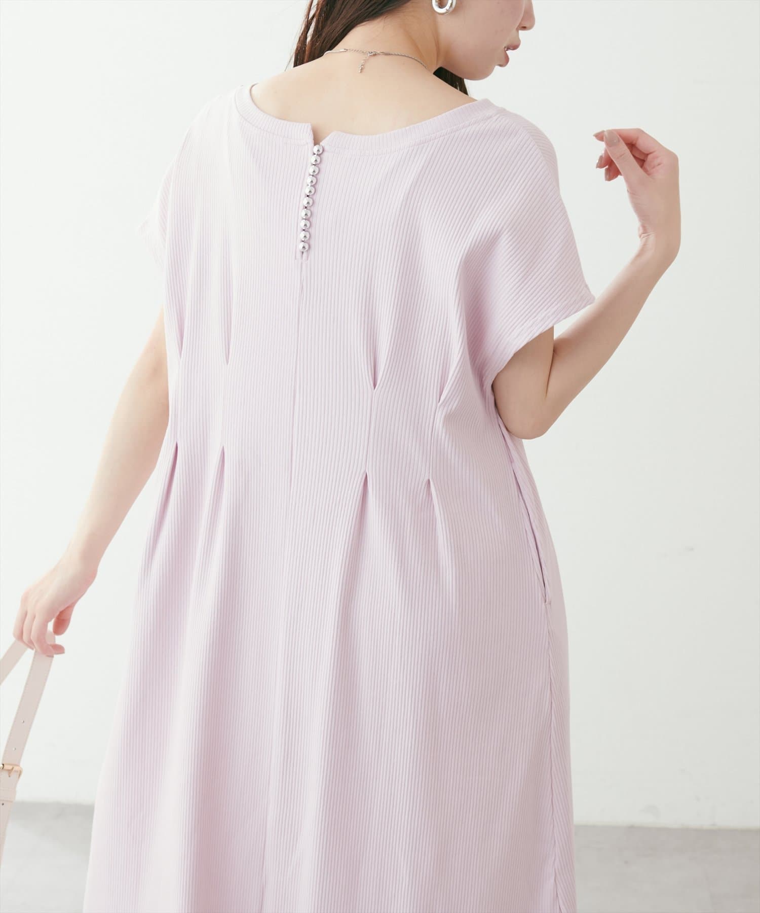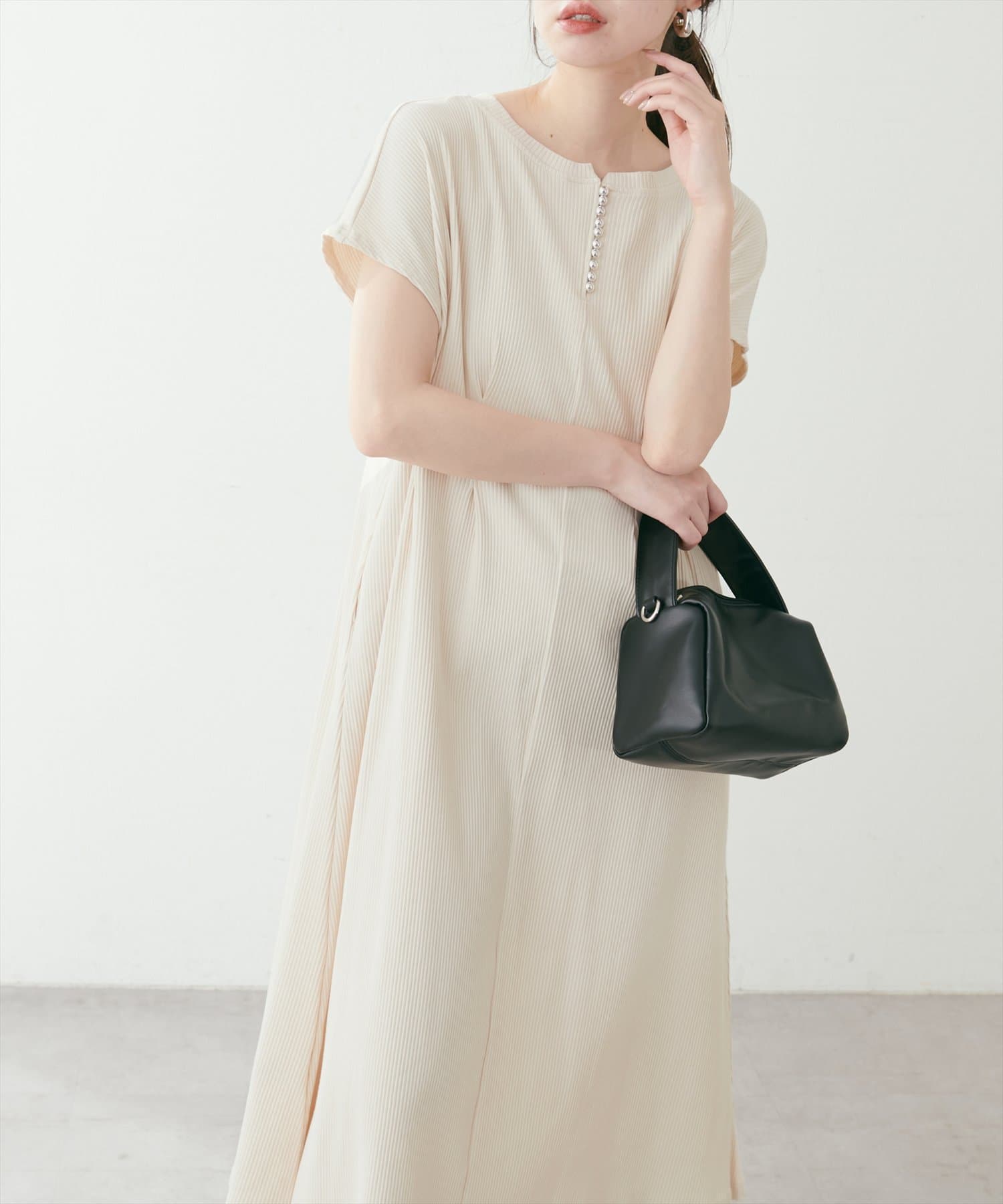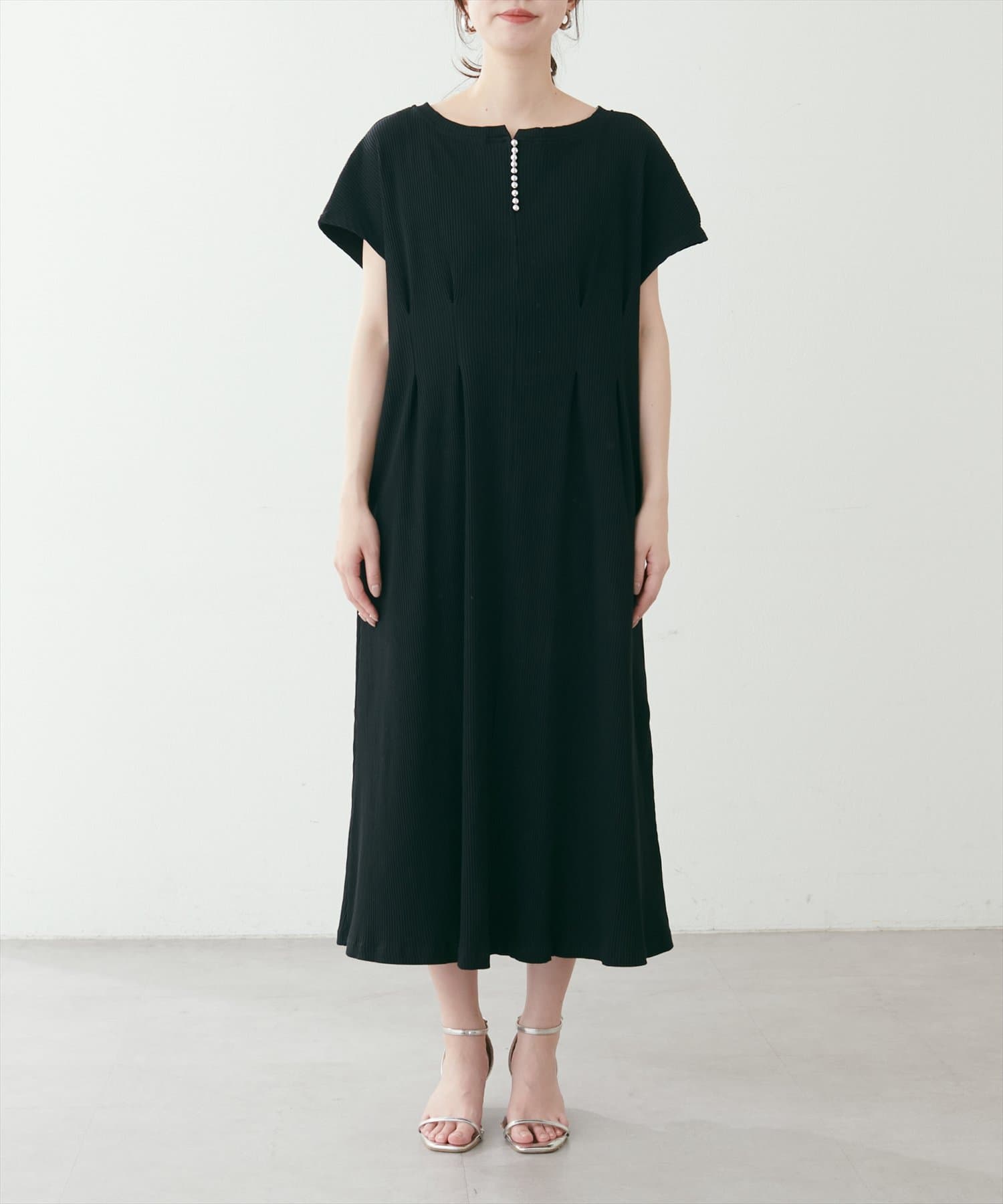 上品なフレンチスリーブが大人レディな雰囲気のテレコリブワンピース。