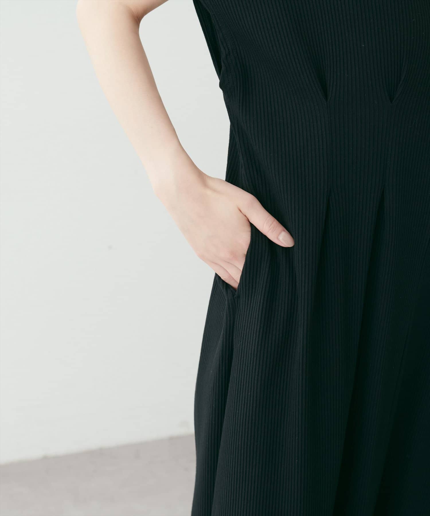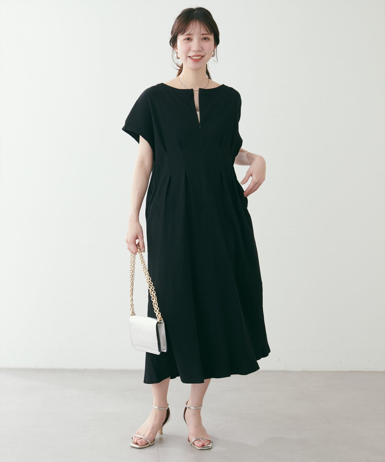 ウエストに施されたタックが、体のラインを優しくカバーしながらスタイルアップを叶えてくれます。