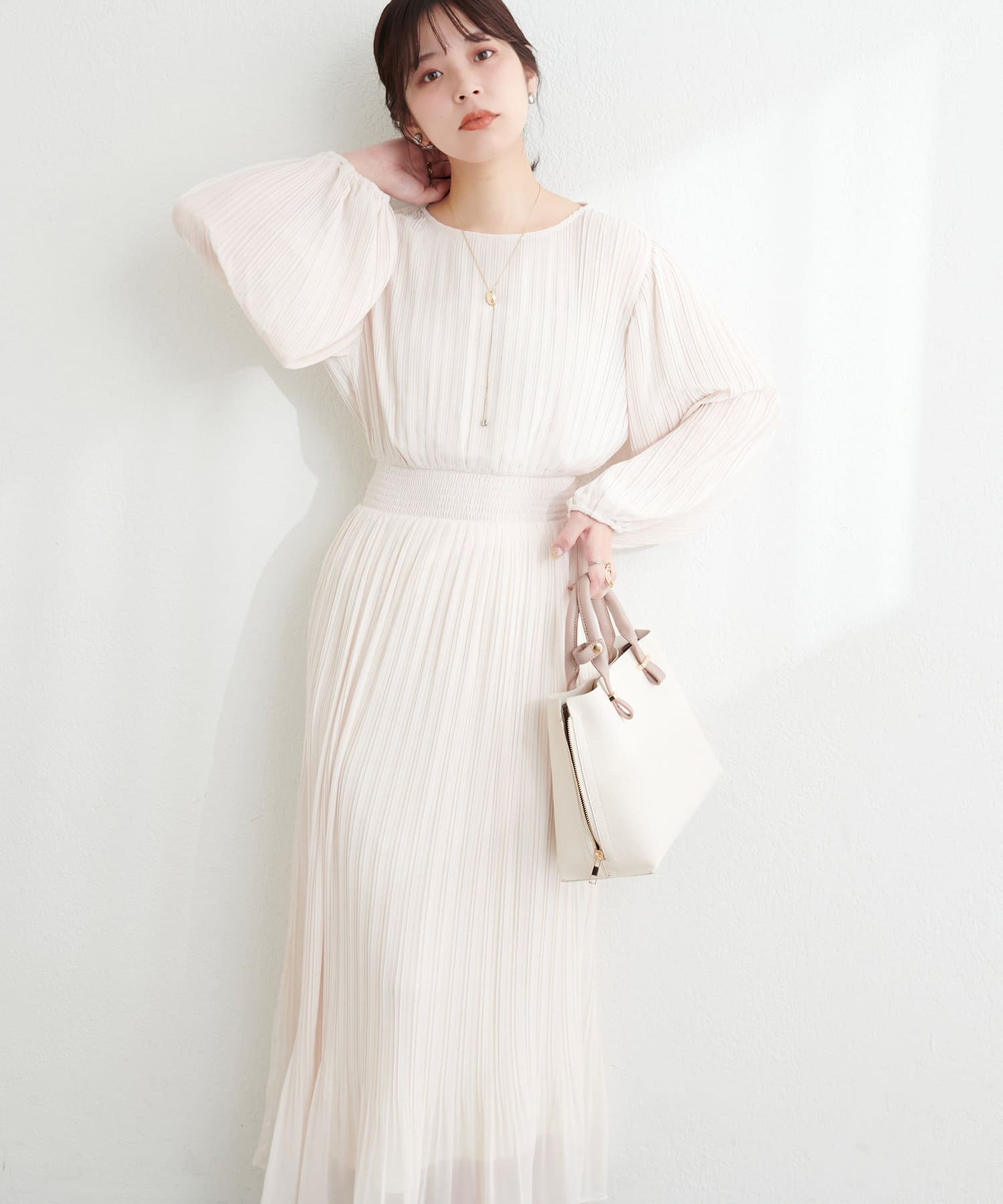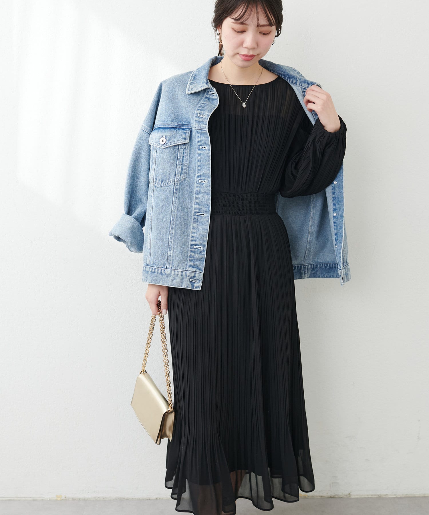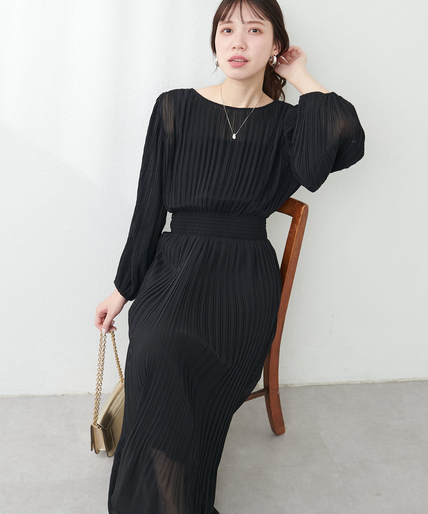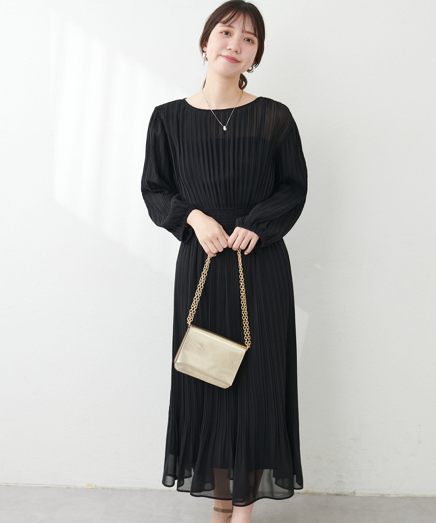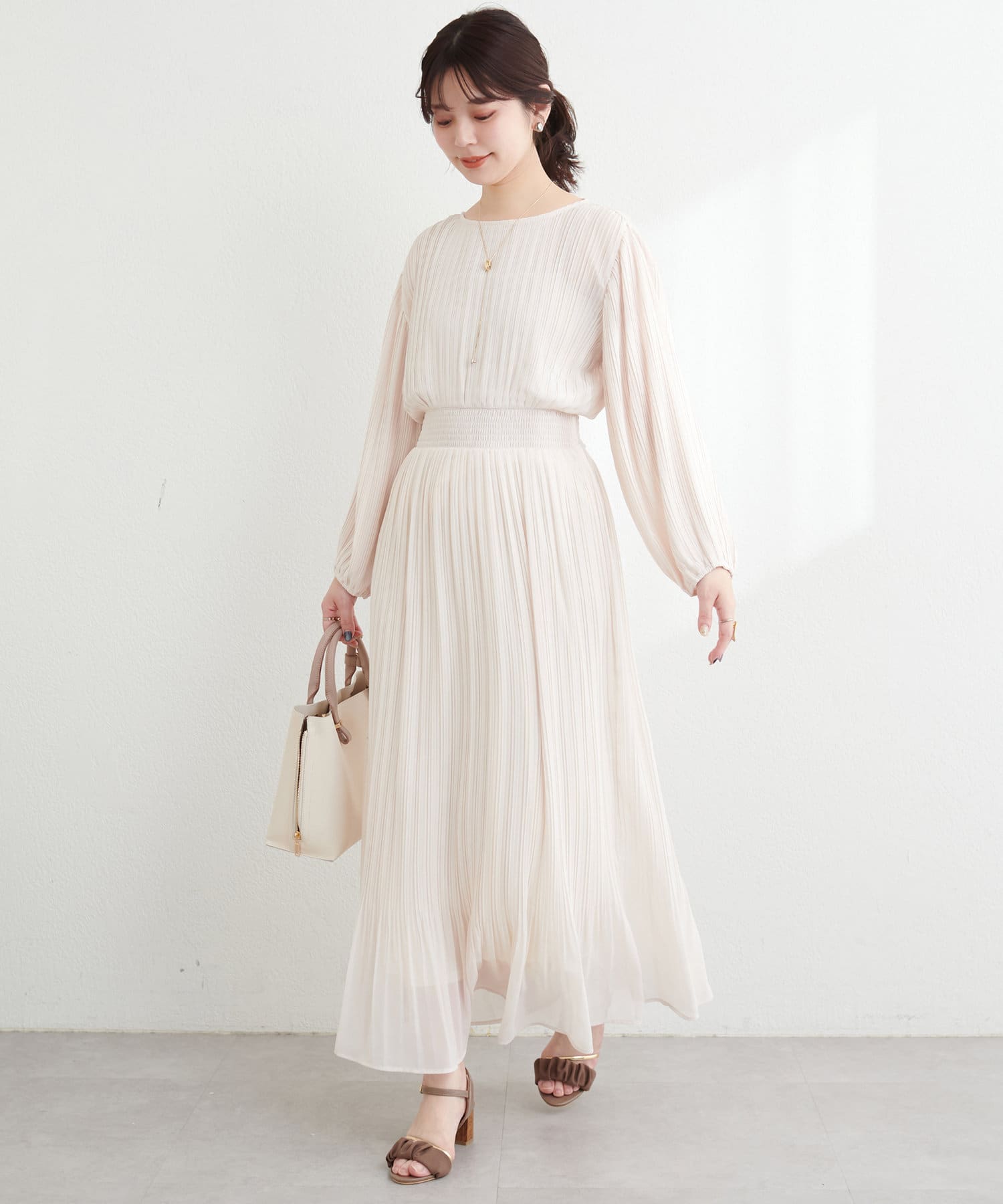 ウエスト部分はシャーリングで伸びやすく細見え効果も◎