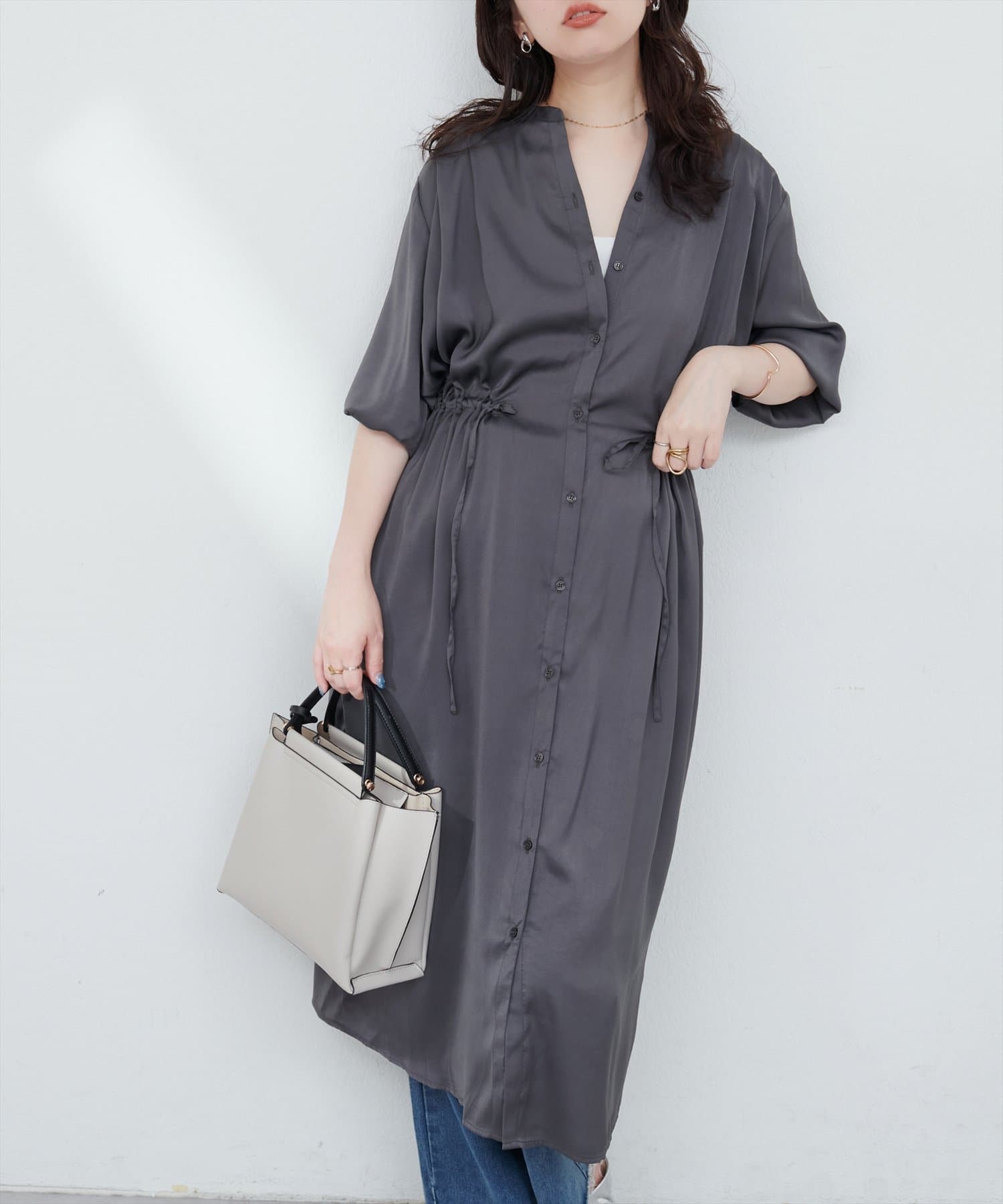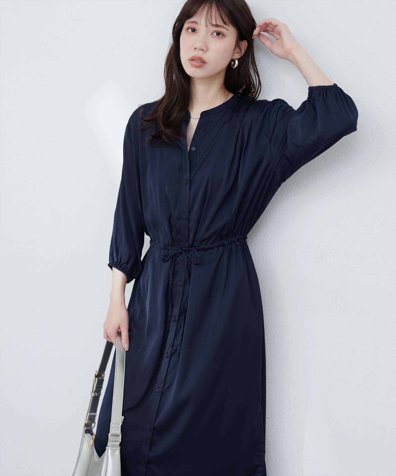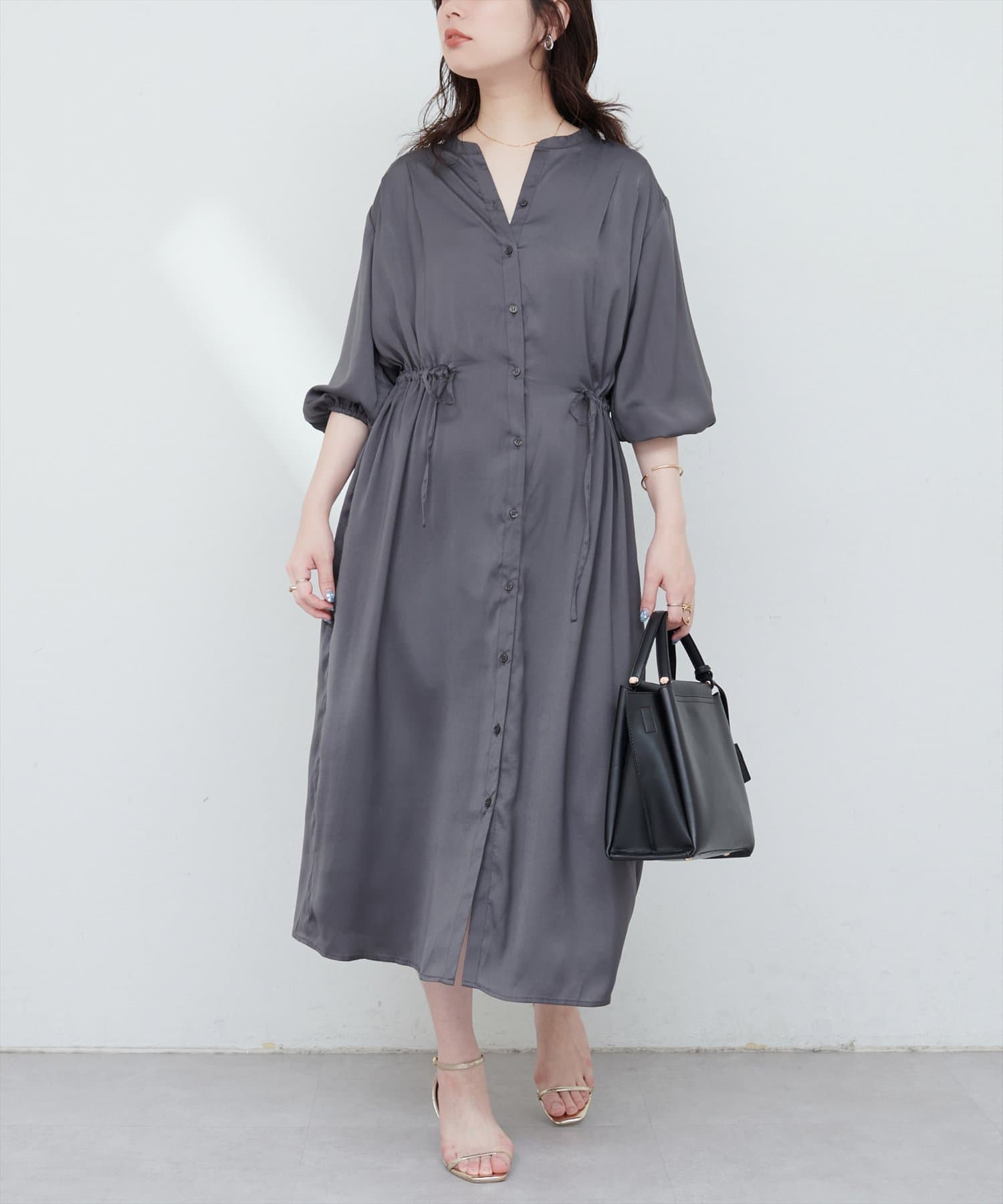 ウエストリボンでウエストマークすると、スタイルアップしてお召しいただけます。