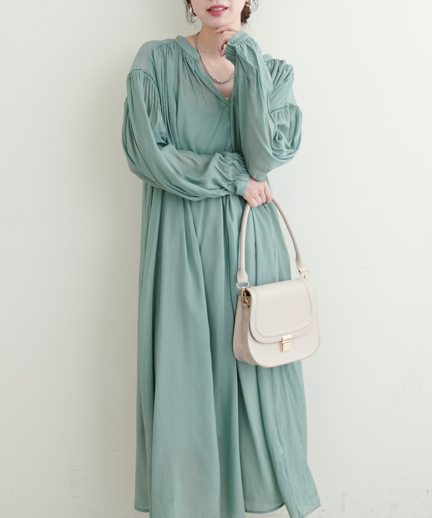 たっぷりなギャザーとシアーの生地感で大人っぽくヘルシーなデザインにこだわりました。