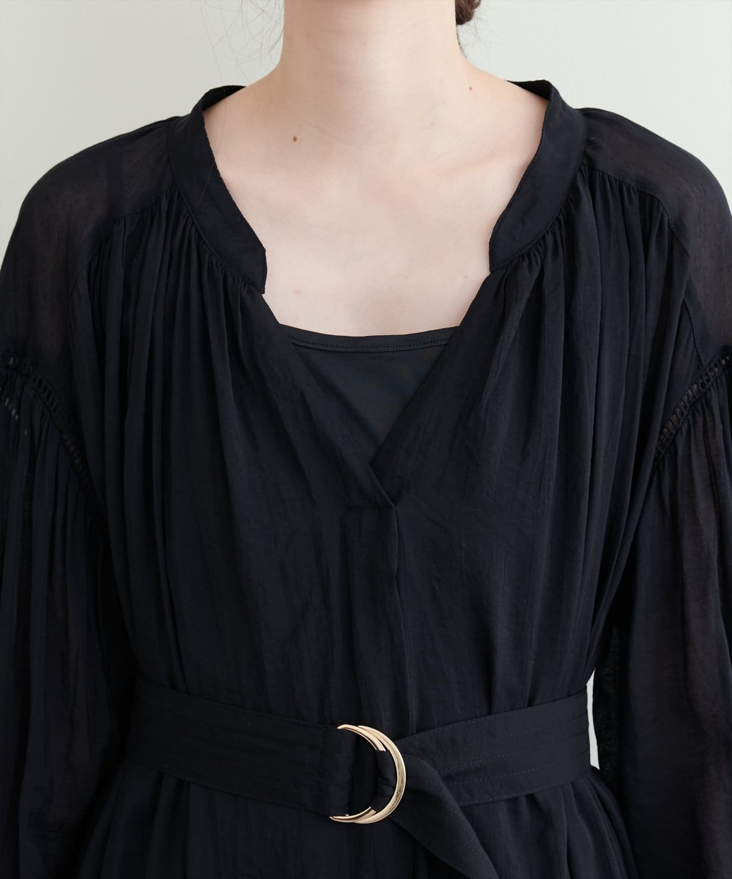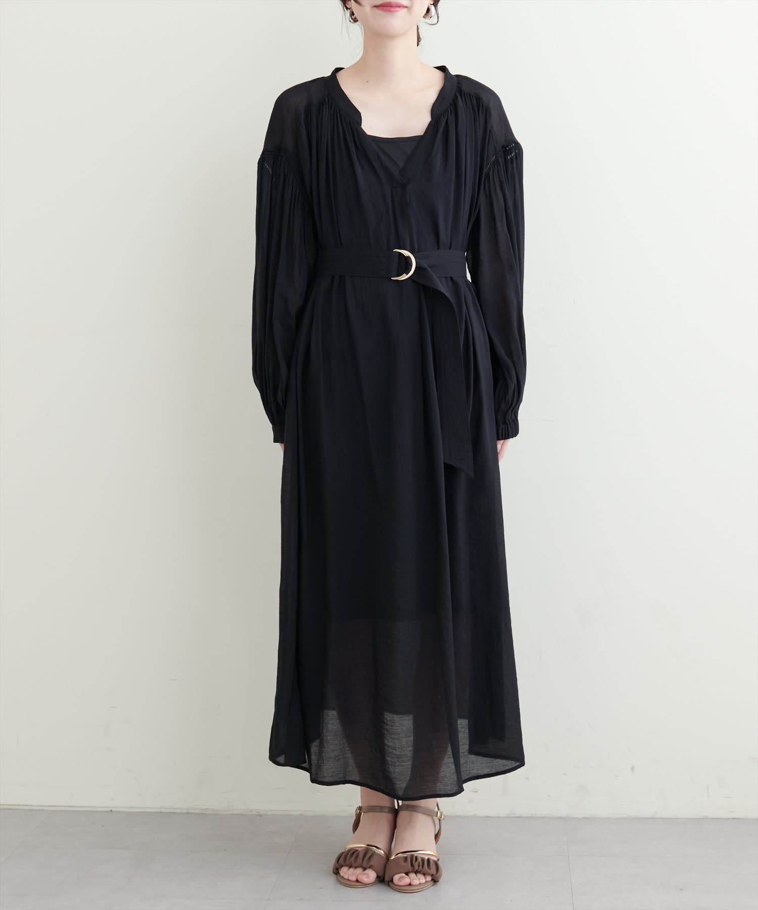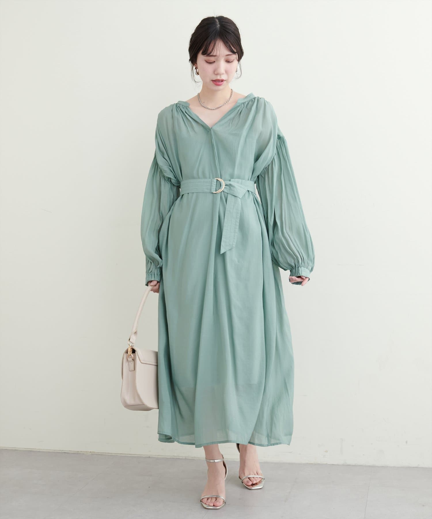 ワンピースの両サイドにベルトループがついているので付属のベルトでウエストマークすると、スタイルアップしてお召しいただけます。