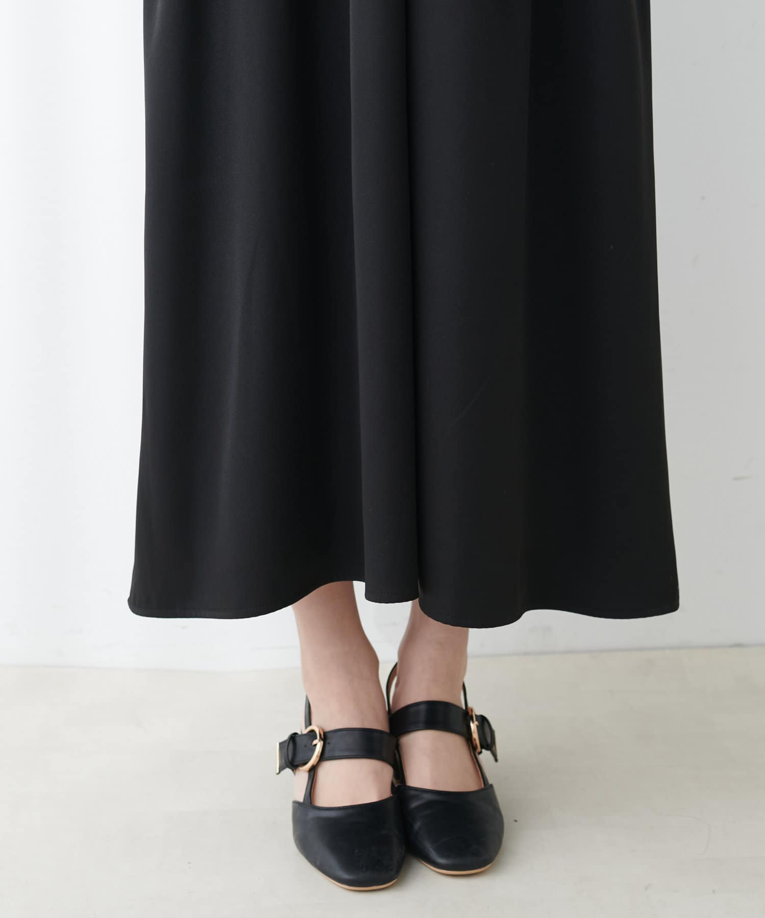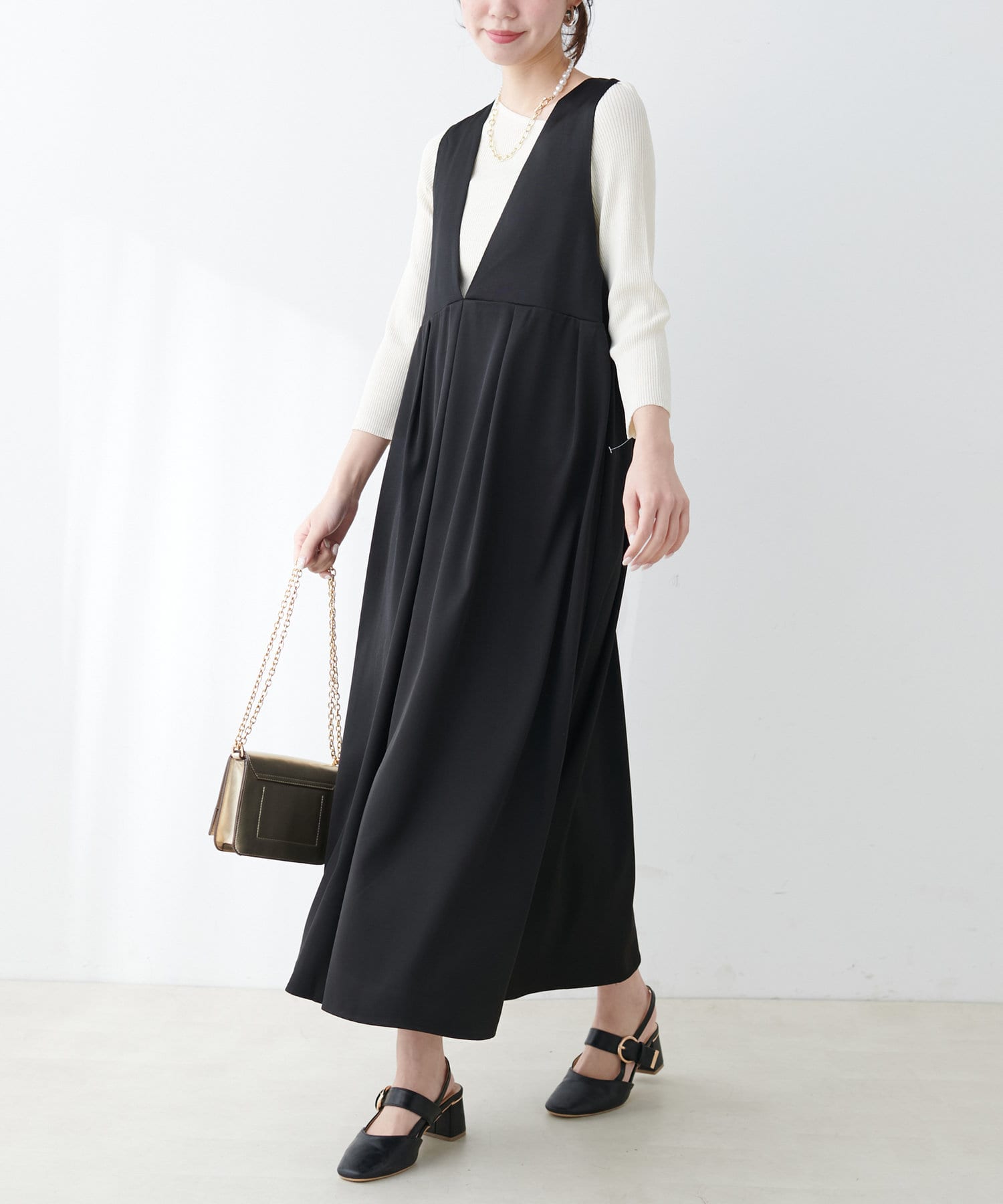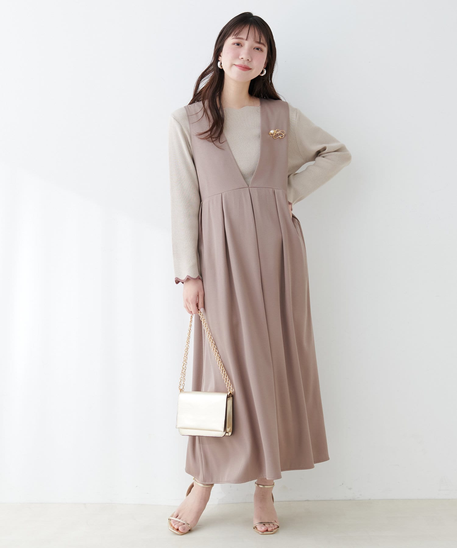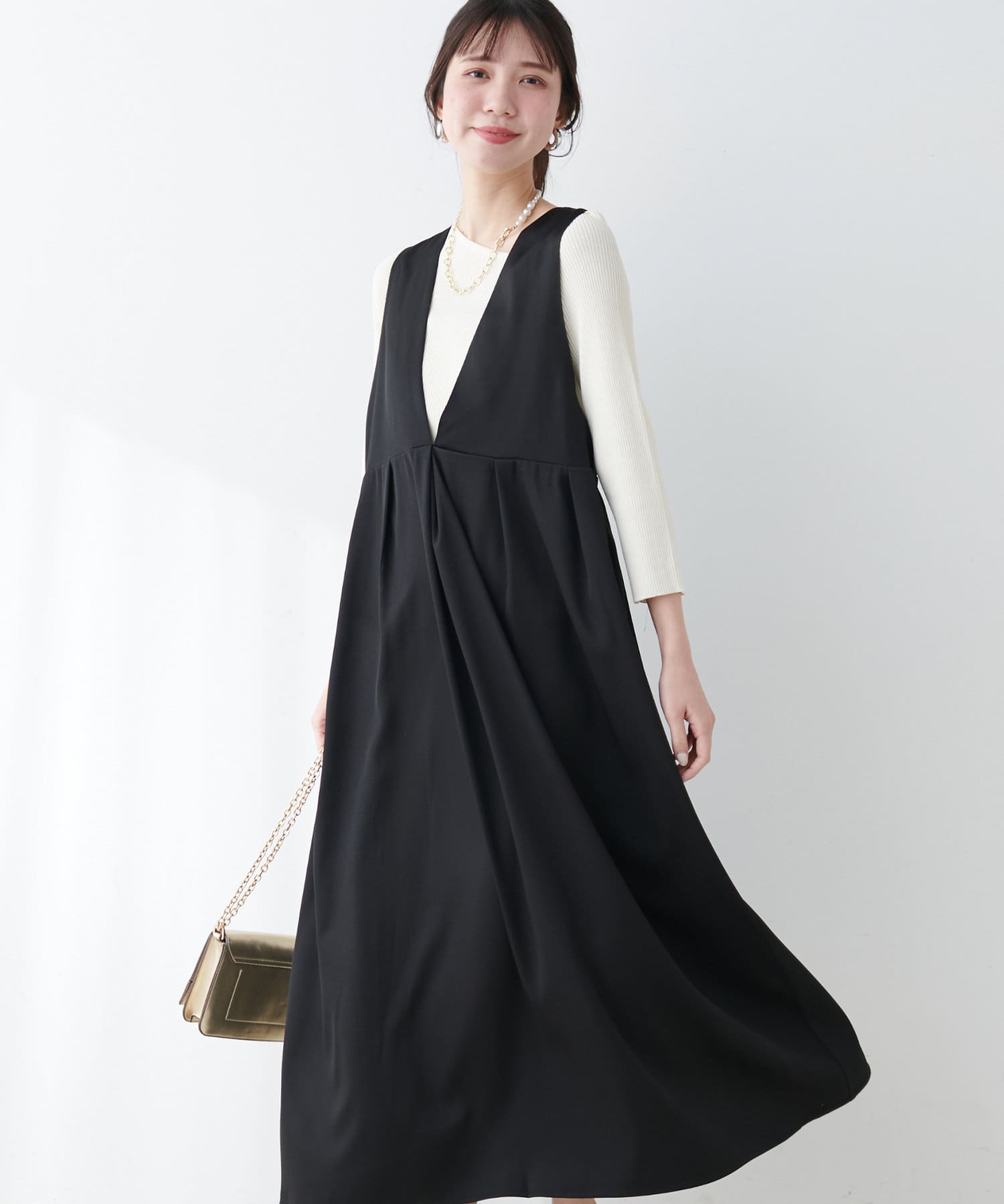 胸元の切り替えから裾にむかってひらっとしたラインで揺れ感がきれいなシルエットに。
