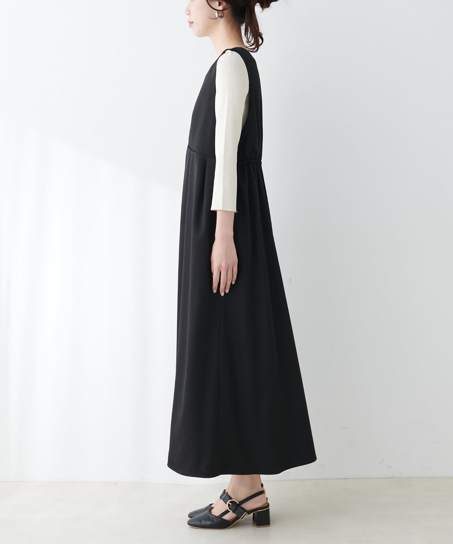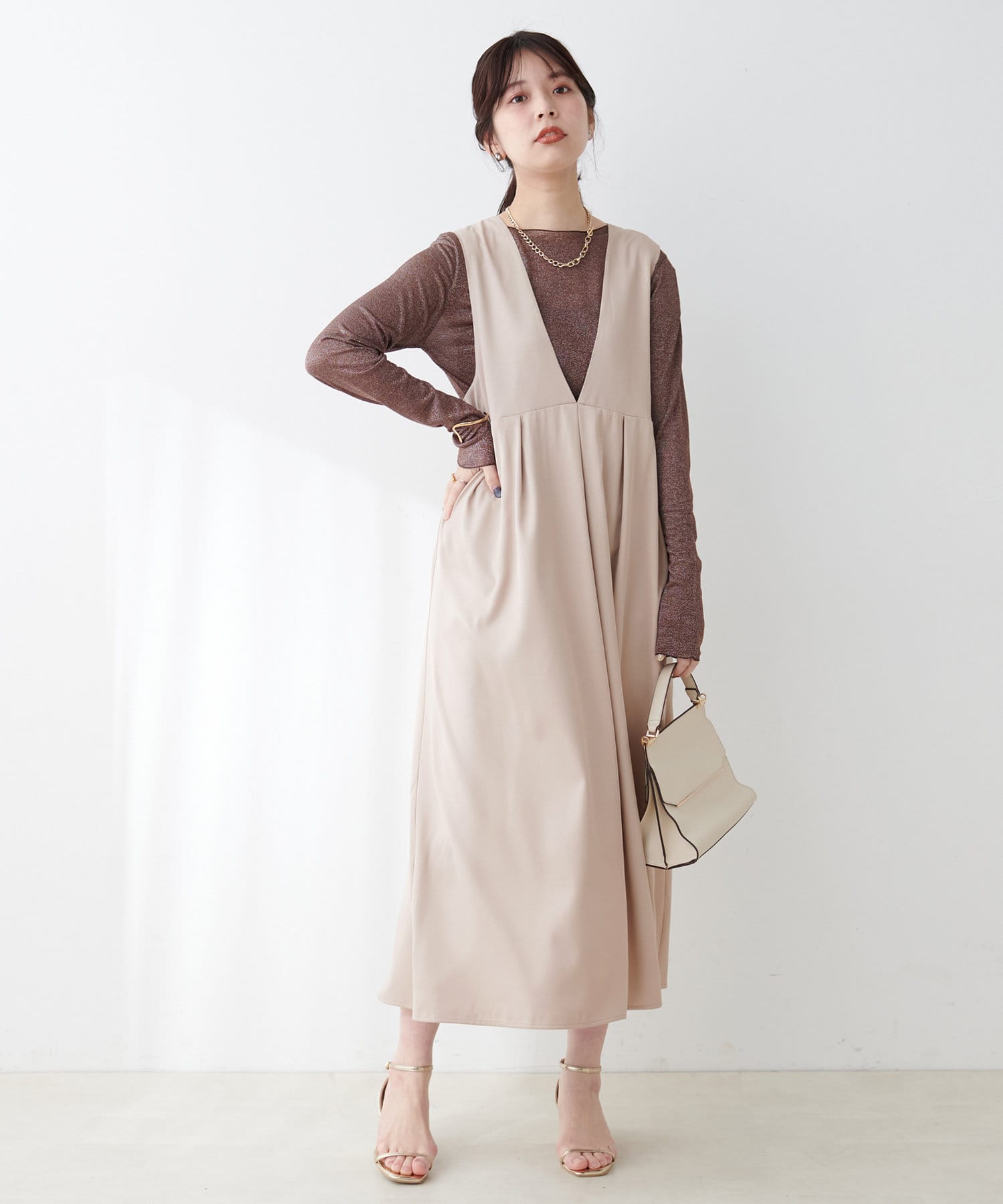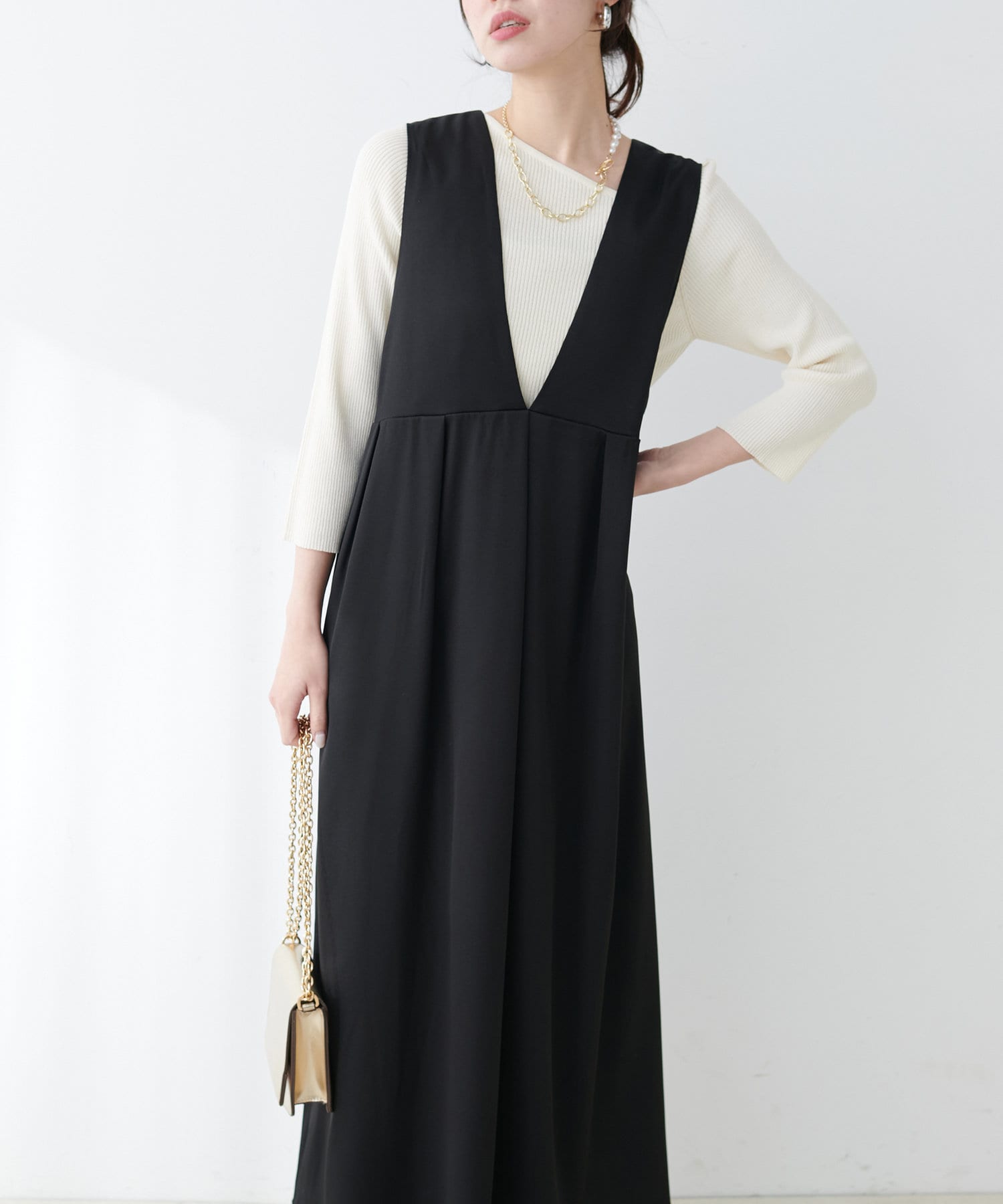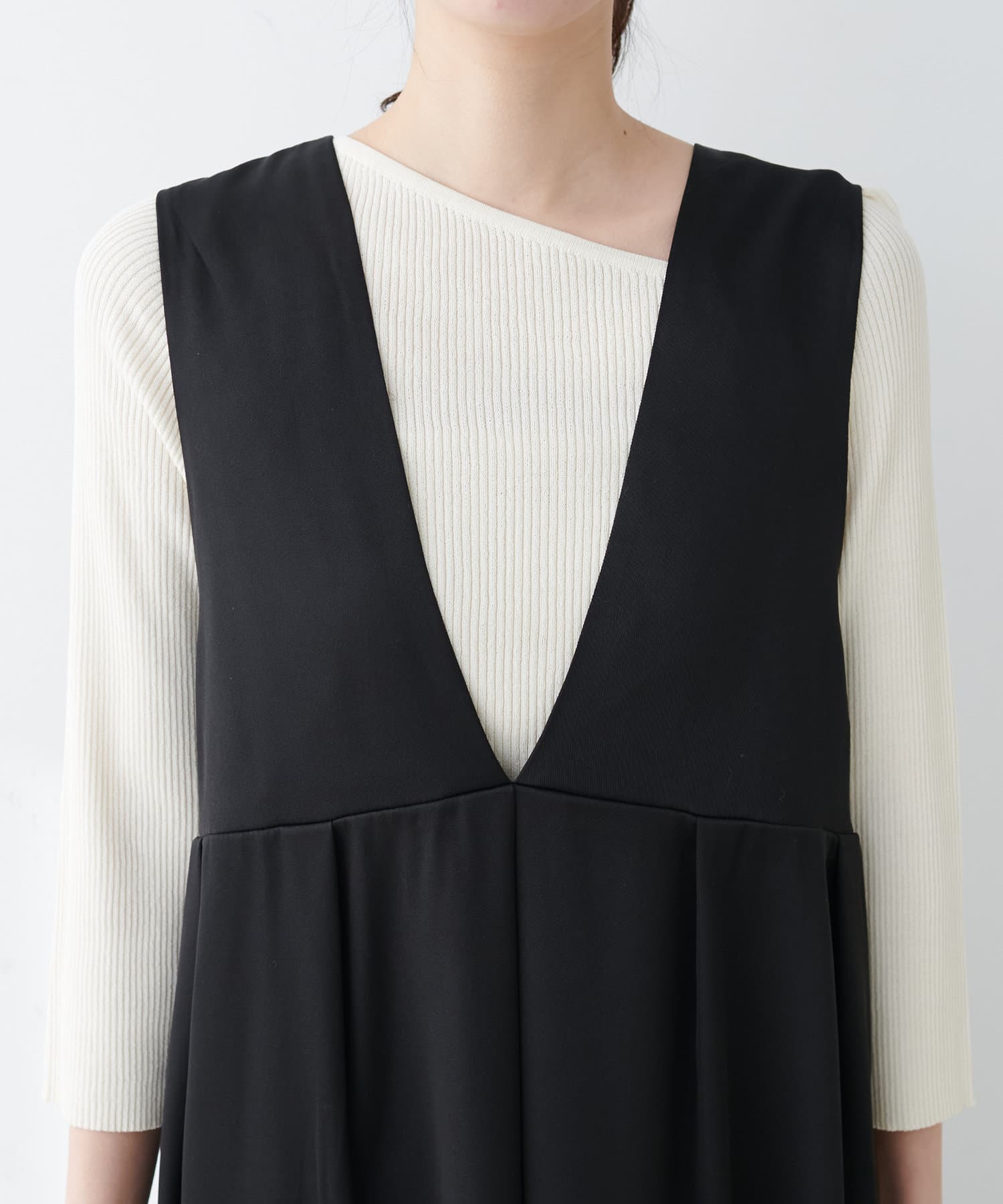 胸元の切り替えから裾にむかってひらっとしたラインで揺れ感がきれいなシルエットに。