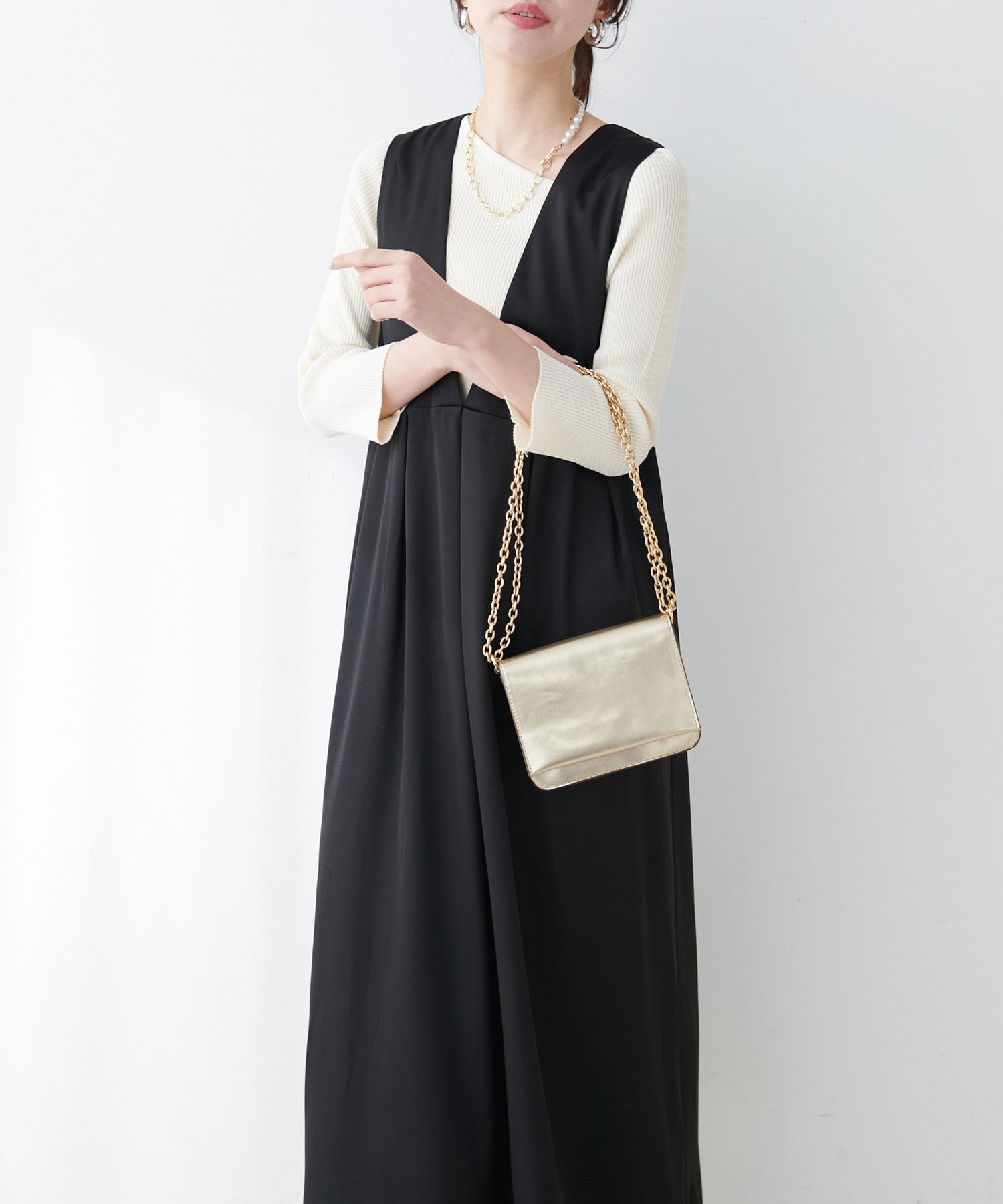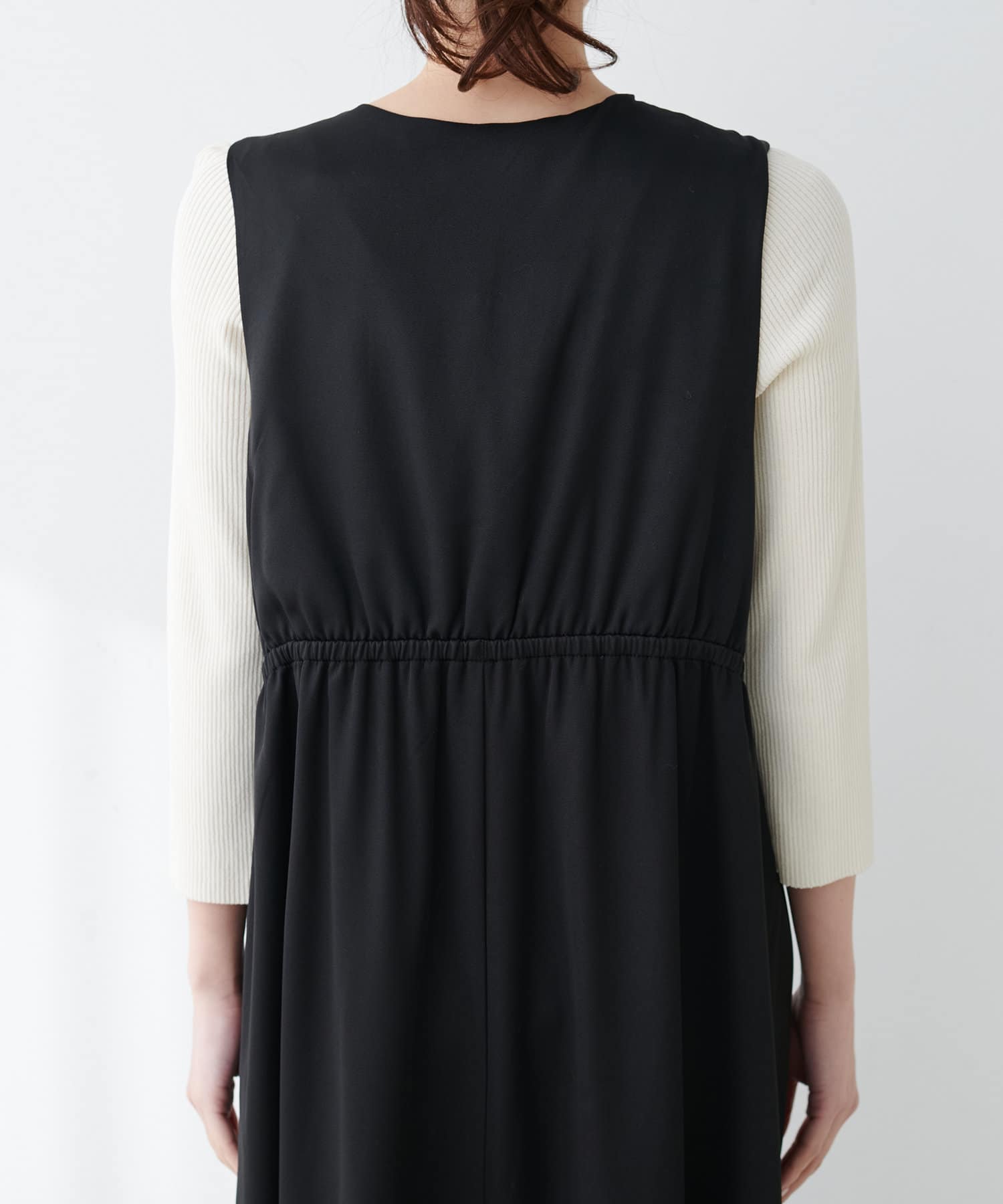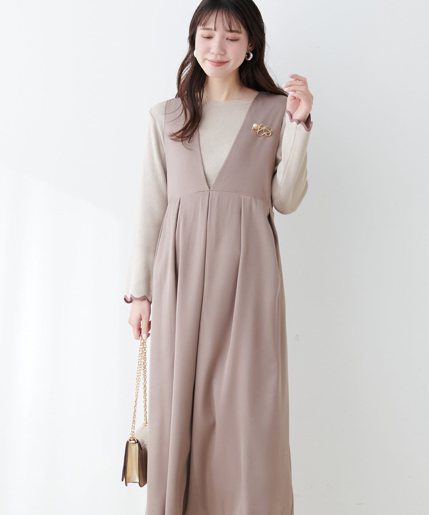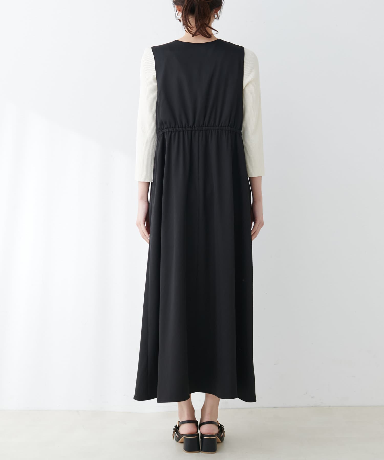 胸元の切り替えから裾にむかってひらっとしたラインで揺れ感がきれいなシルエットに。