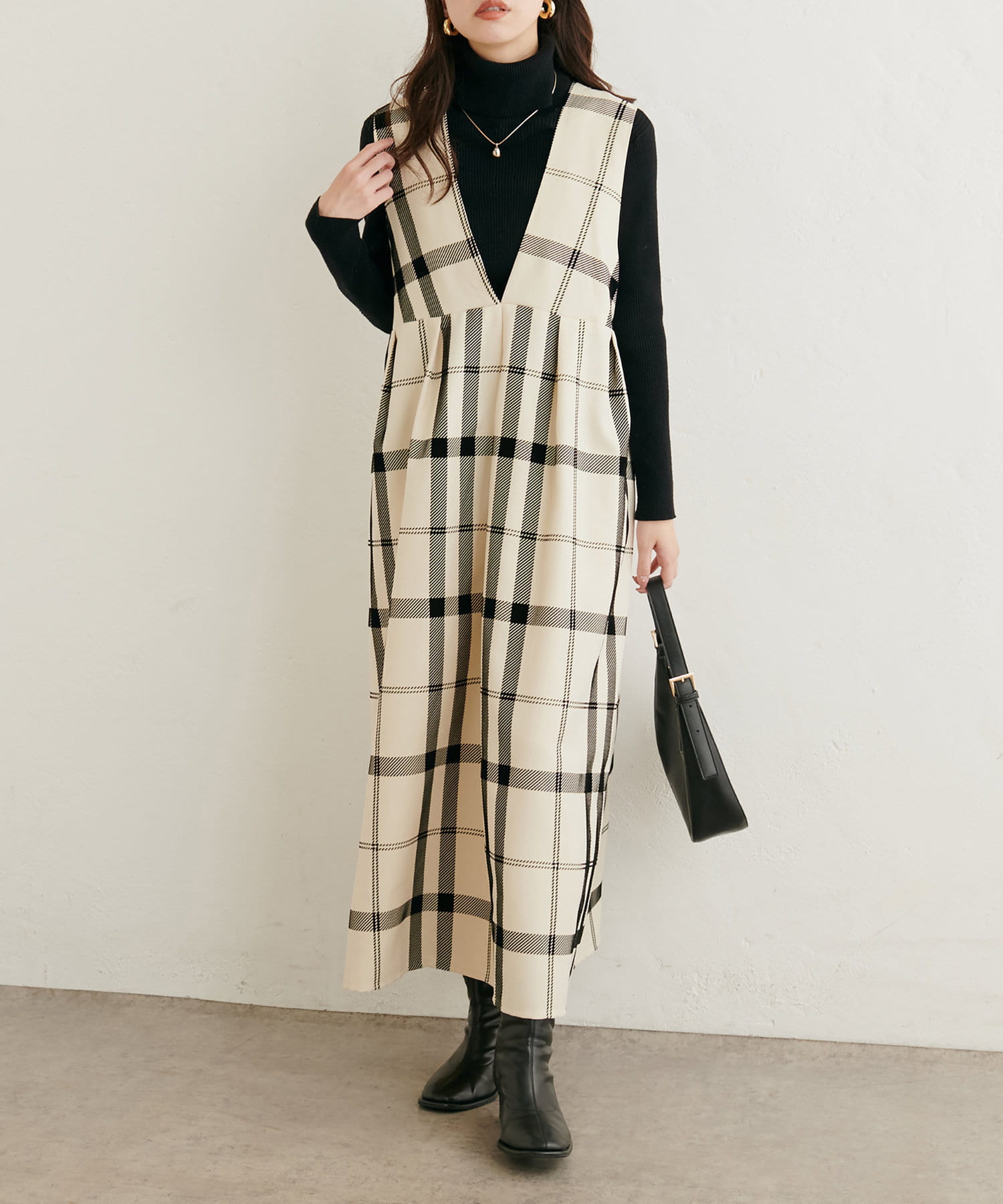 【WEB限定】ツイルクロスBIGチェックフロッキーワンピース