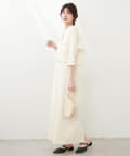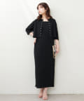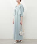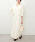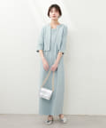 ワンピースはスクエアネックで顔周りをすっきりみせてくれ、足元は後ろにスリットが入っていて脚さばきもらくらく。