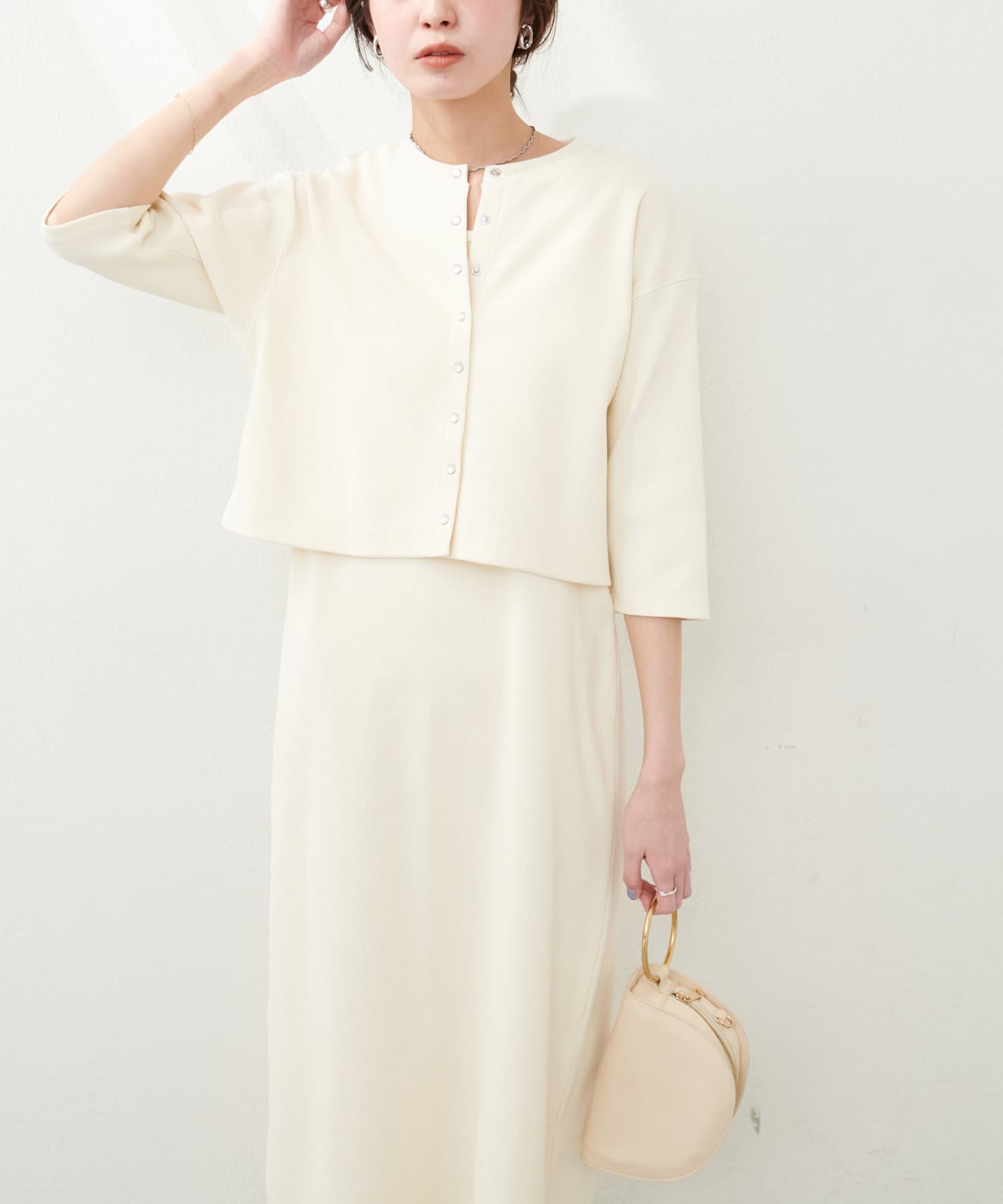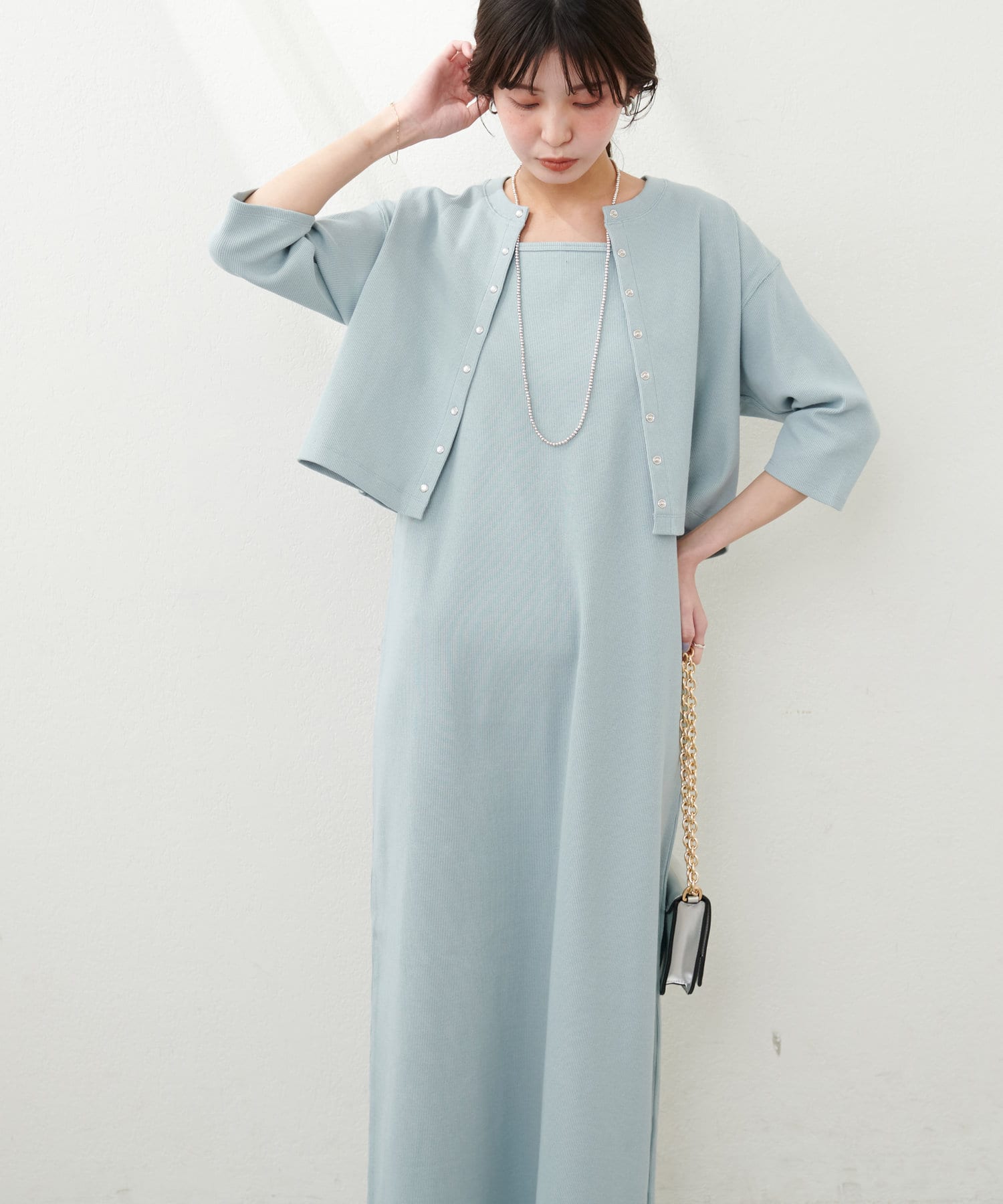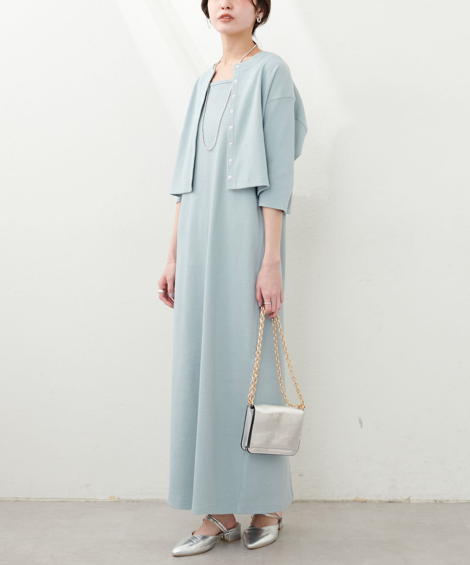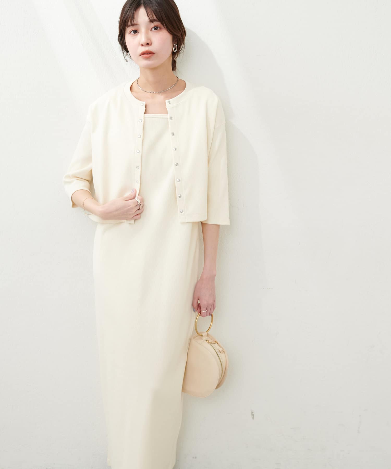 カーディガンとタンクトップワンピースがセットのワンピース。
