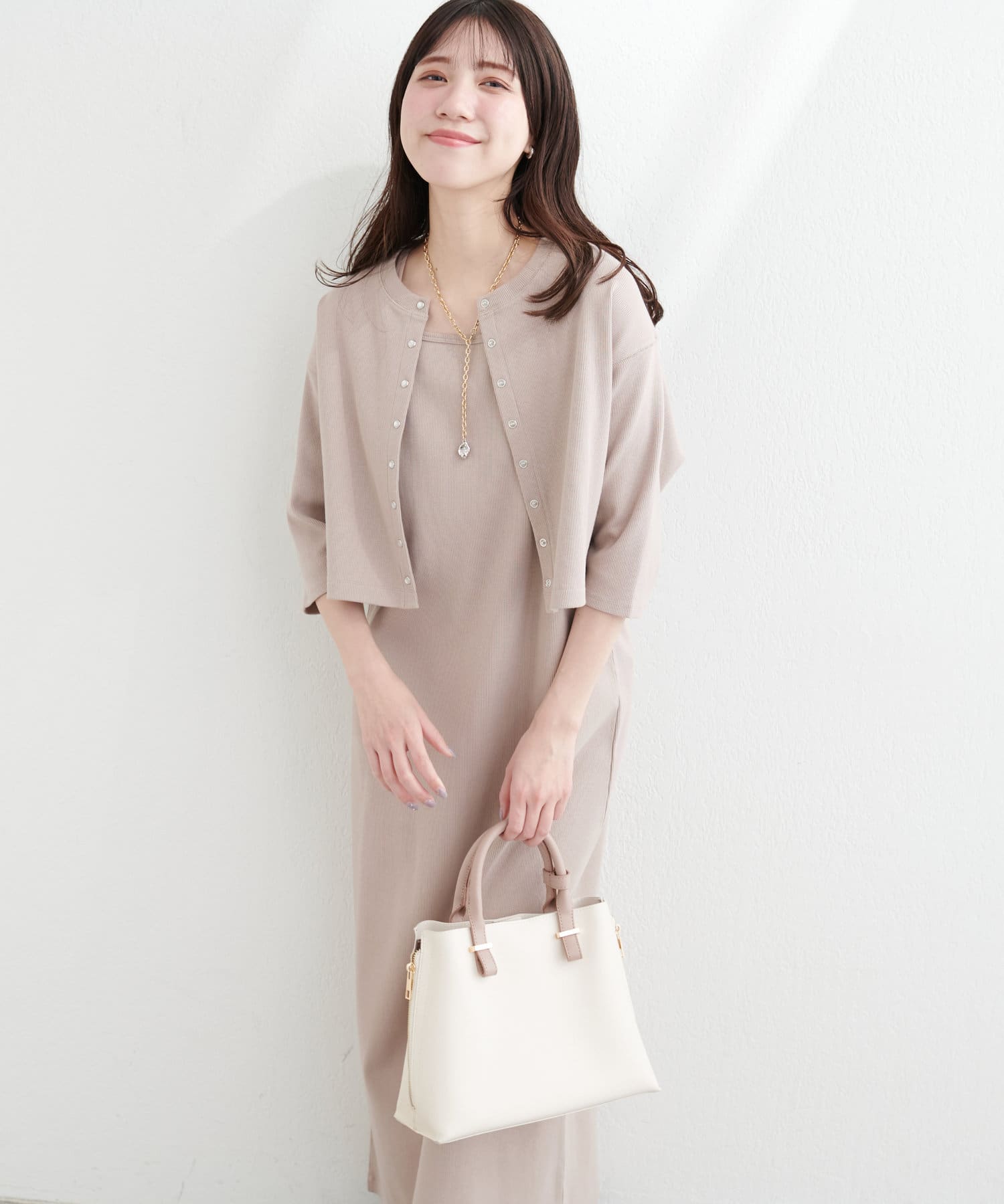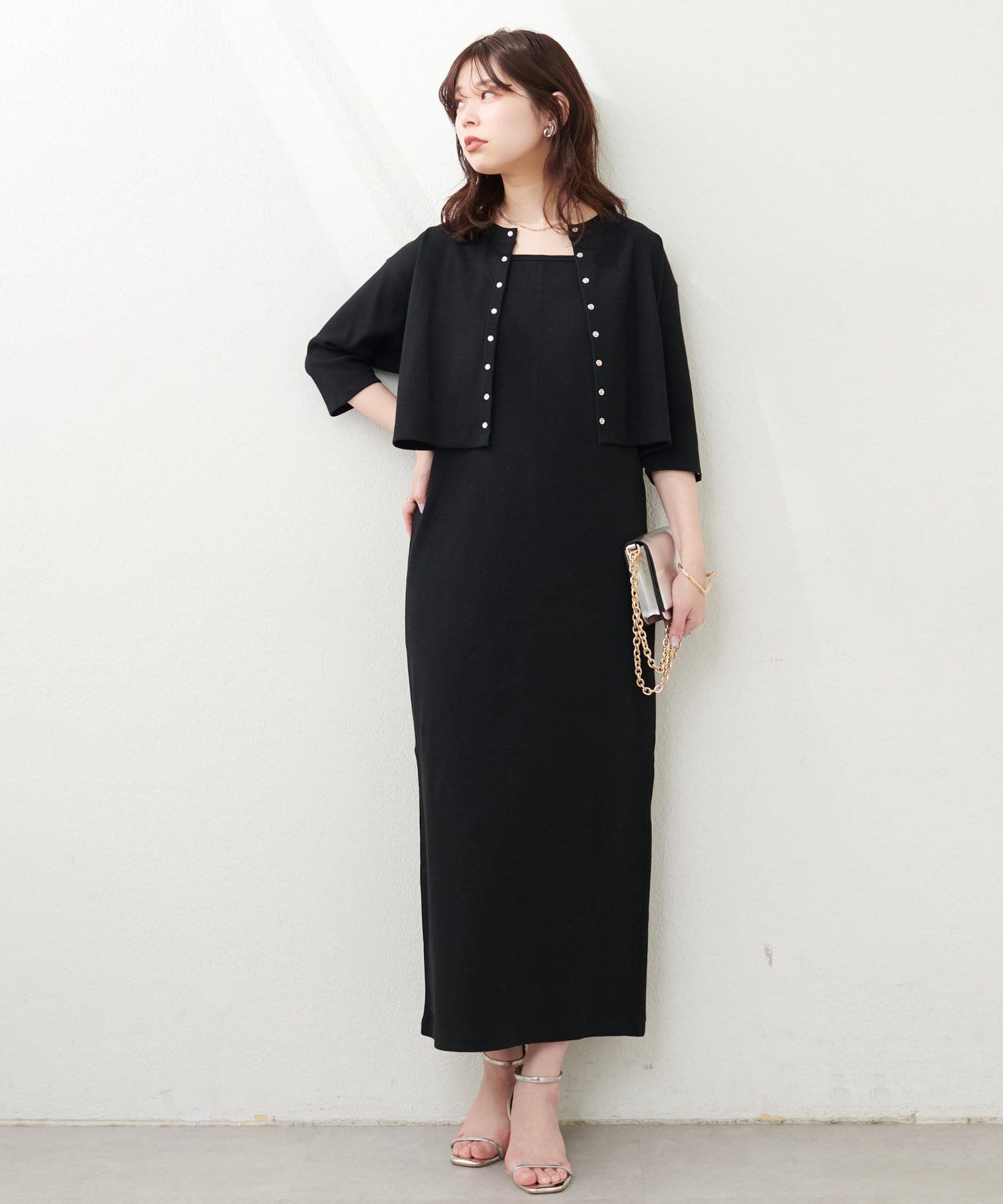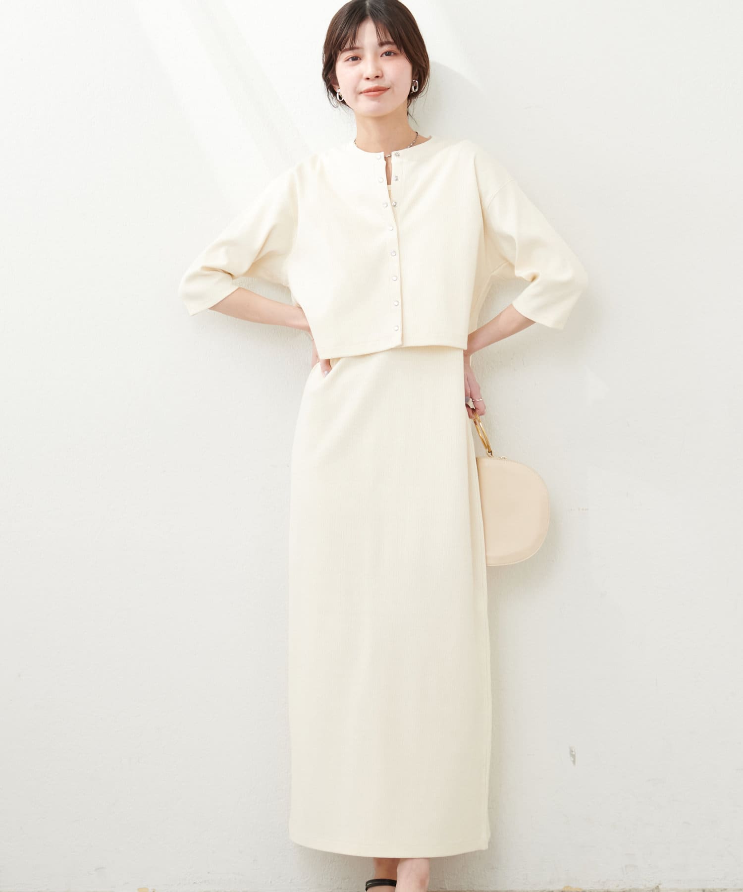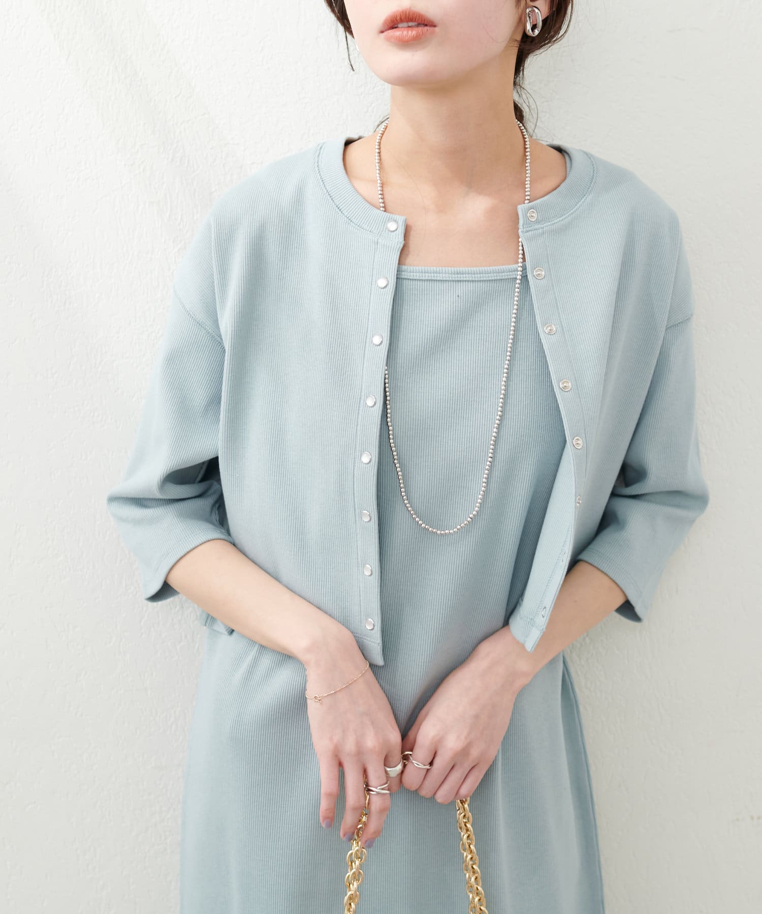 カーディガンとタンクトップワンピースがセットのワンピース。