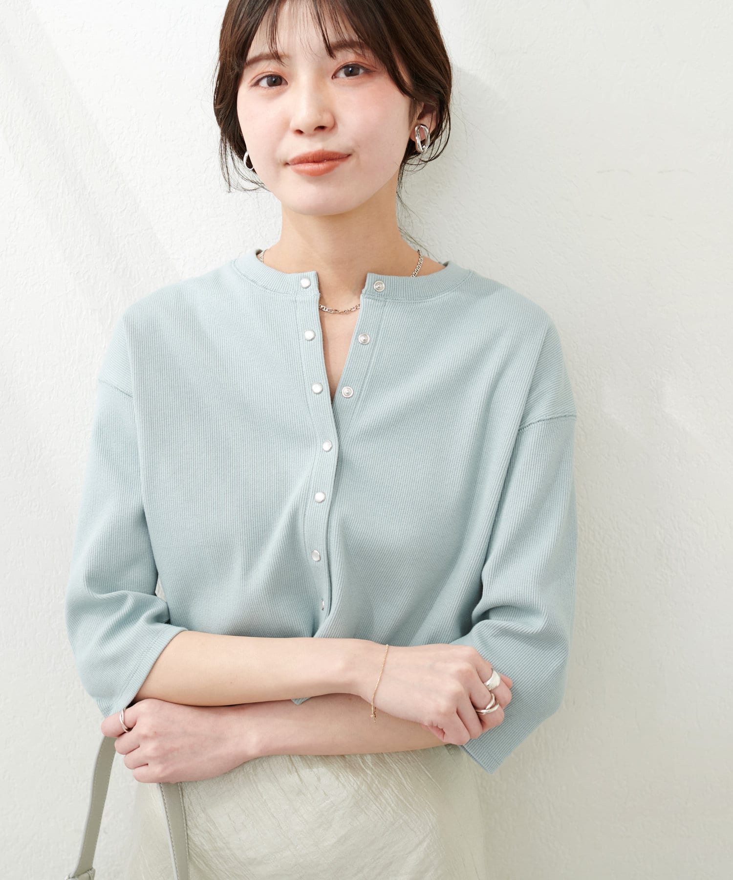 リブ素材で柔らかく、肌なじみのいい素材感。