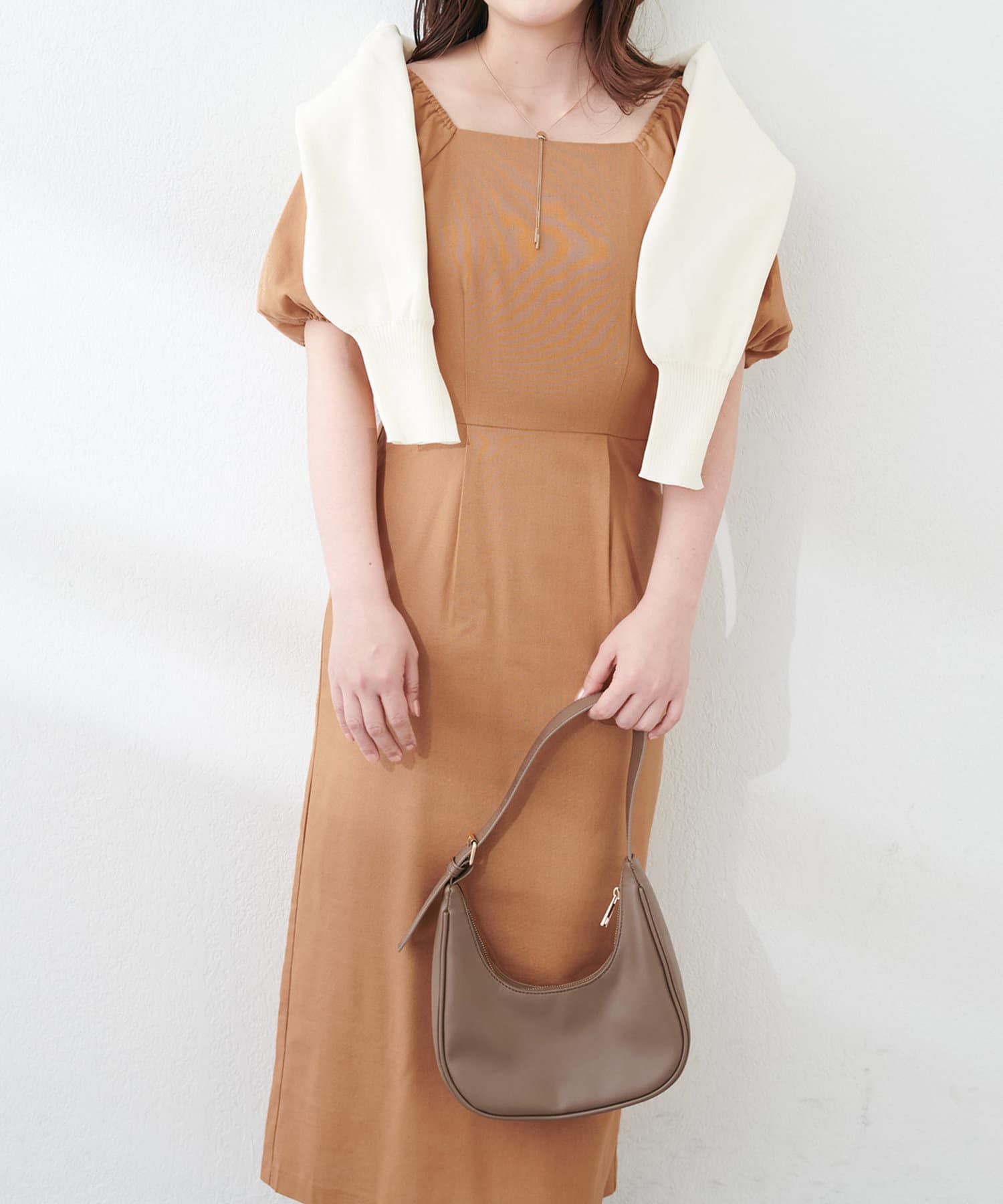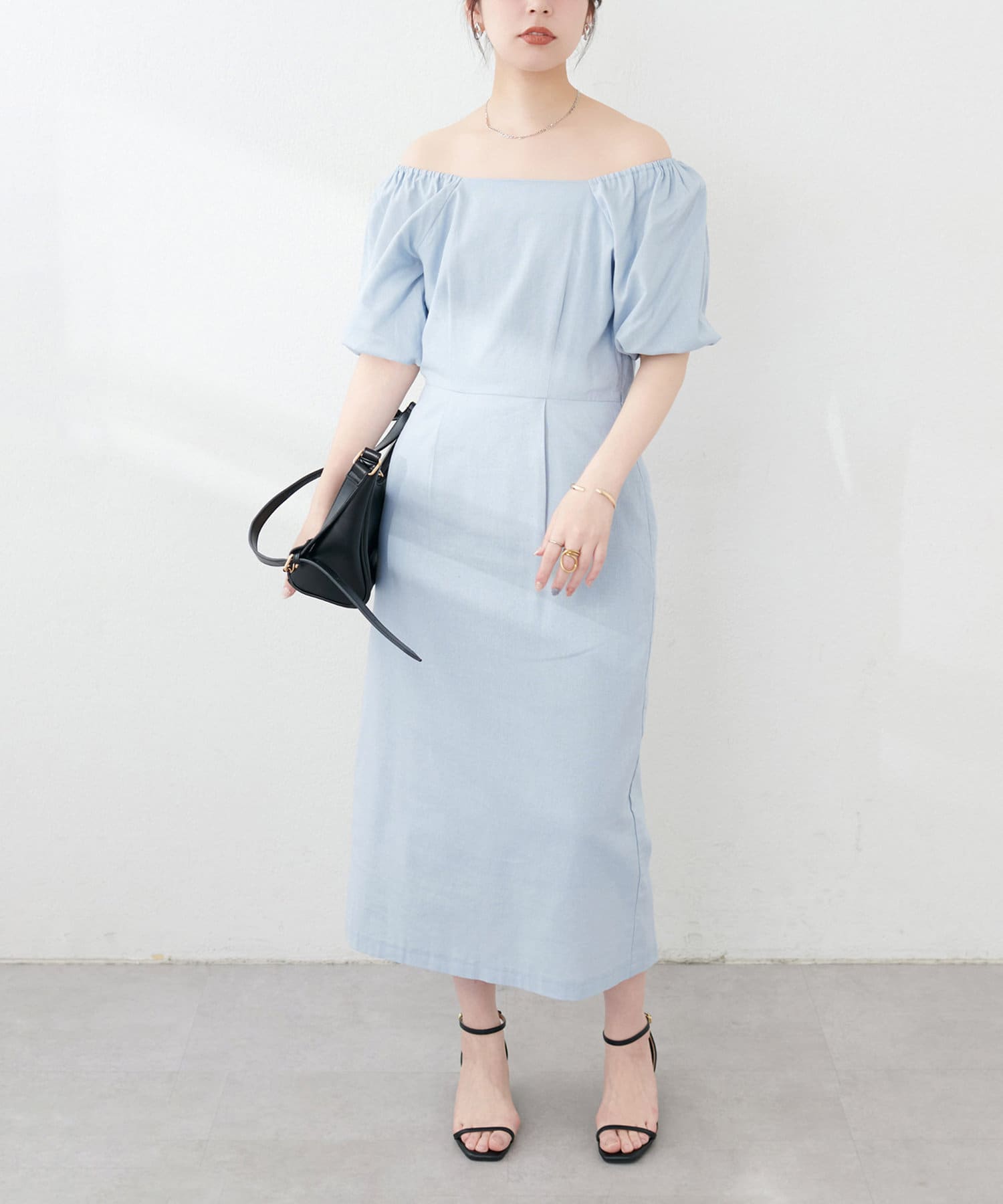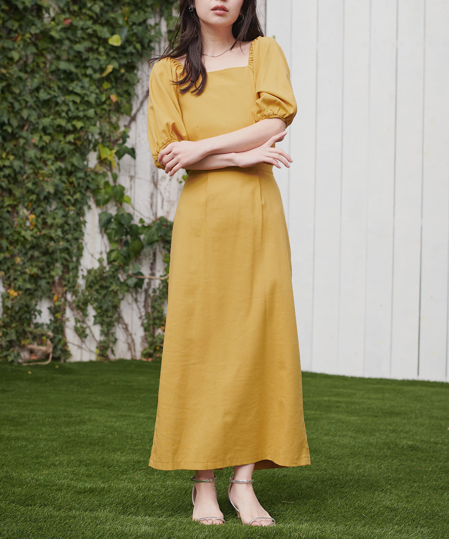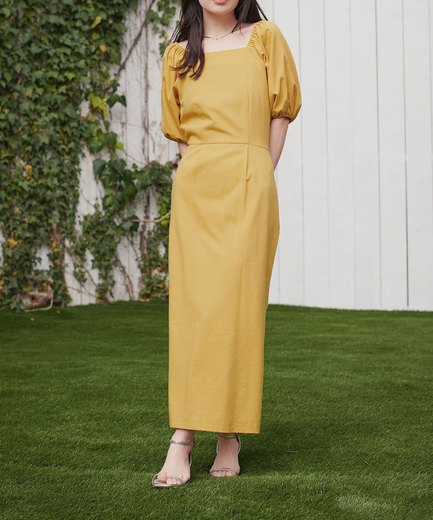 内側から始まるボリューム袖は対比で肘下を細く見せてくれたり、スクエアネックで小顔効果も…◎
