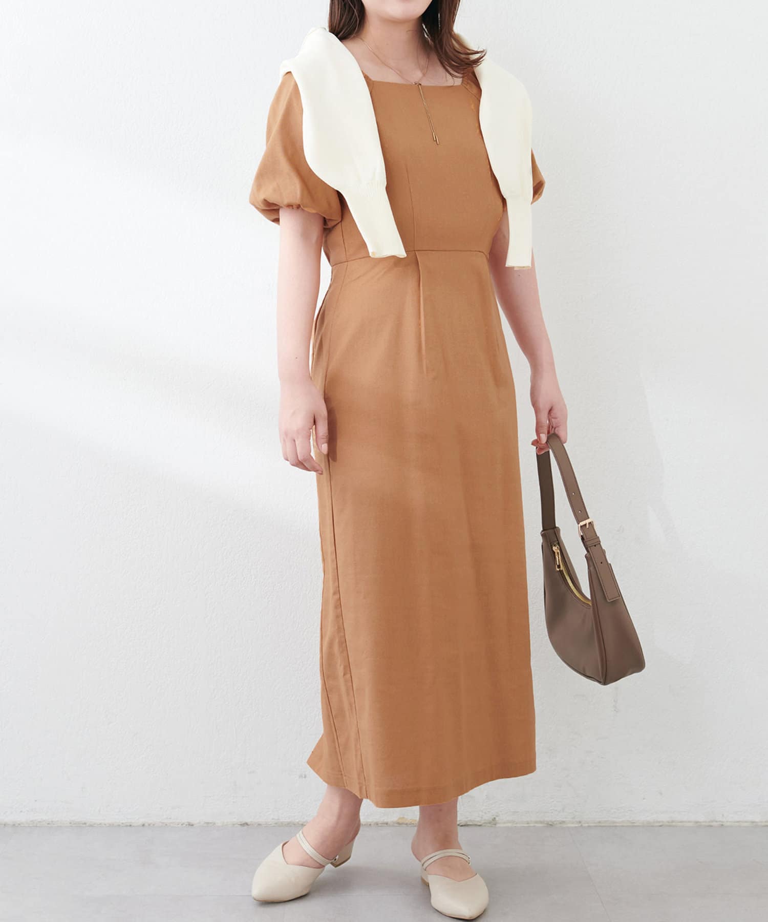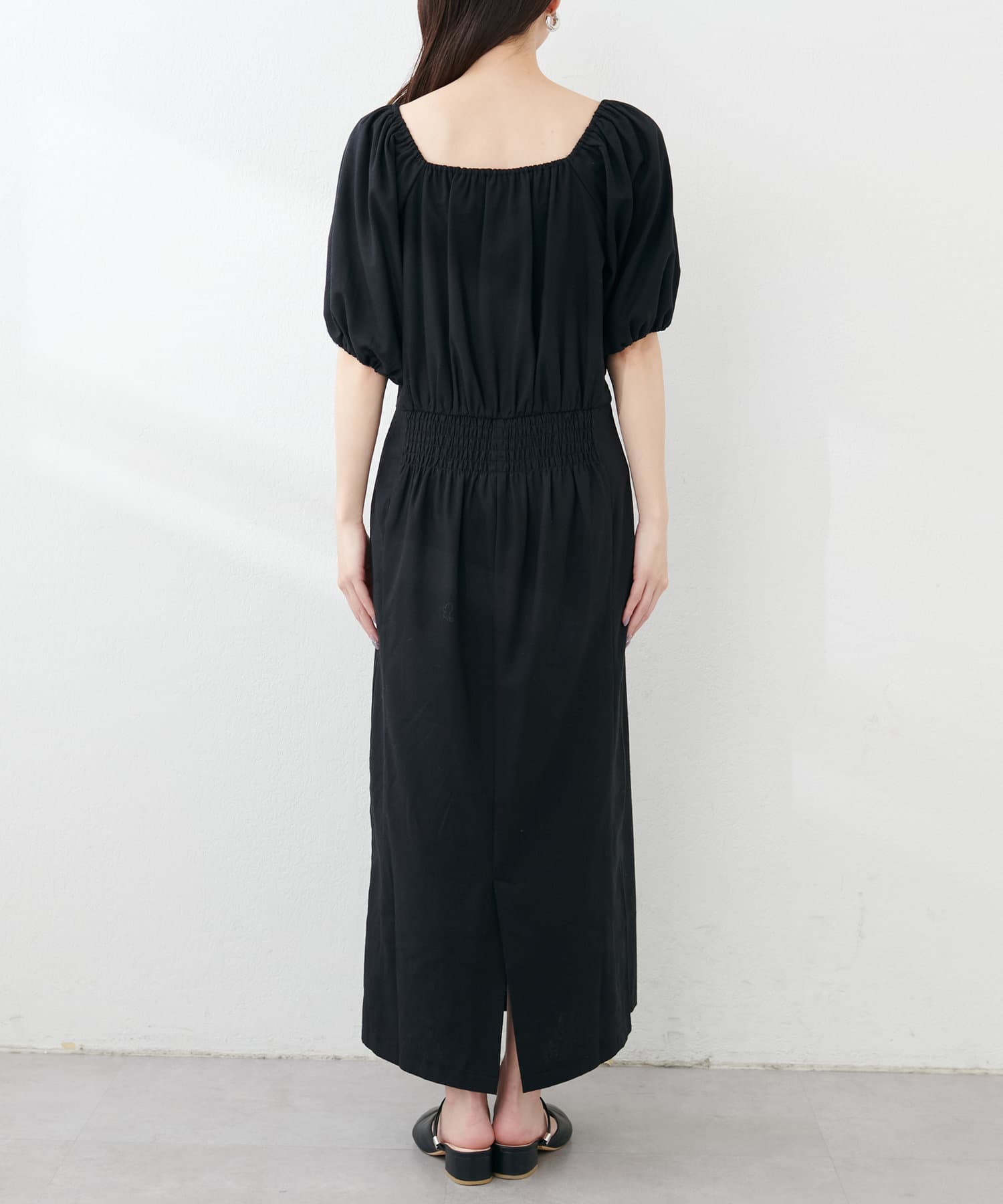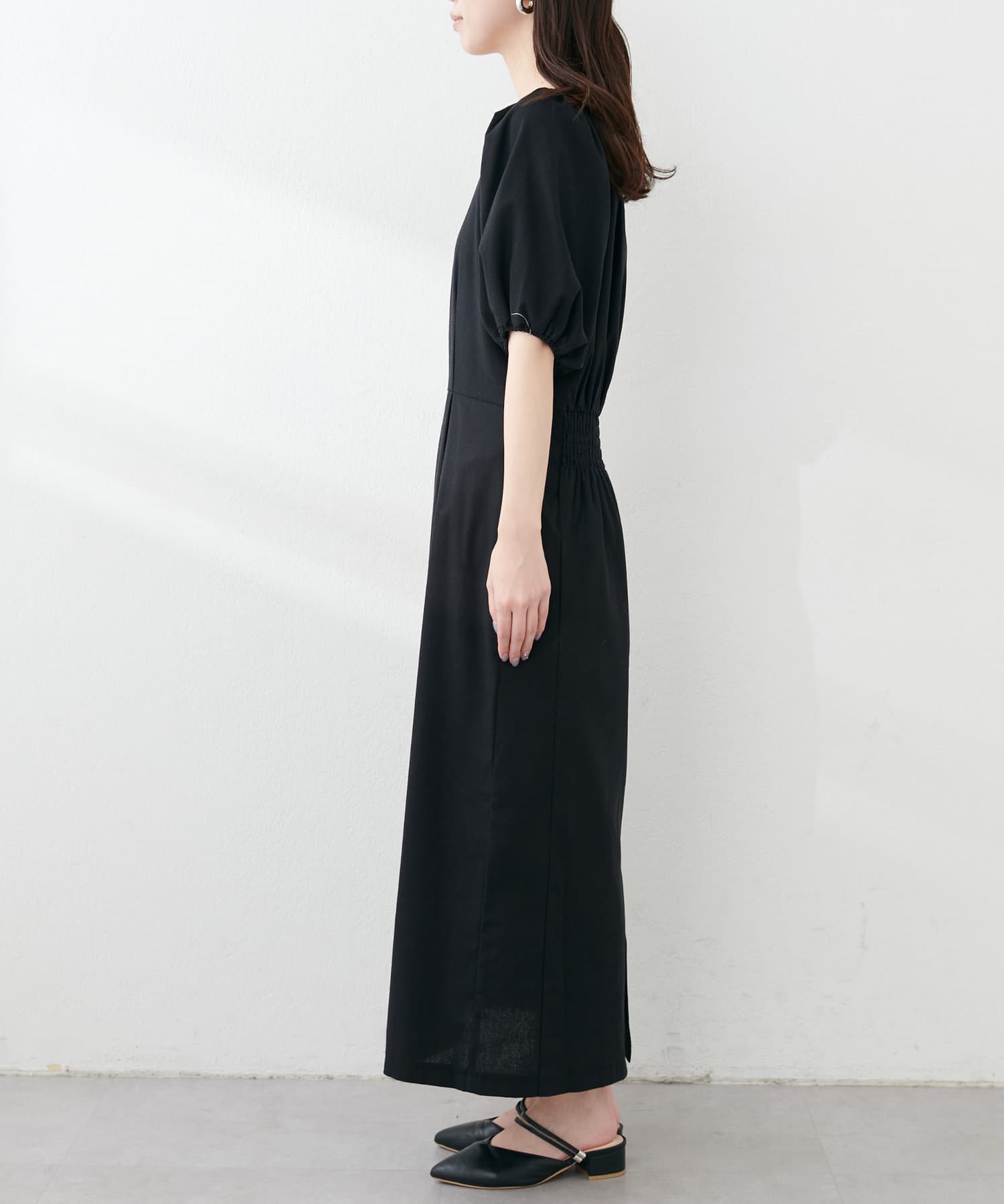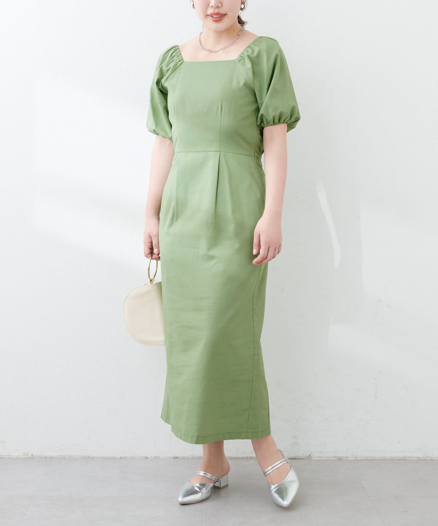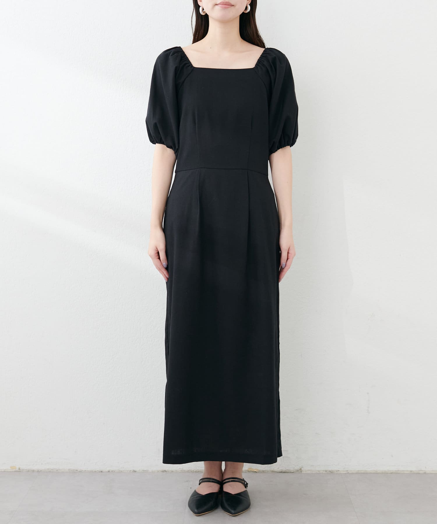 【natural couture】綿麻パフ袖ワンピース