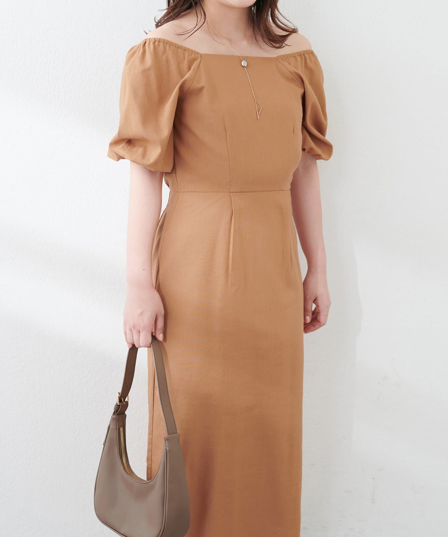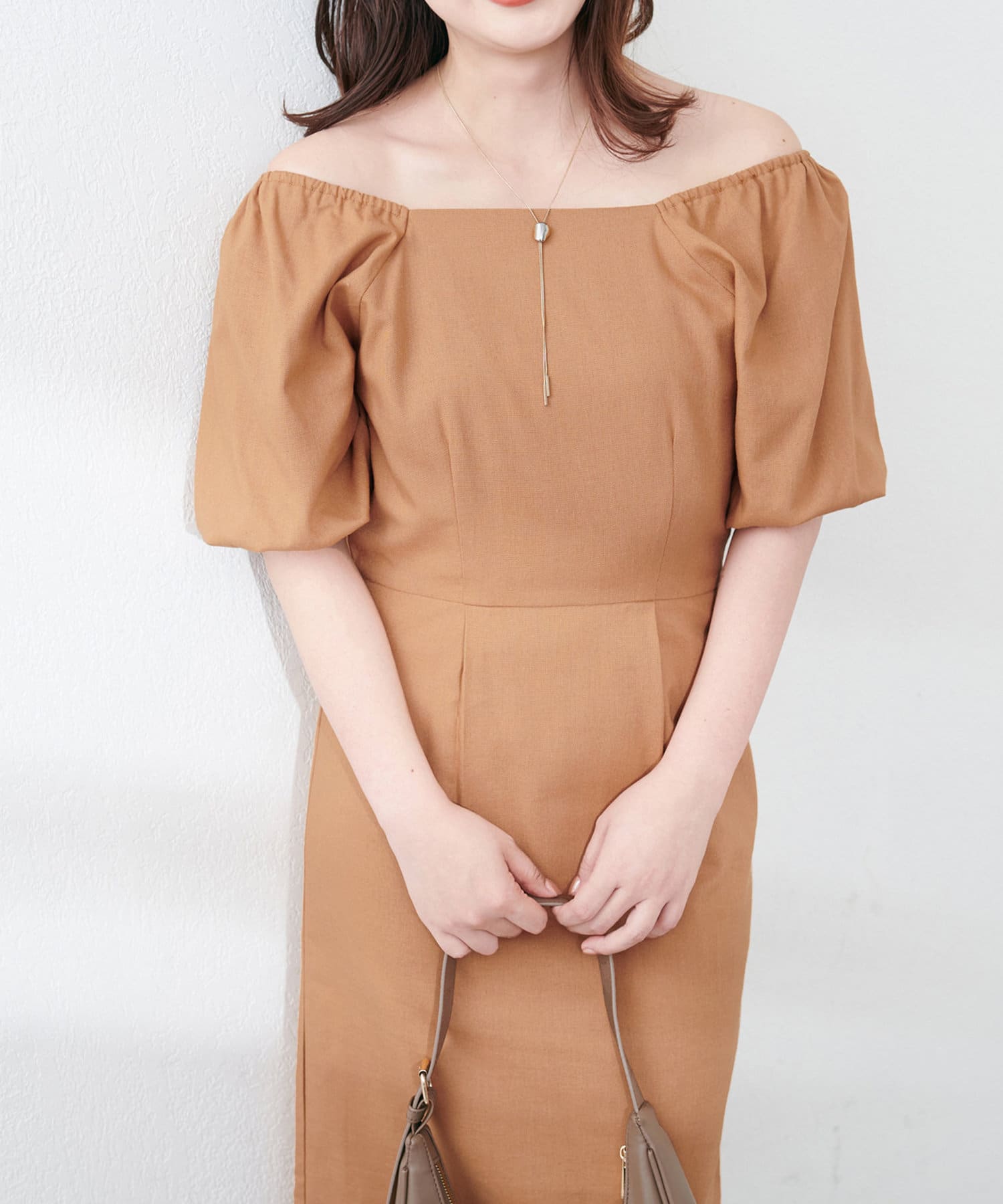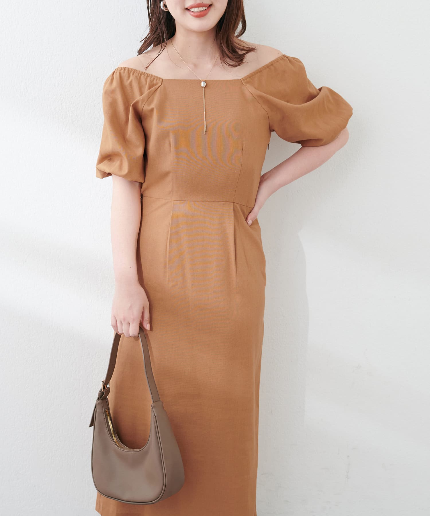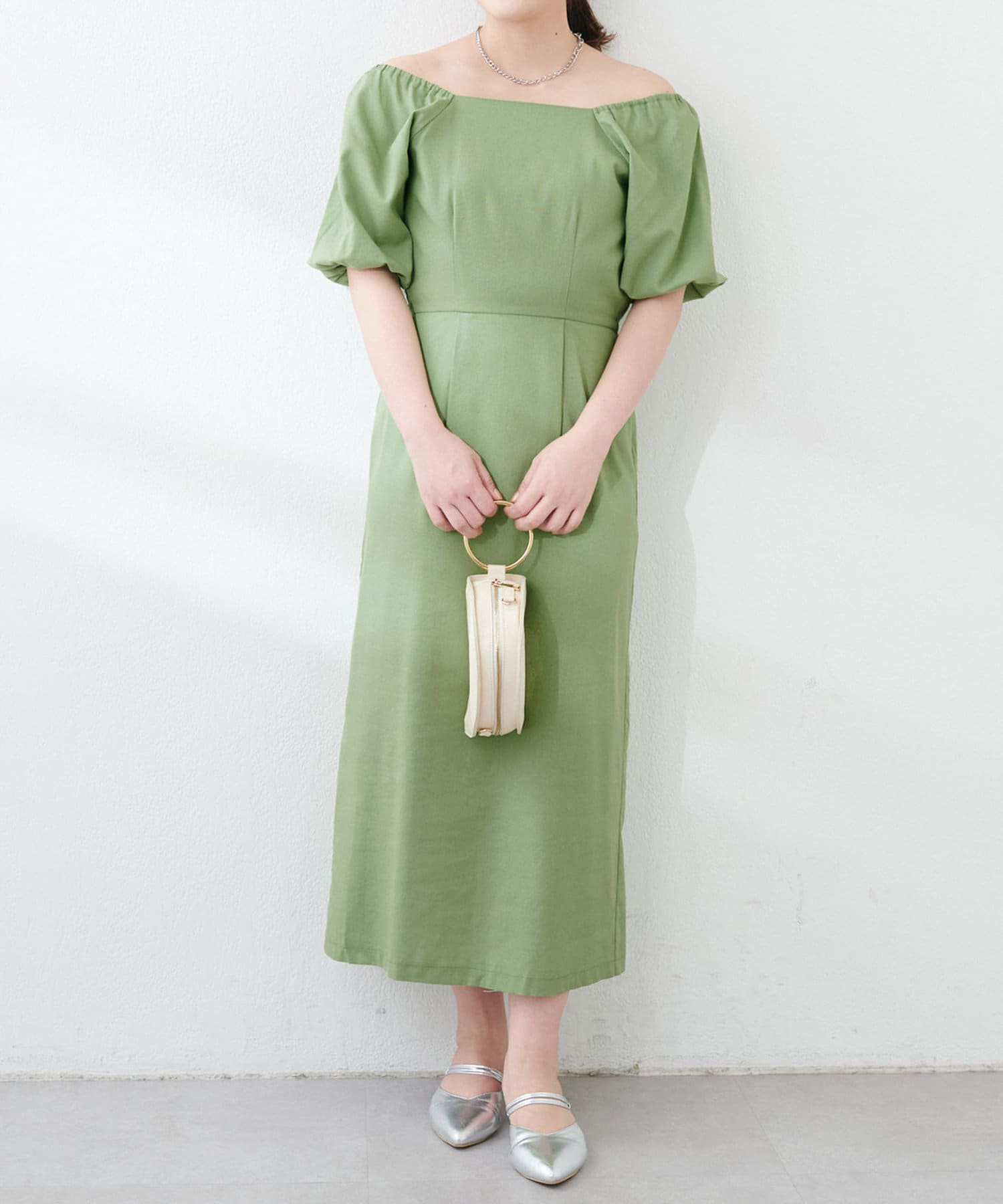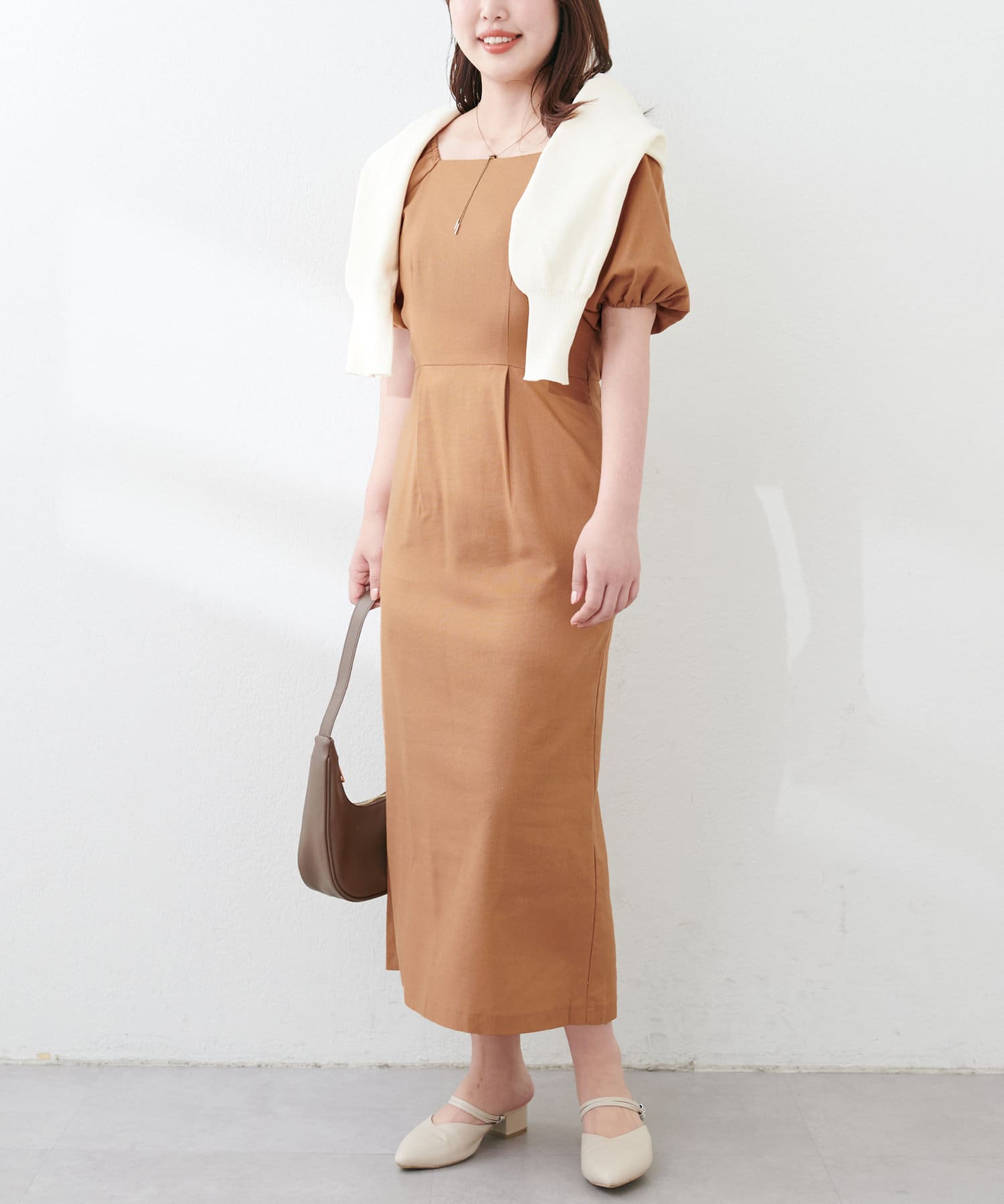 【natural couture】綿麻パフ袖ワンピース