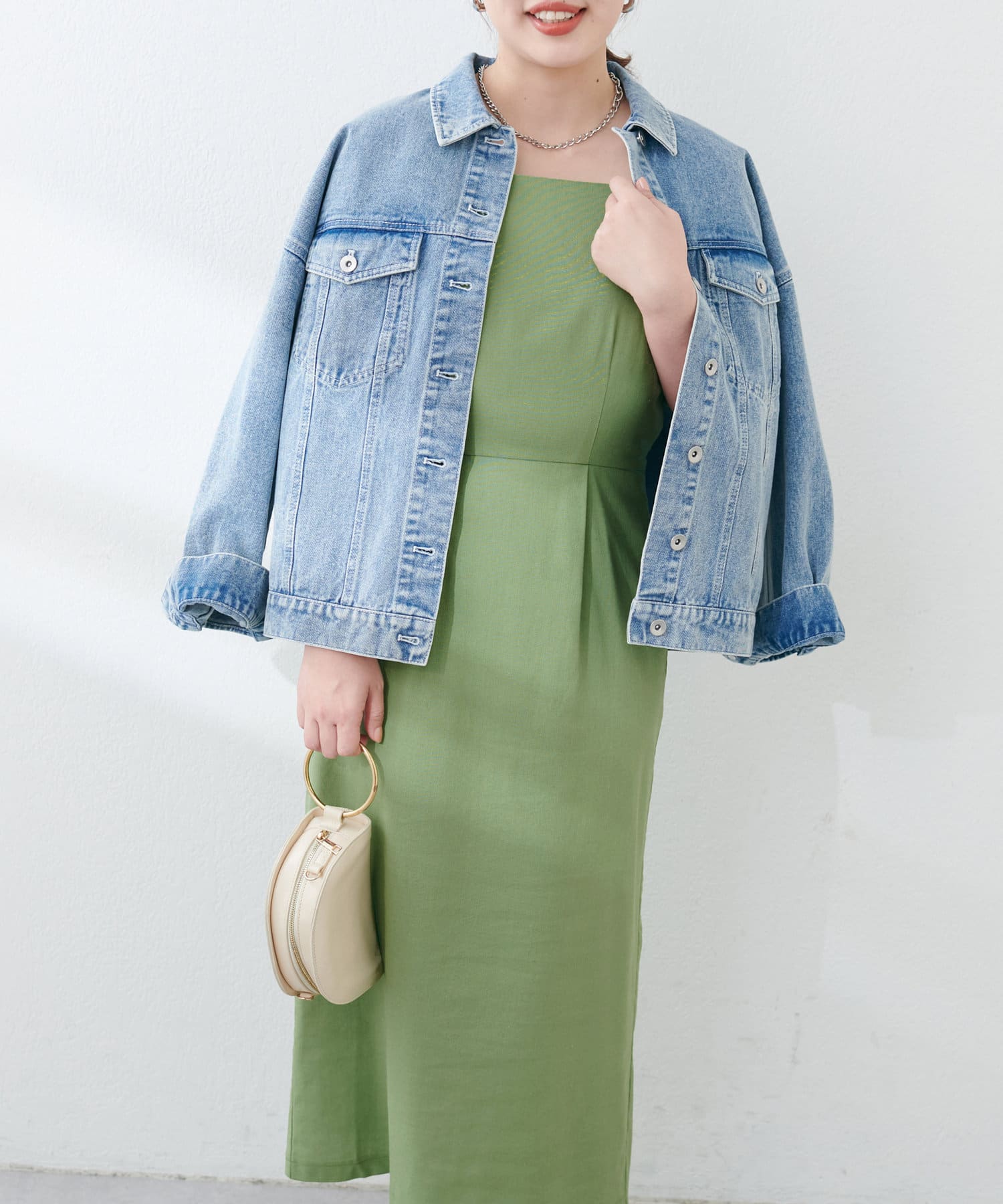綿麻素材にすることで、体のラインを拾いにくくバストラインやお腹のお肉も気にならない形になっております。