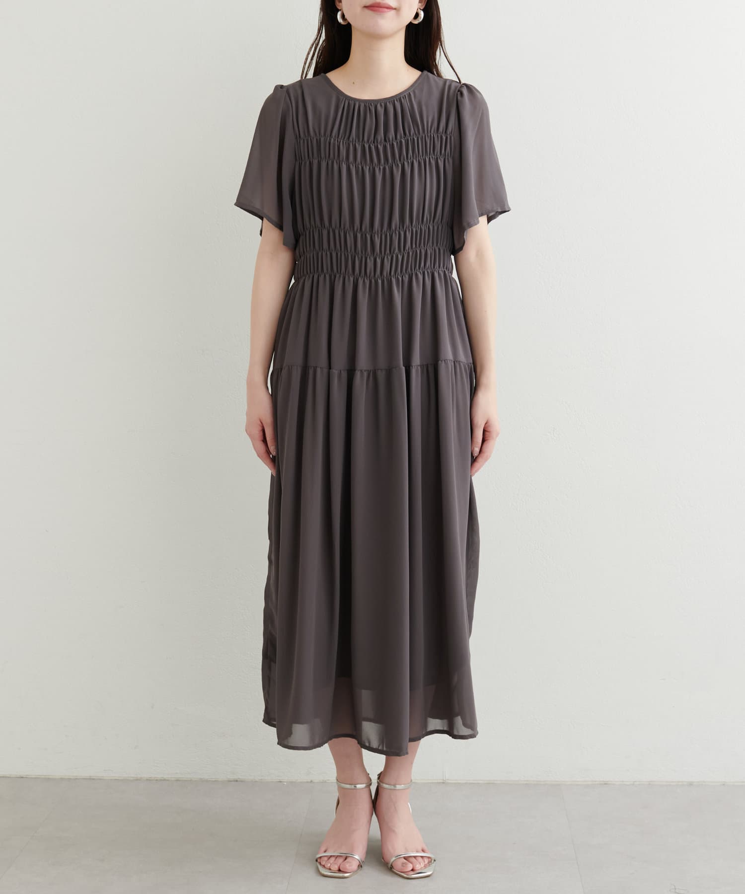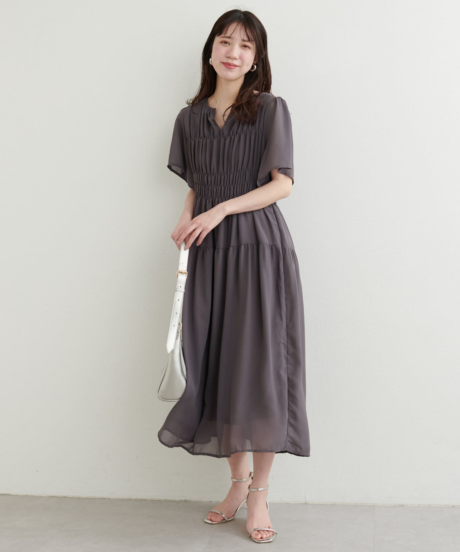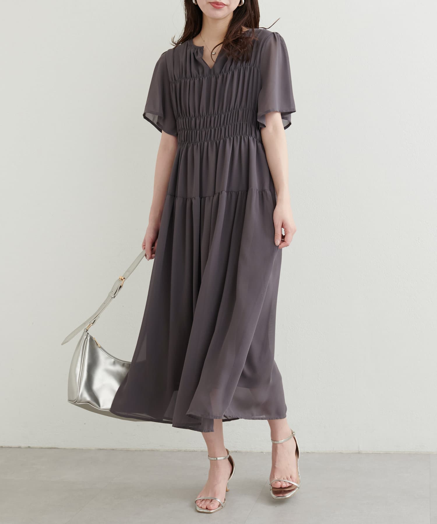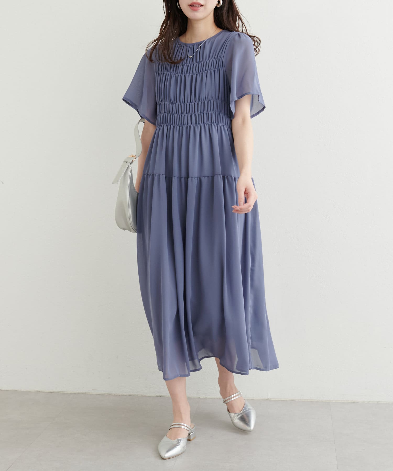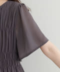 見頃部分にたっぷりシャーリングの入ったワンピース。