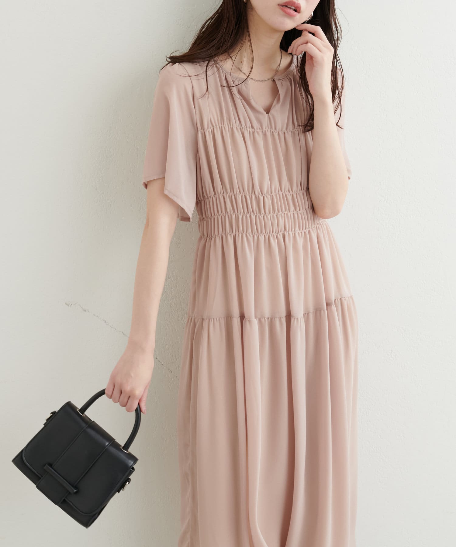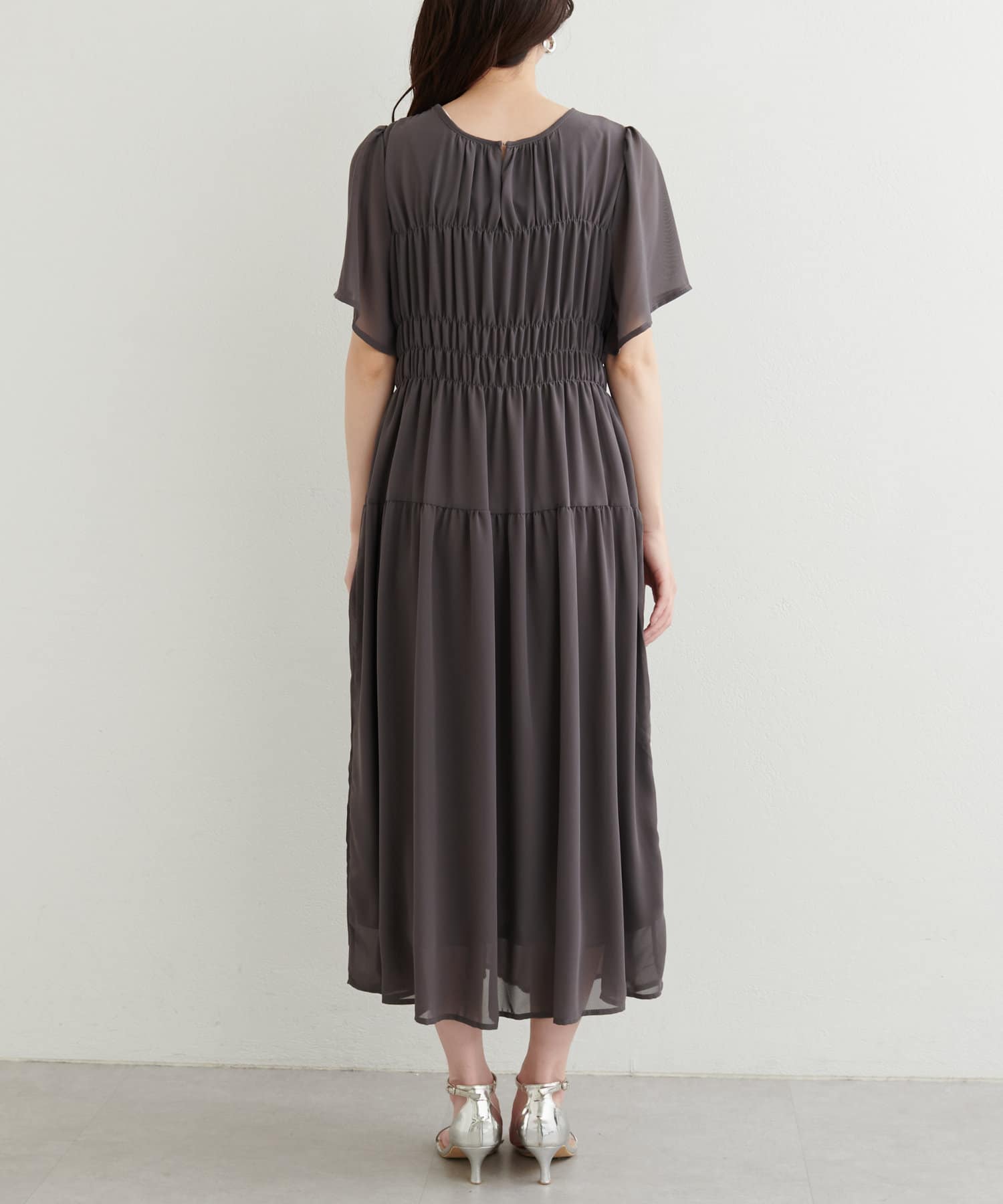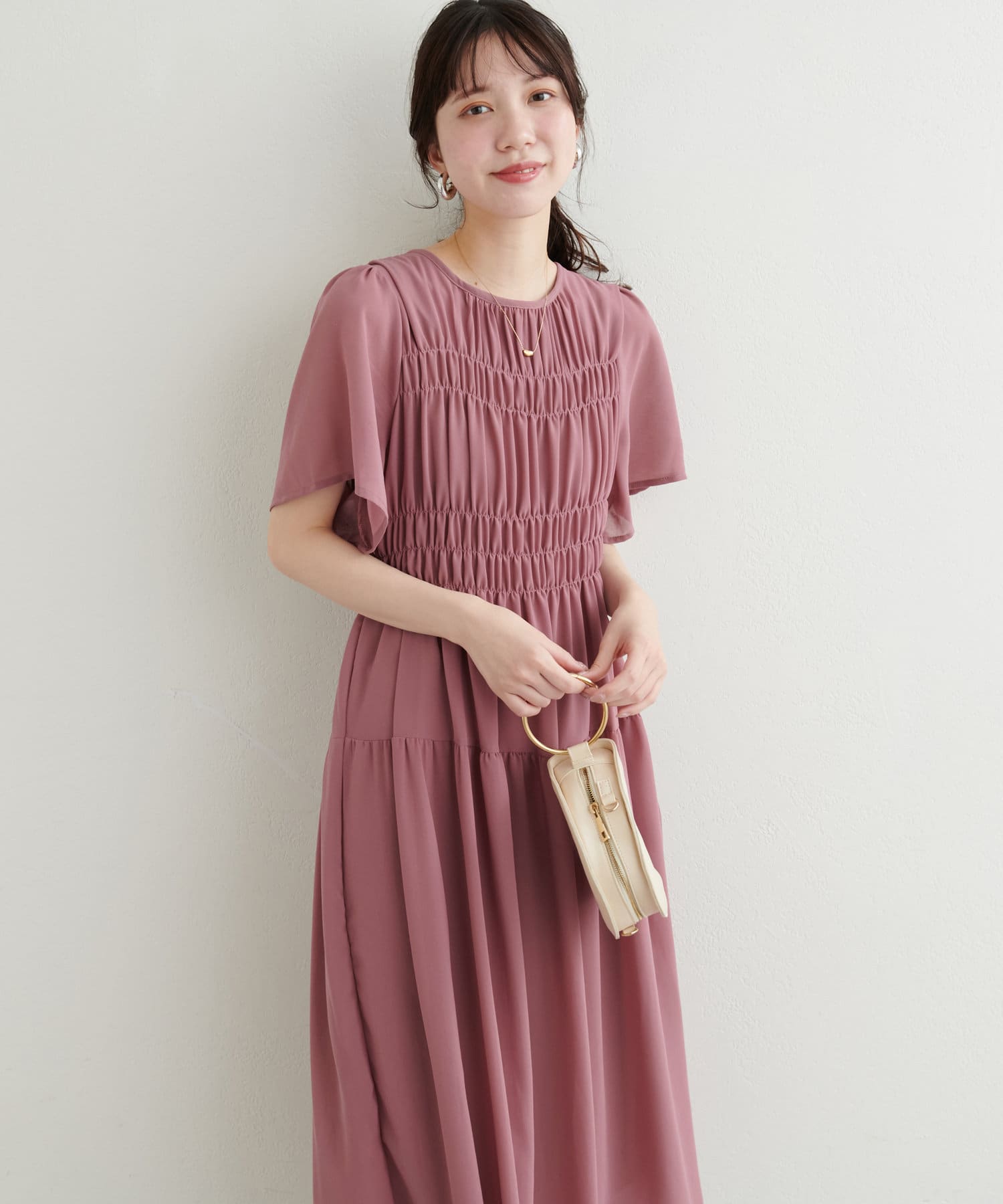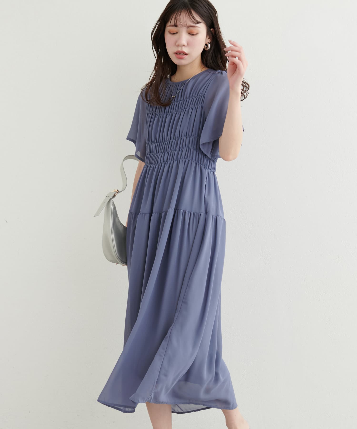 見頃部分にたっぷりシャーリングの入ったワンピース。