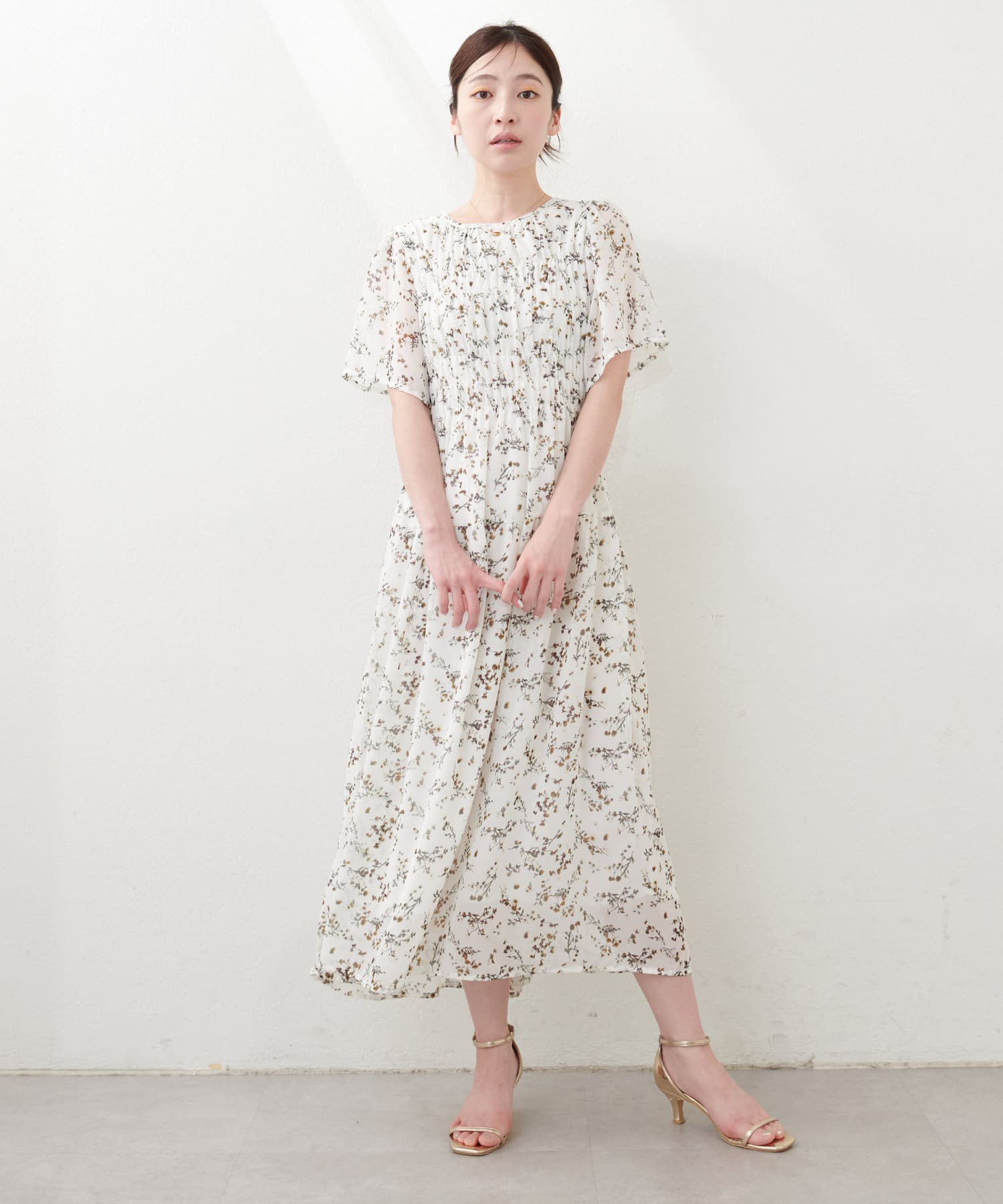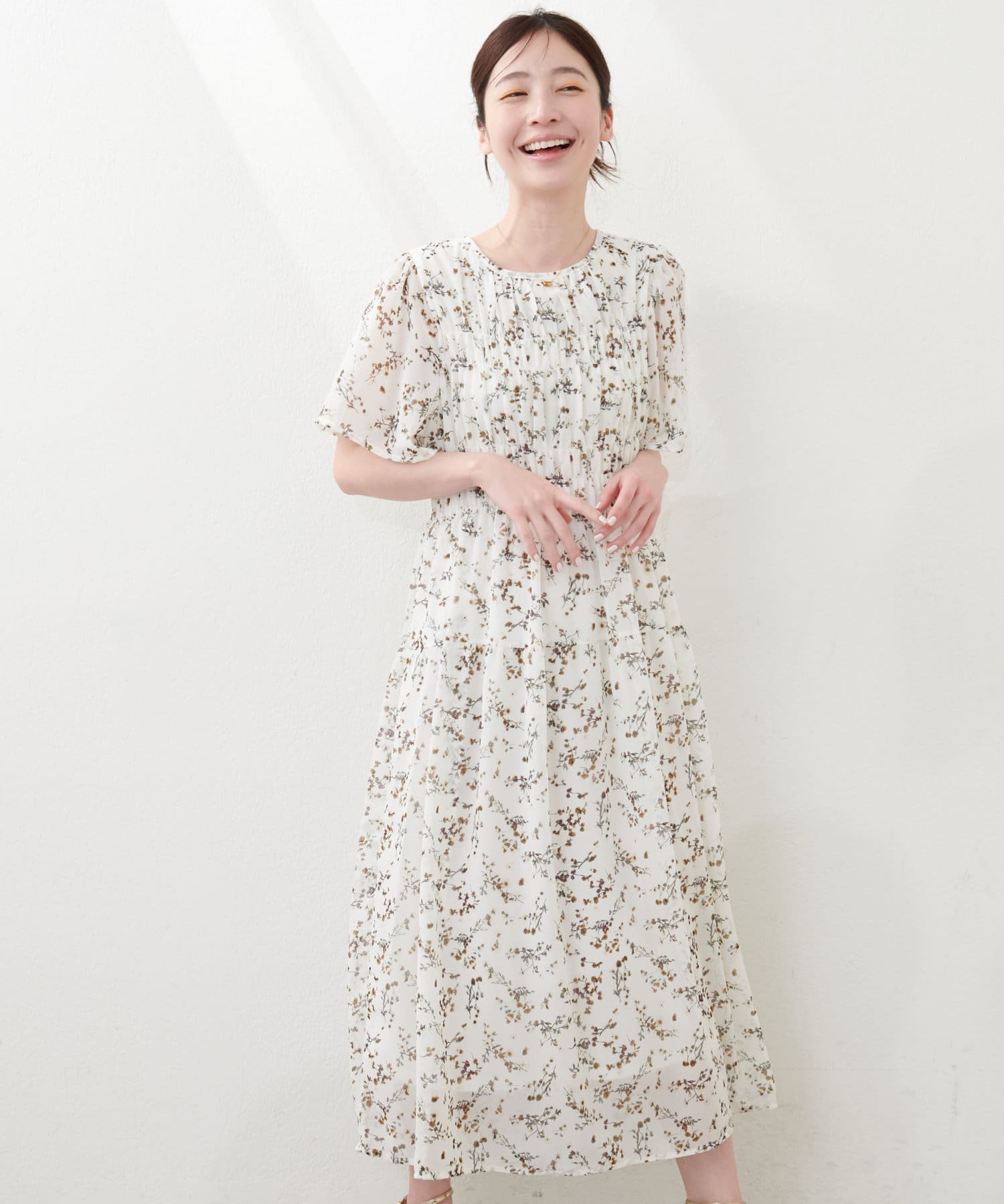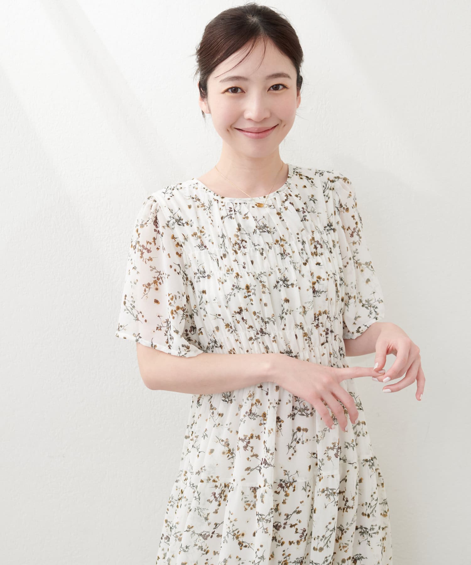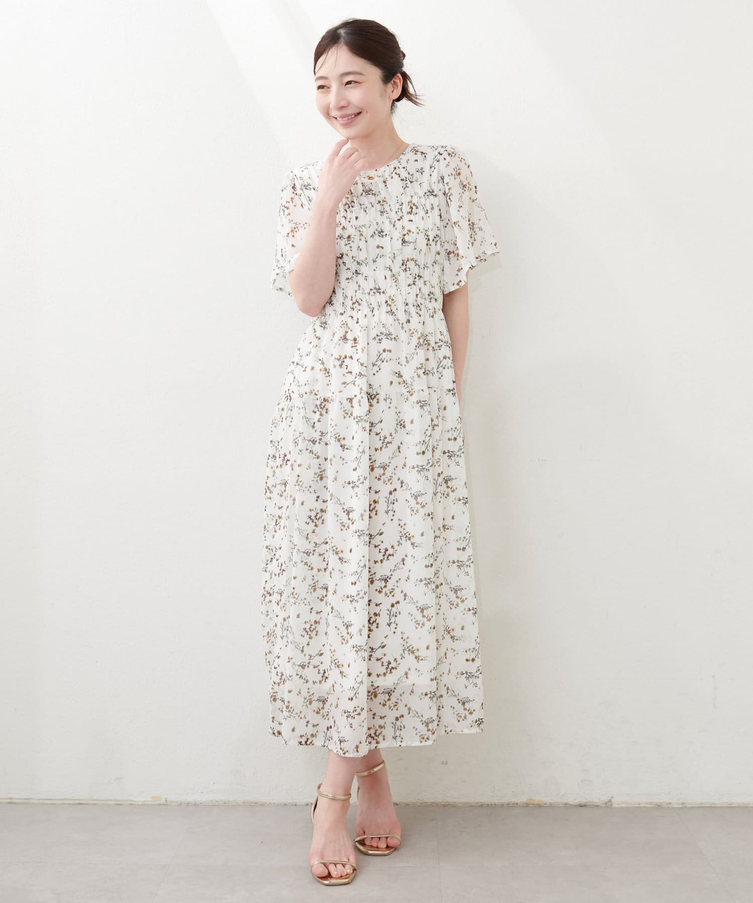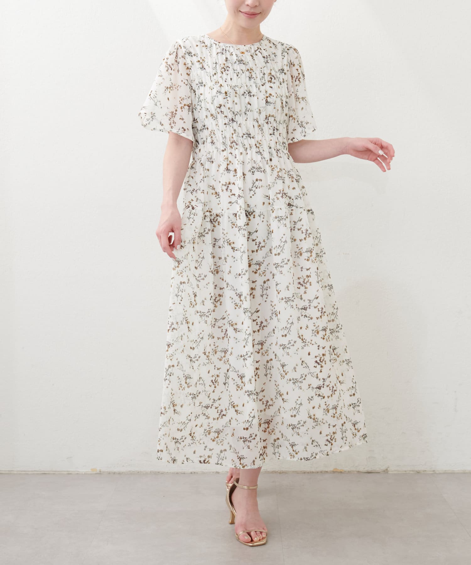 見頃部分にたっぷりシャーリングの入ったワンピース。