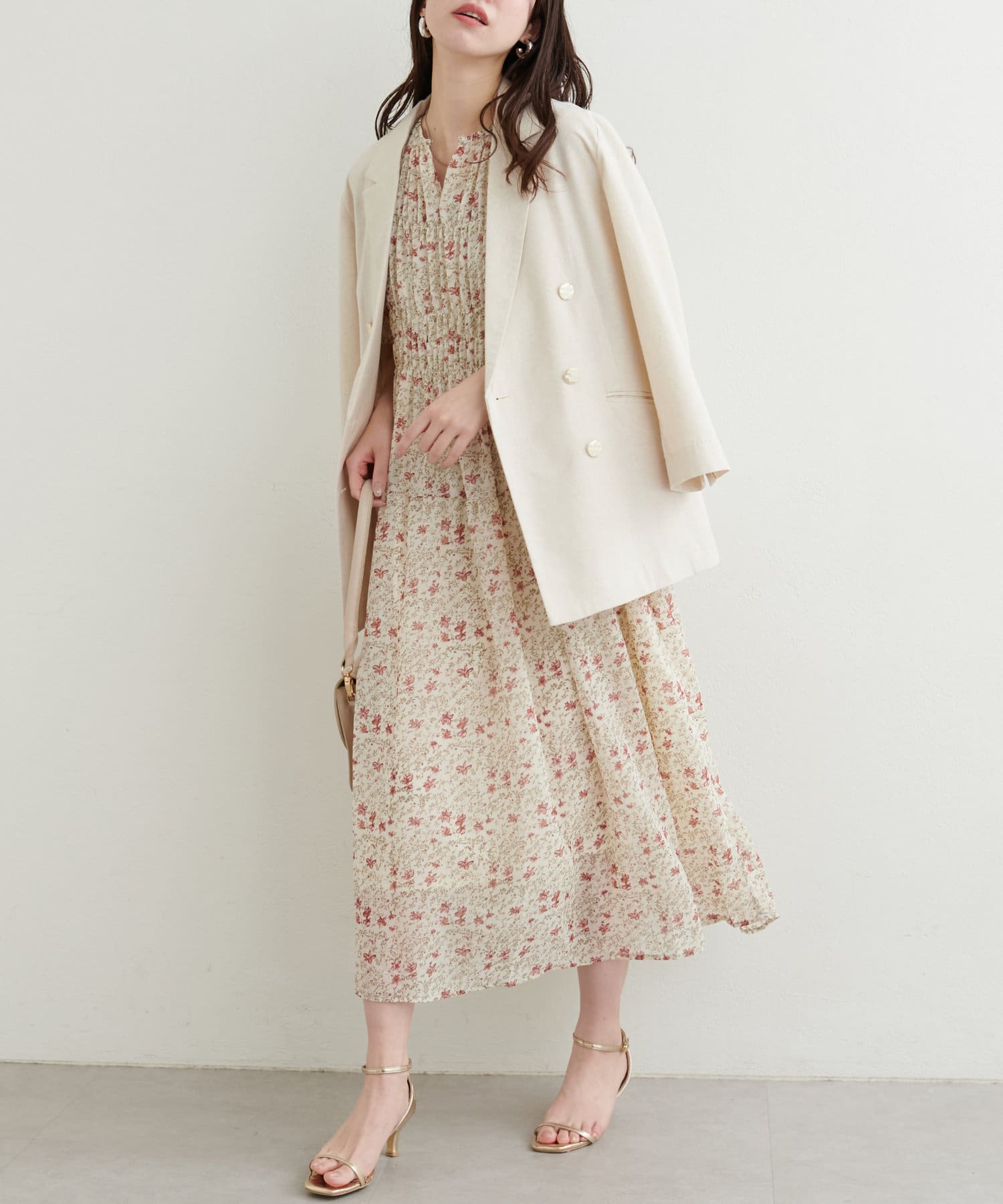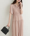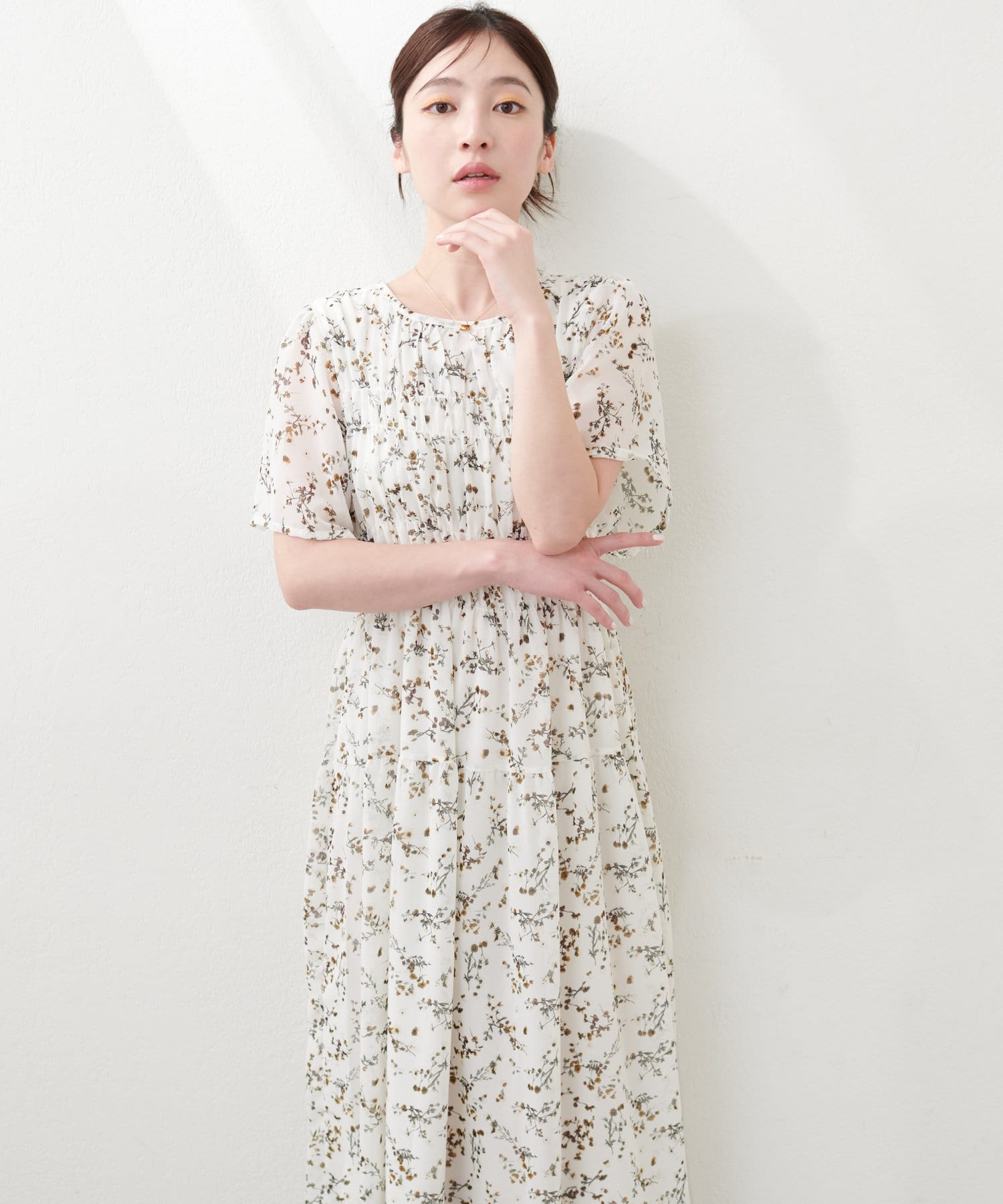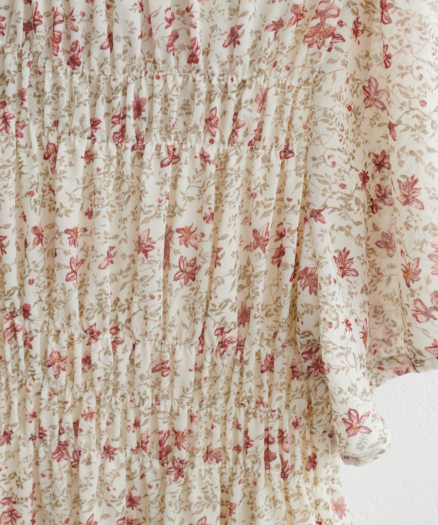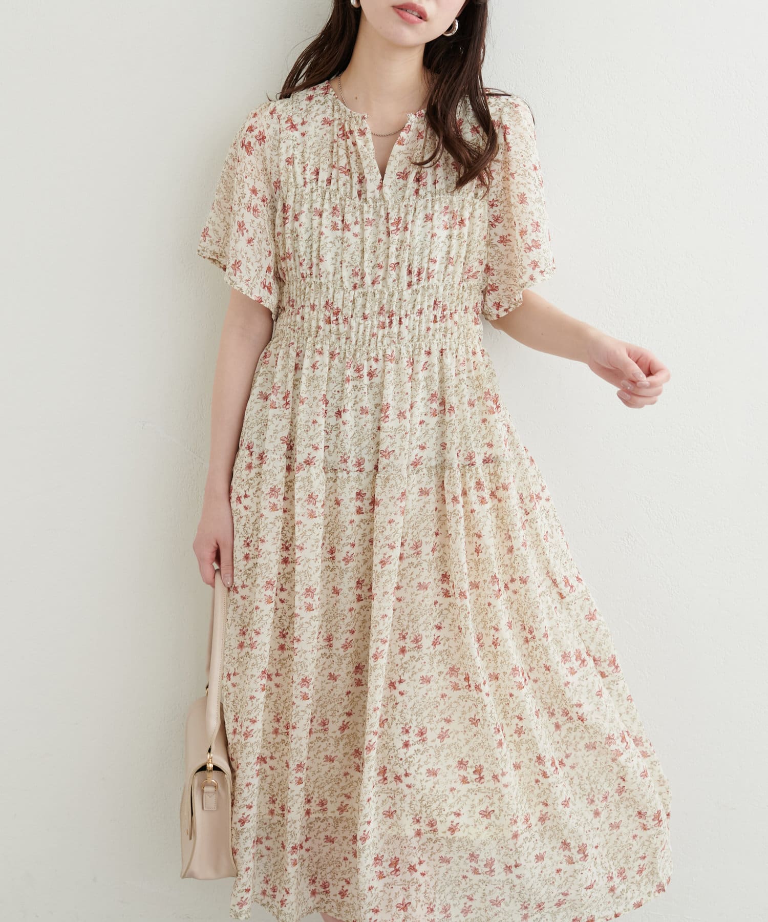 見頃部分にたっぷりシャーリングの入ったワンピース。