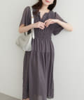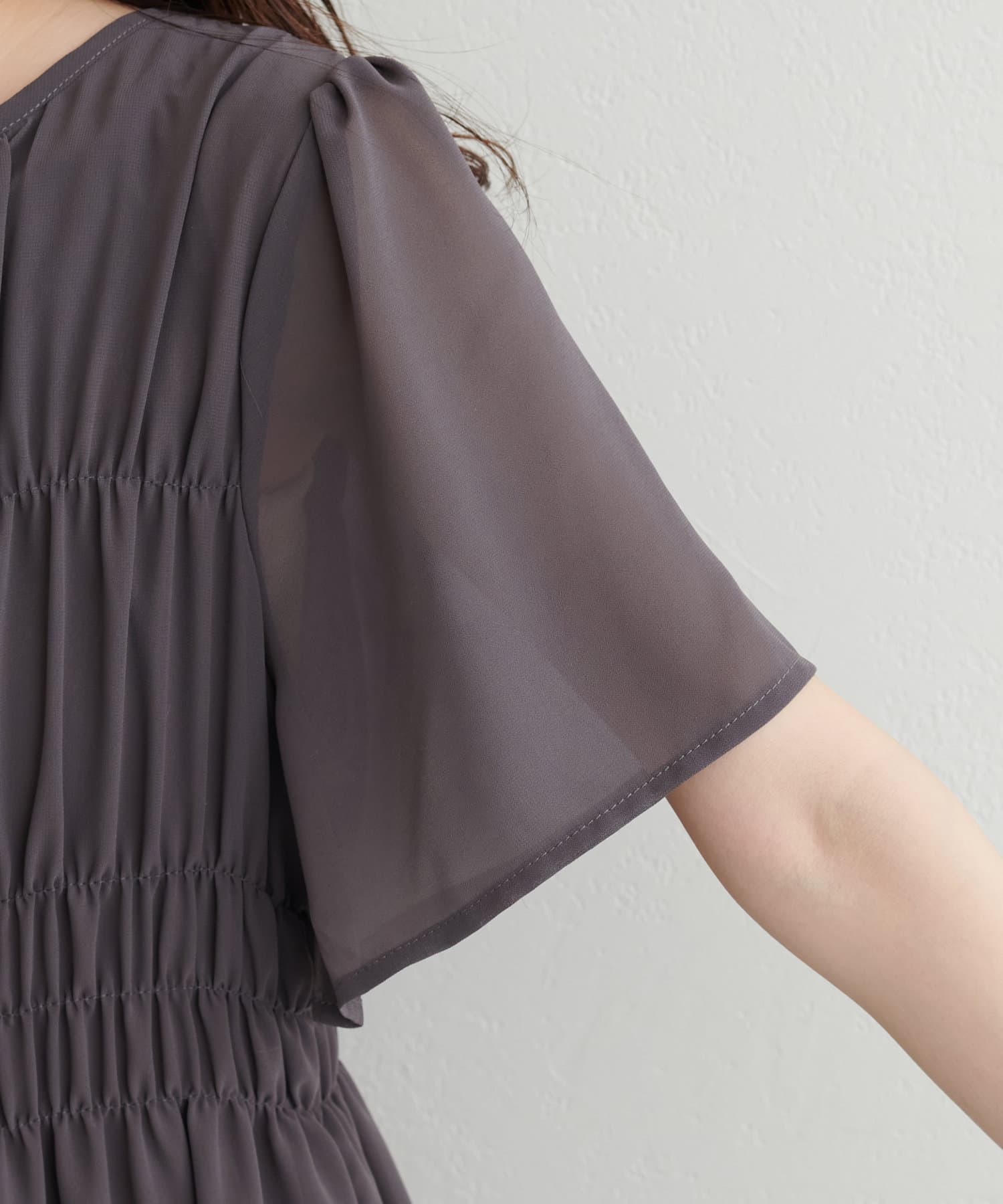 【WEB限定】変形シャーリングフレアスリーブワンピース