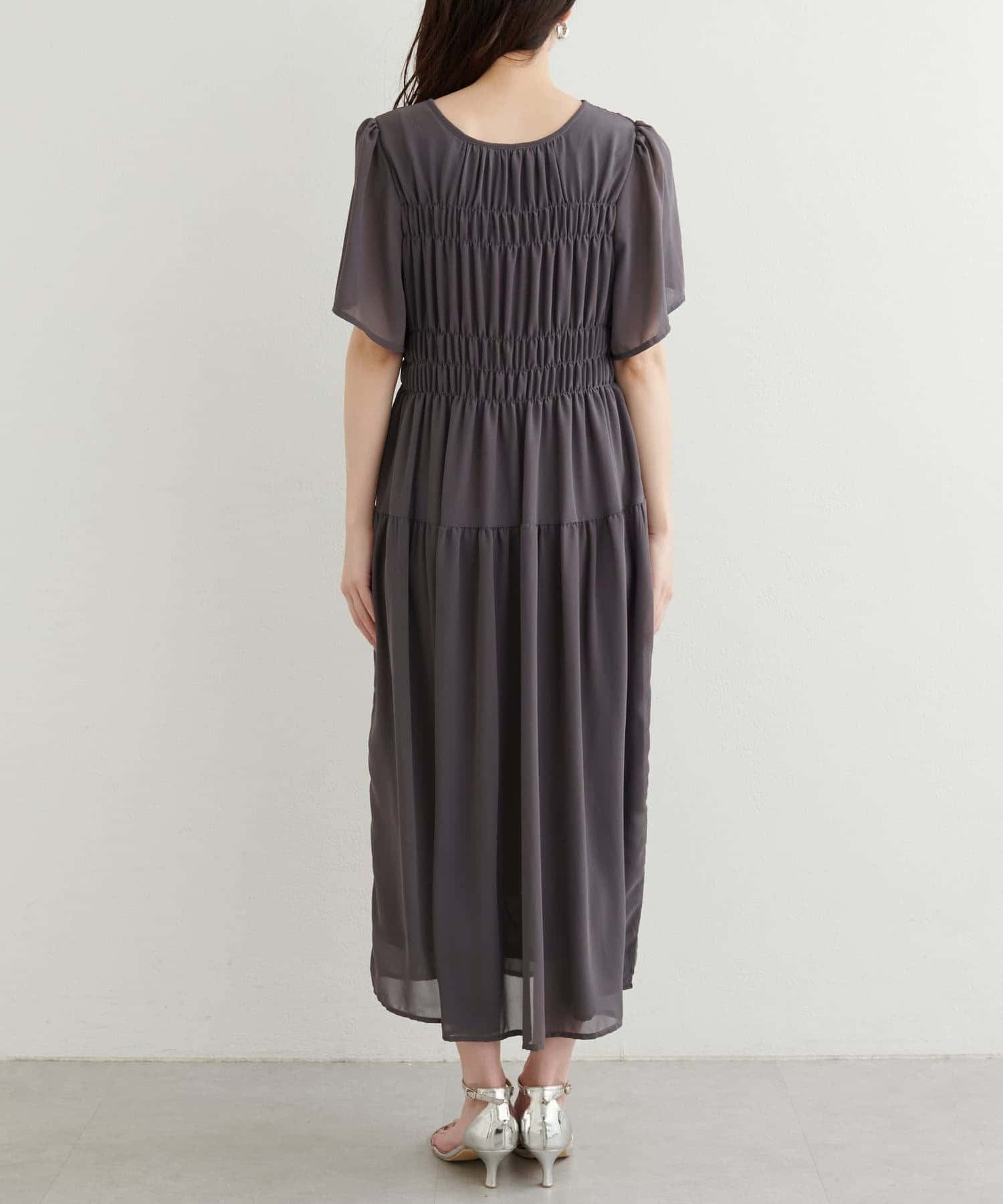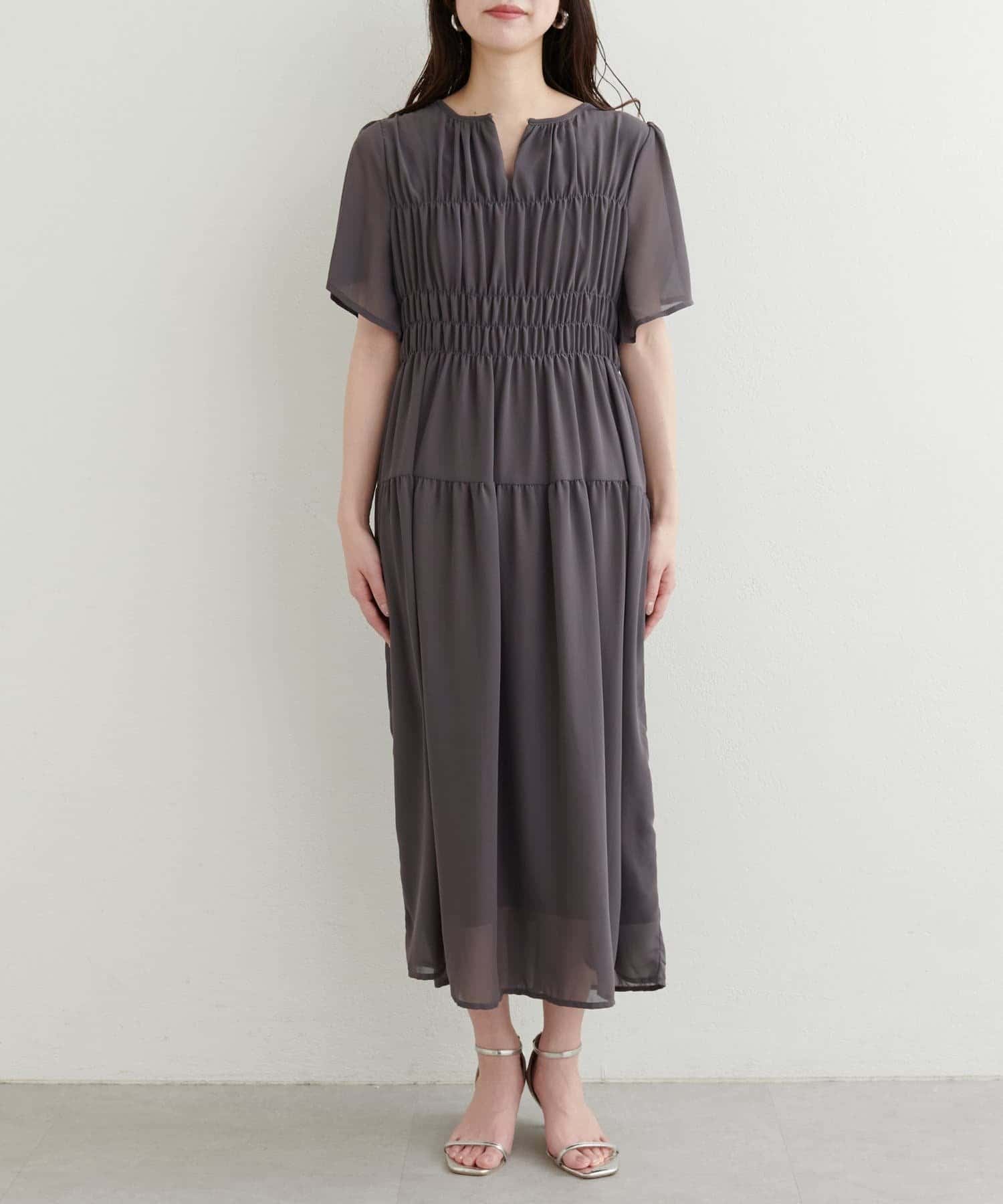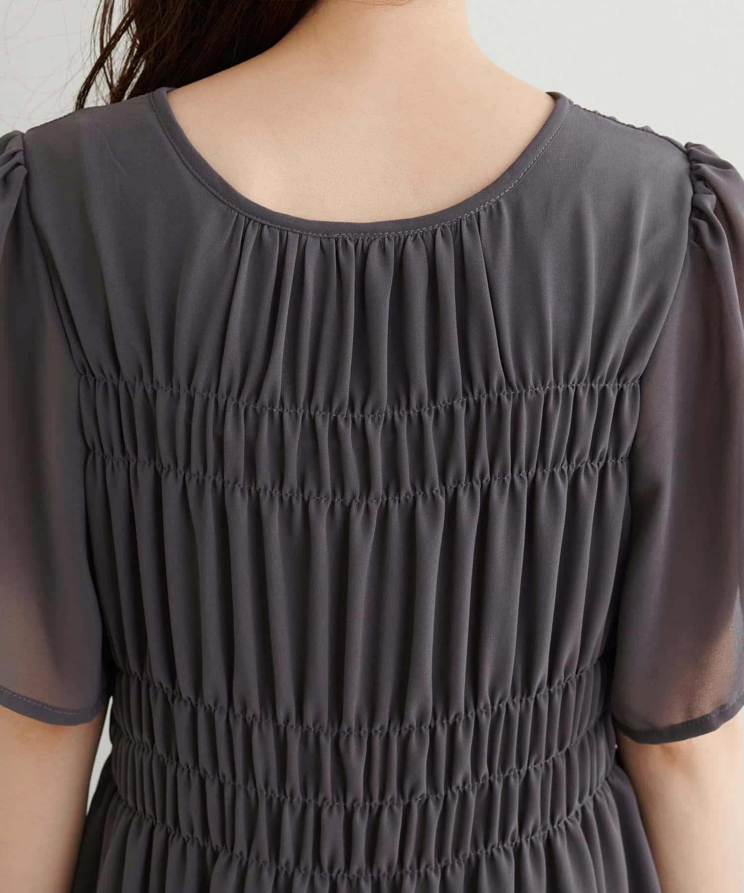 見頃部分にたっぷりシャーリングの入ったワンピース。