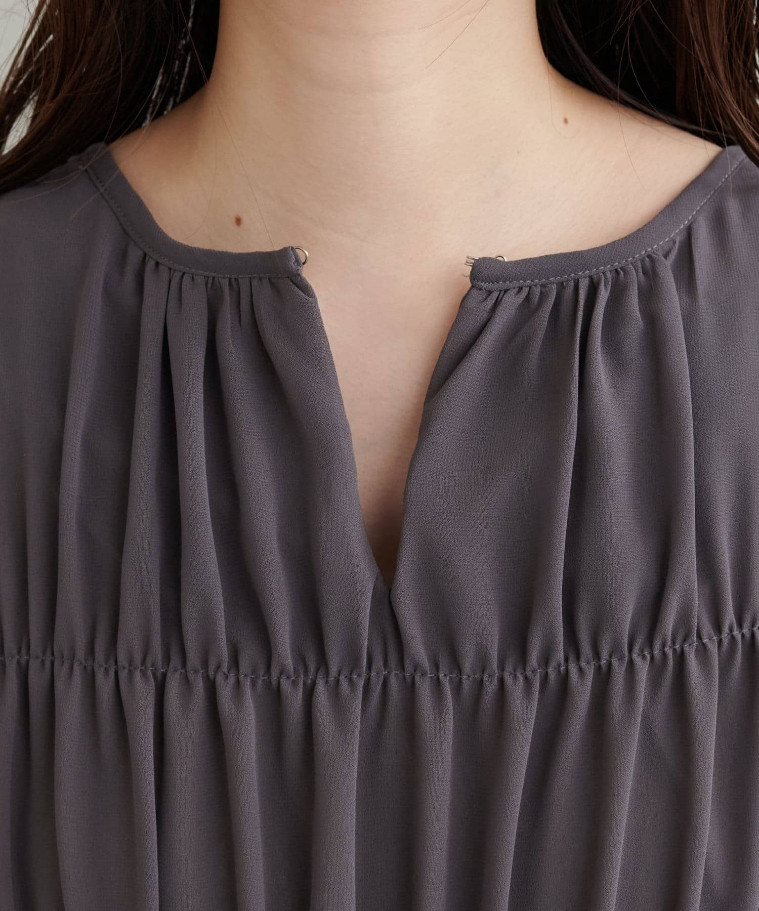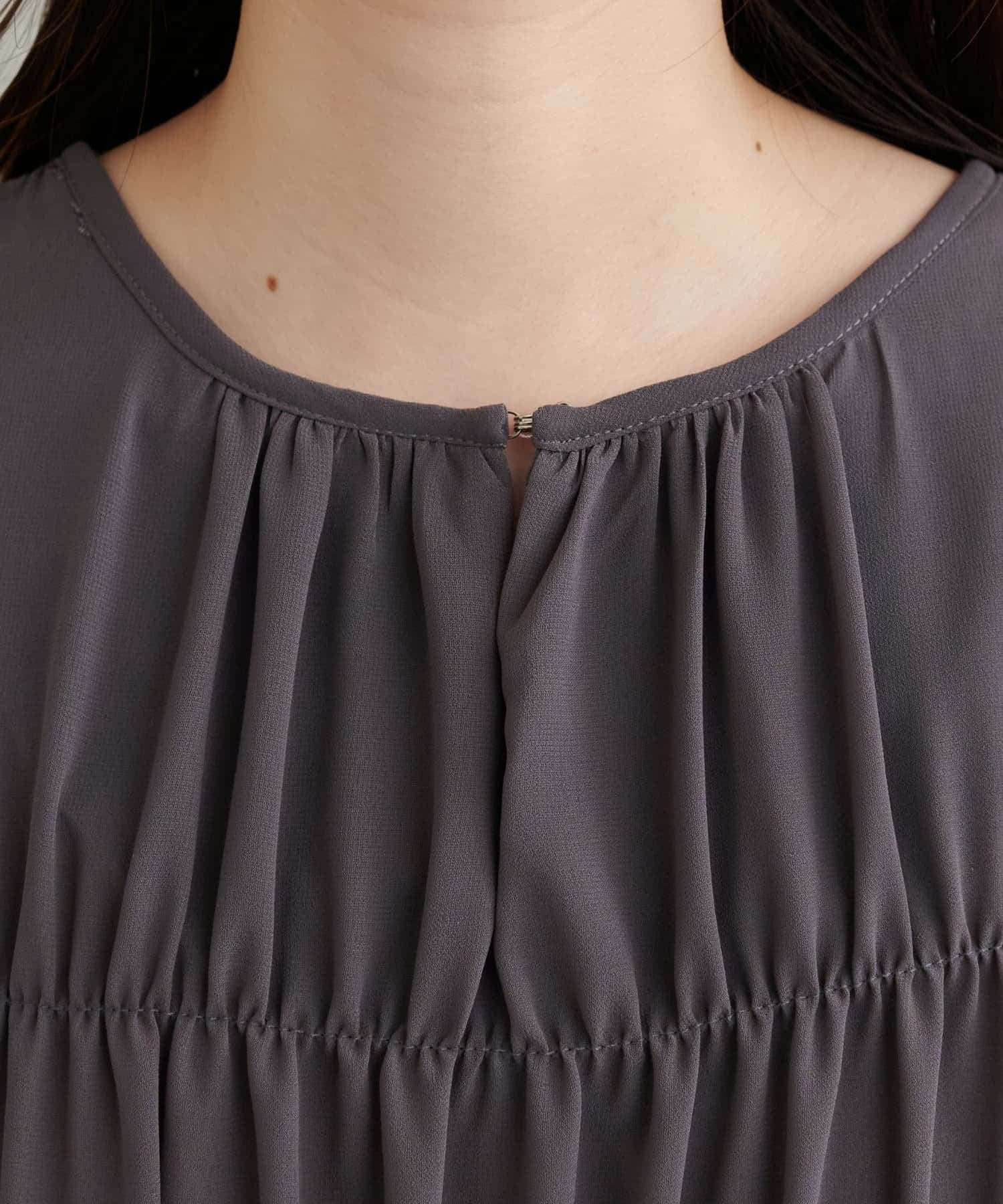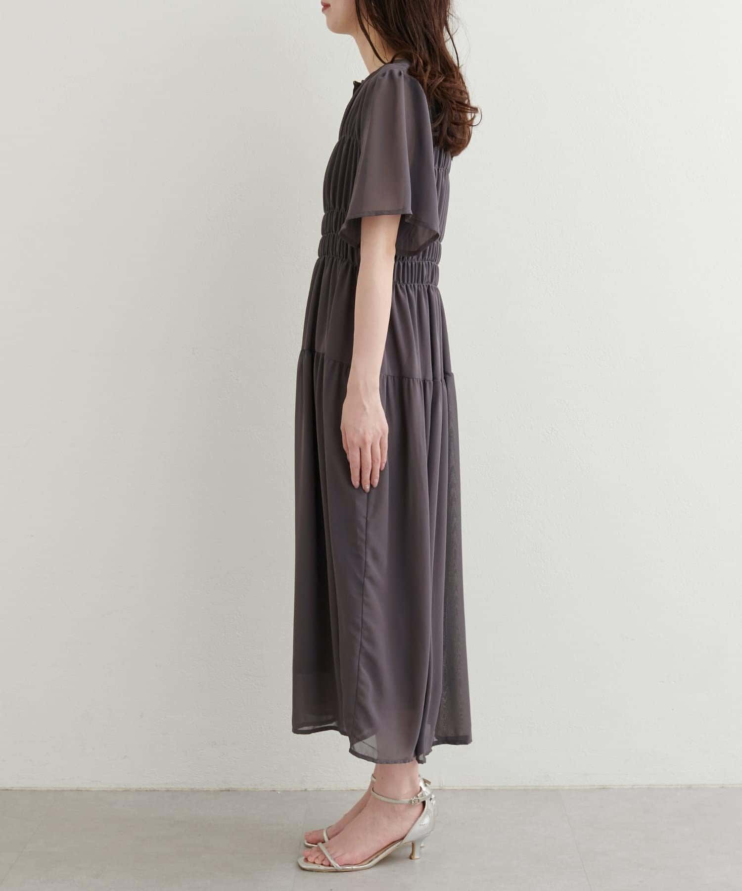 見頃部分にたっぷりシャーリングの入ったワンピース。