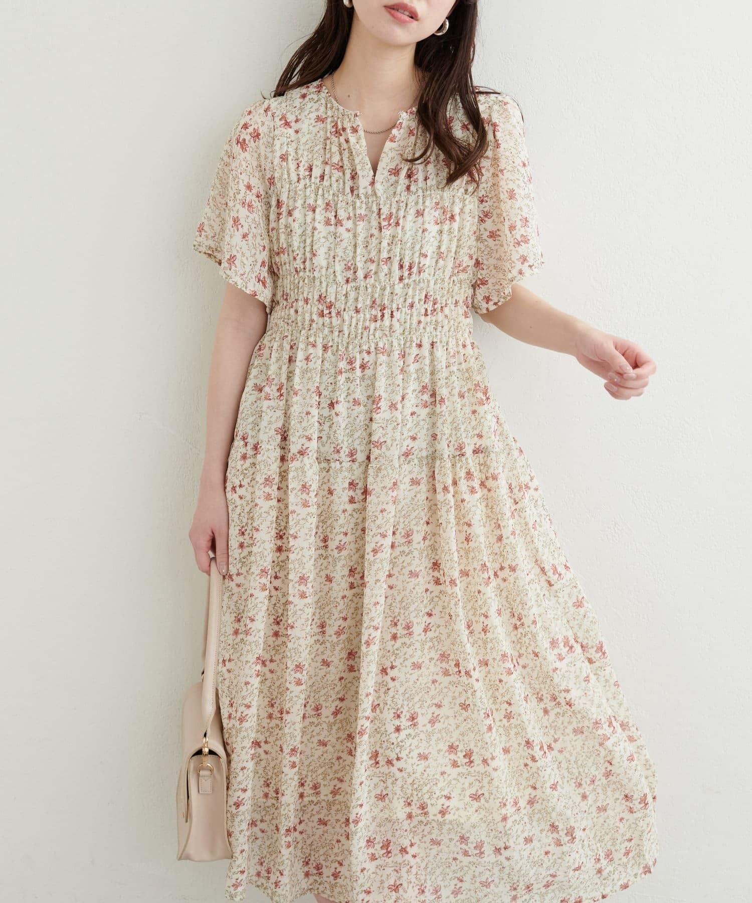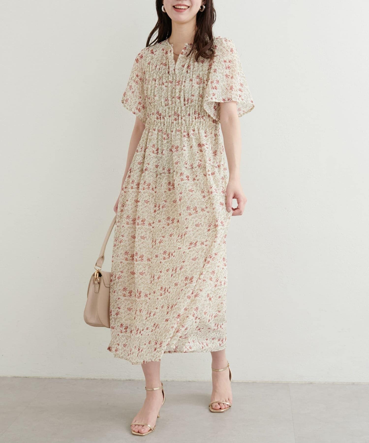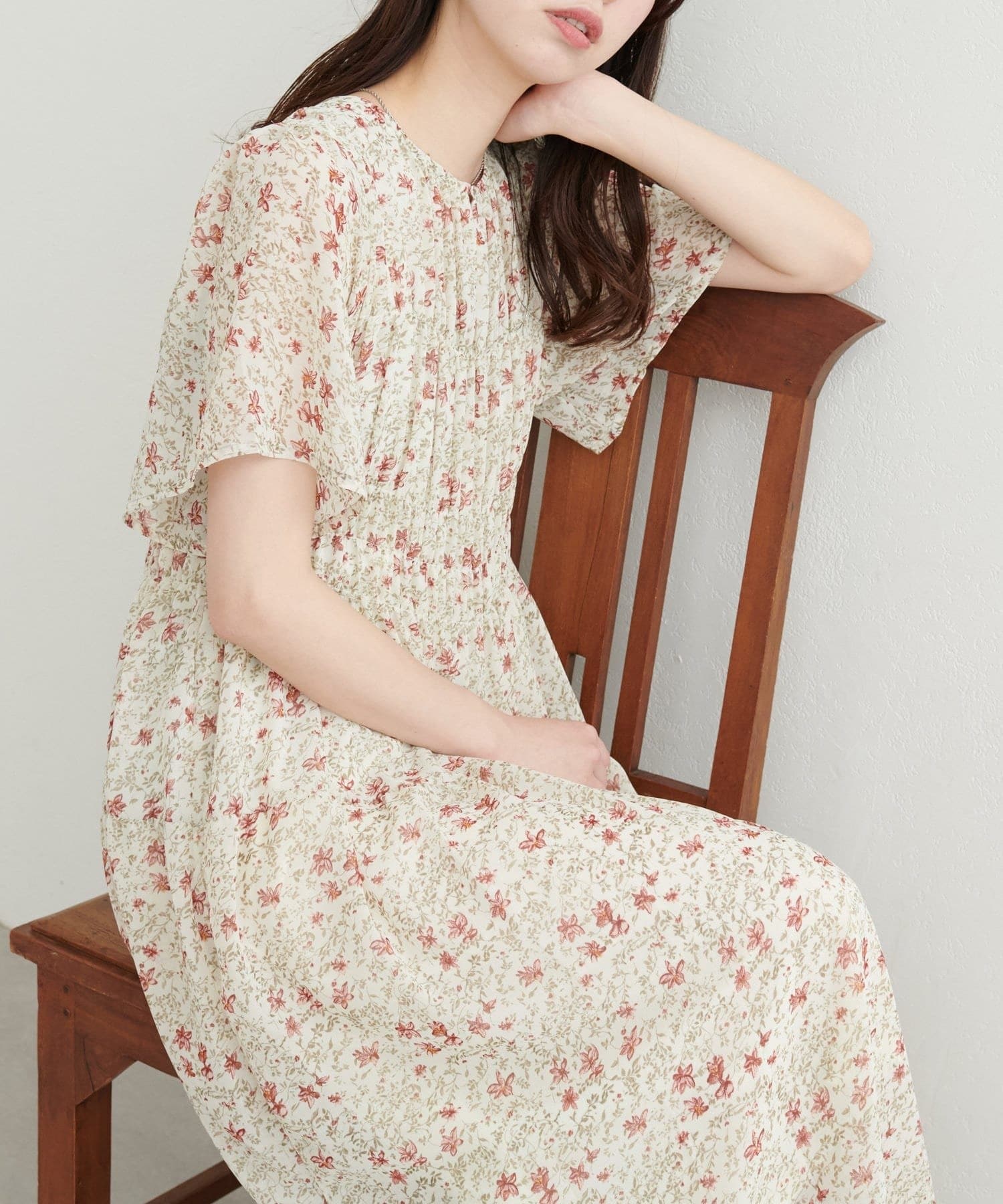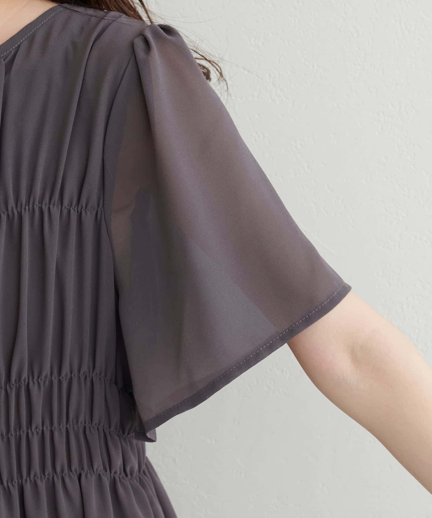 【natural couture】変形シャーリングフレンチスリーブワンピース