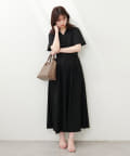 ウエストラインをやや高めにデザインしスタイルアップ効果も期待できる、大人上品なワンピース。