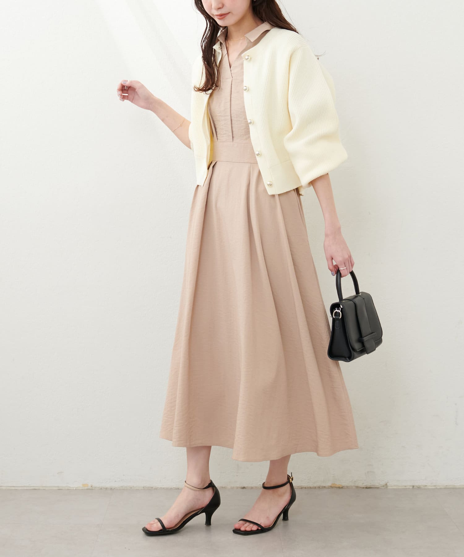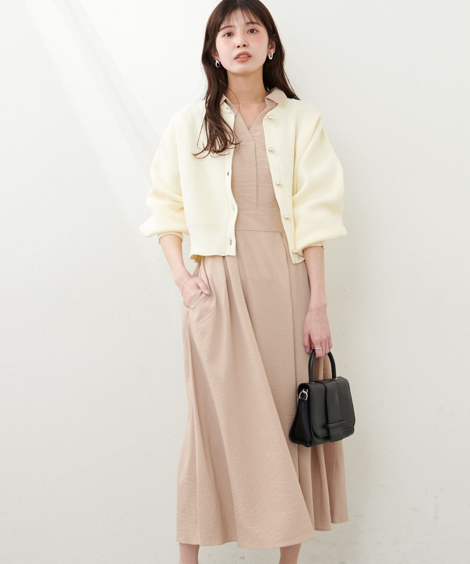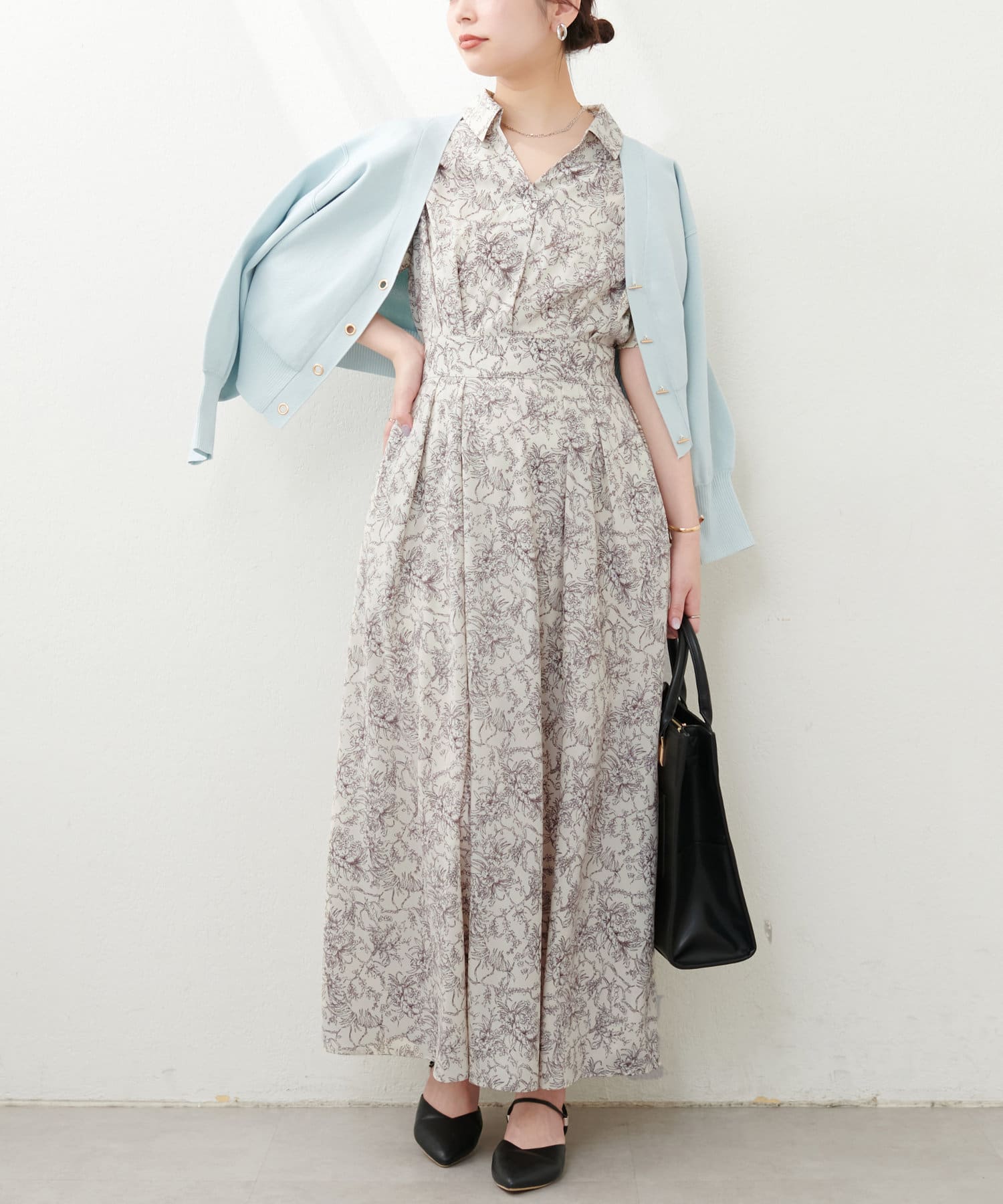 気温に応じてニットカーディガンやジャケットを合わせると、ロングシーズンお楽しみ頂ける1枚。