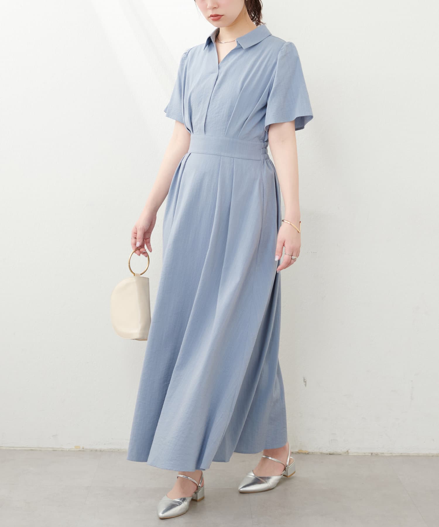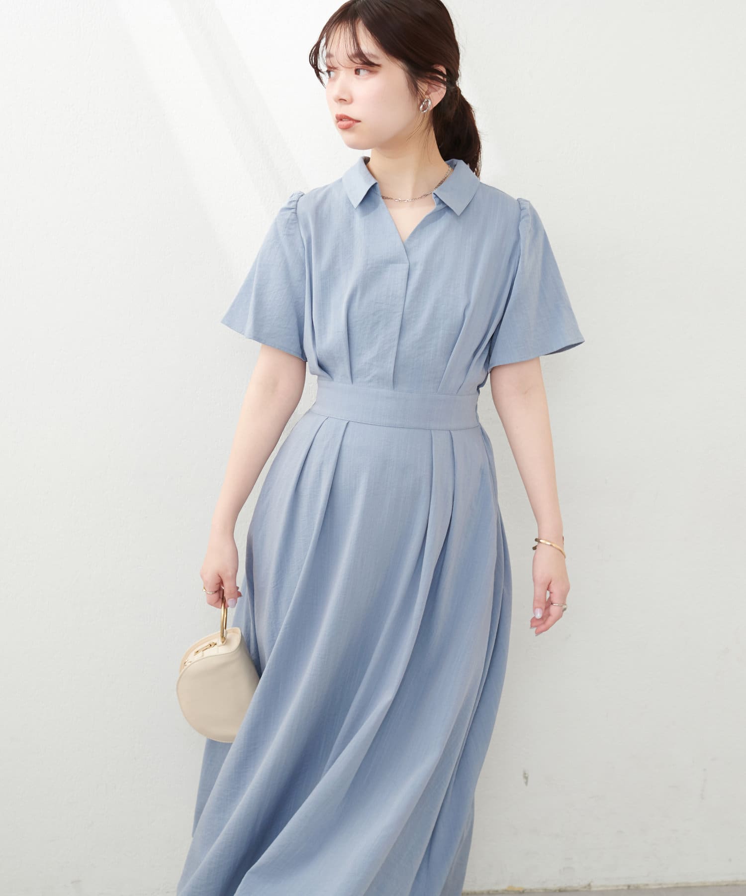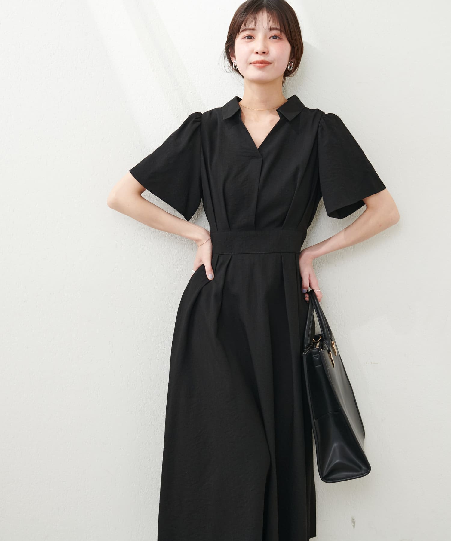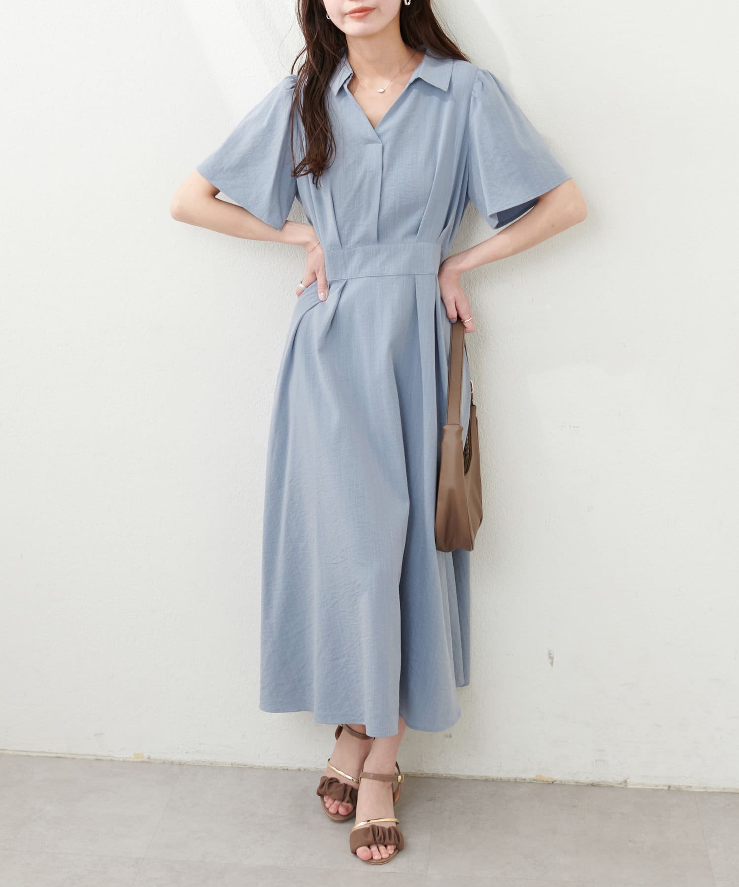 スキッパー衿フレア袖ワンピース